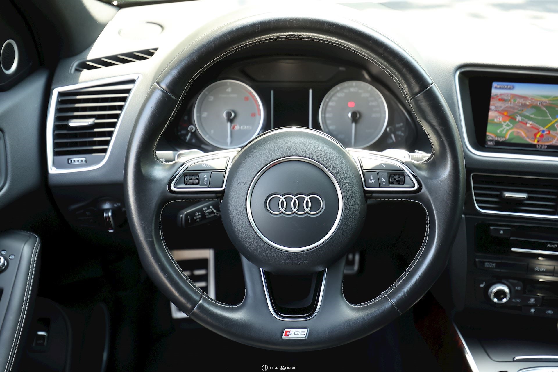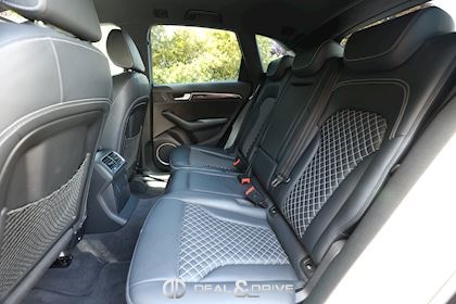 INTÉRIEUR Sellerie en alcantara / Cuir Perlnappa Sellerie en cuir fin avec piqûres en losange Sièges avant électriques Sièges avant chauffants Sièges avant sport Appuie-lombaires électriques Sièges arrière coulissants Finitions intérieures Audi exclusive Volant sport Volant en cuir multifonctions Plafonnier en tissu noir Tapis de sol