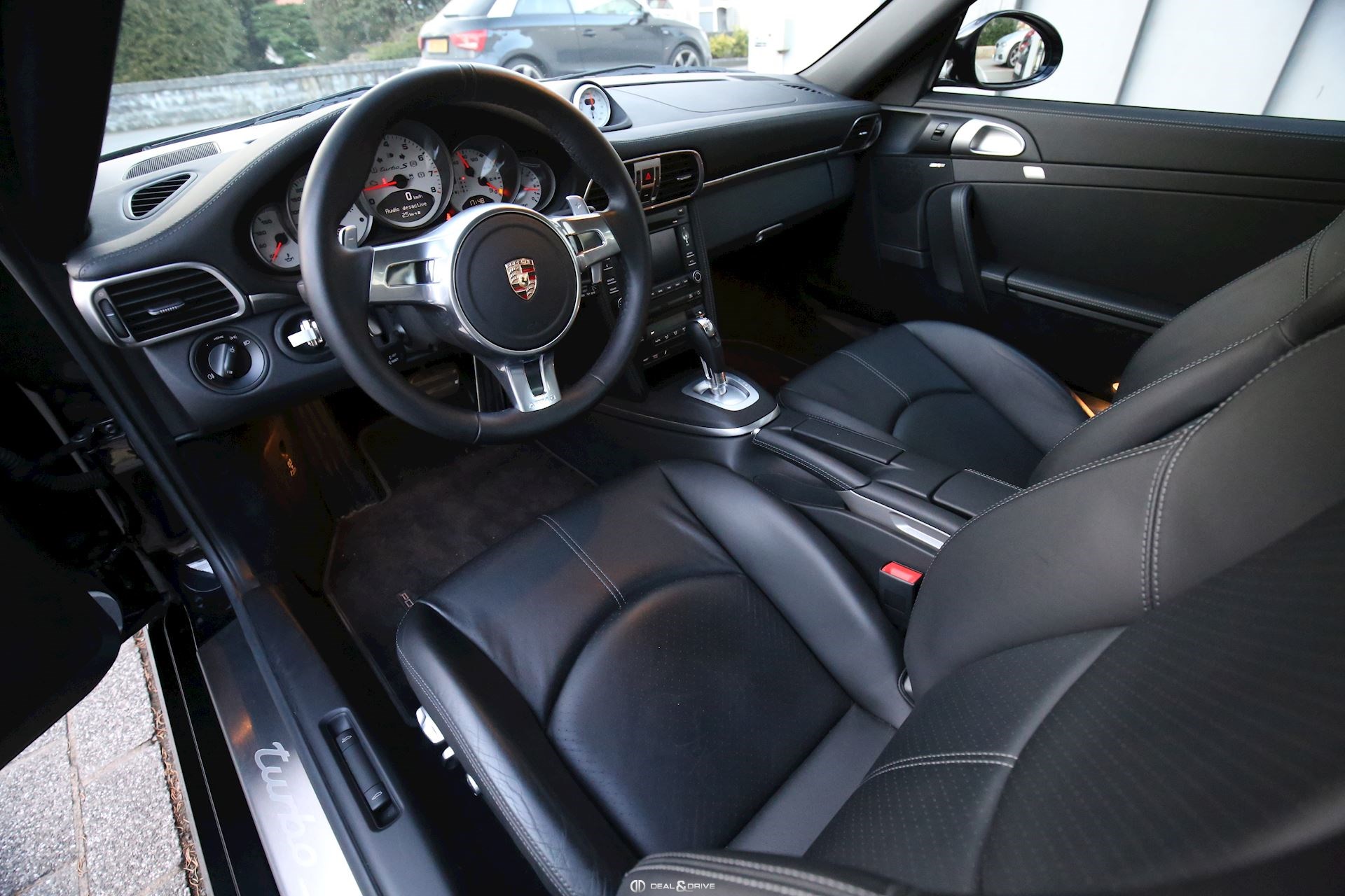 Jauges avec couleur de fond blanc Baguettes de seuil en acier inoxydable Aide au stationnement arrière Tapis de sol Différentiel arrière autobloquant Appuis-tête avant avec écusson Porsche Console centrale de rangement avec couvercle en cuir lettrage "Turbo" Interface multimédia universelle pour iPod / MP3 / ... Combiné passif pour module de téléphone (PCM) Toit ouvrant électrique Module de téléphone pour la gestion Porsche Communication Préparation pour recevoir un Tracker Chronomètre couleur blanc