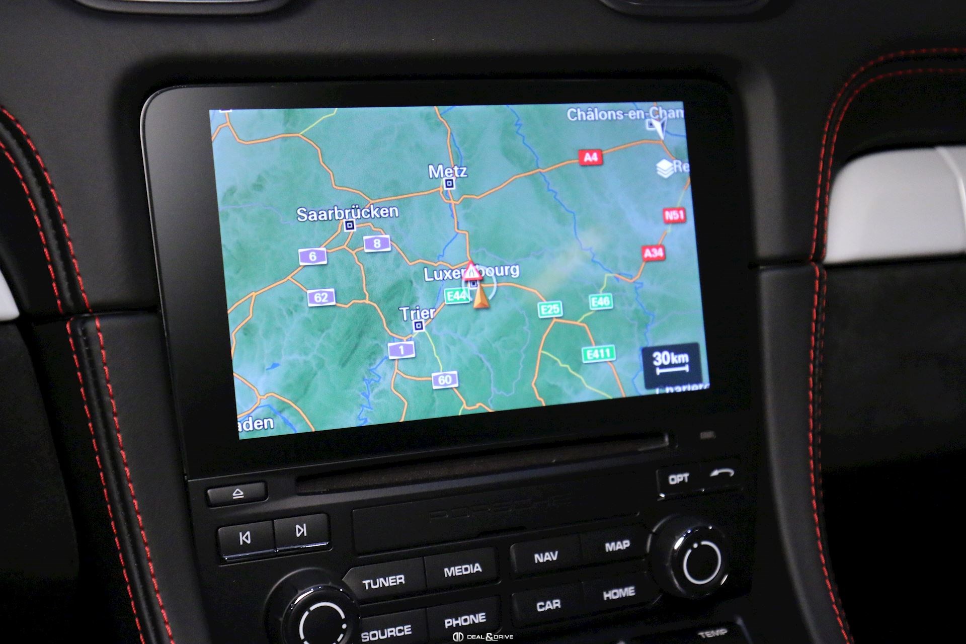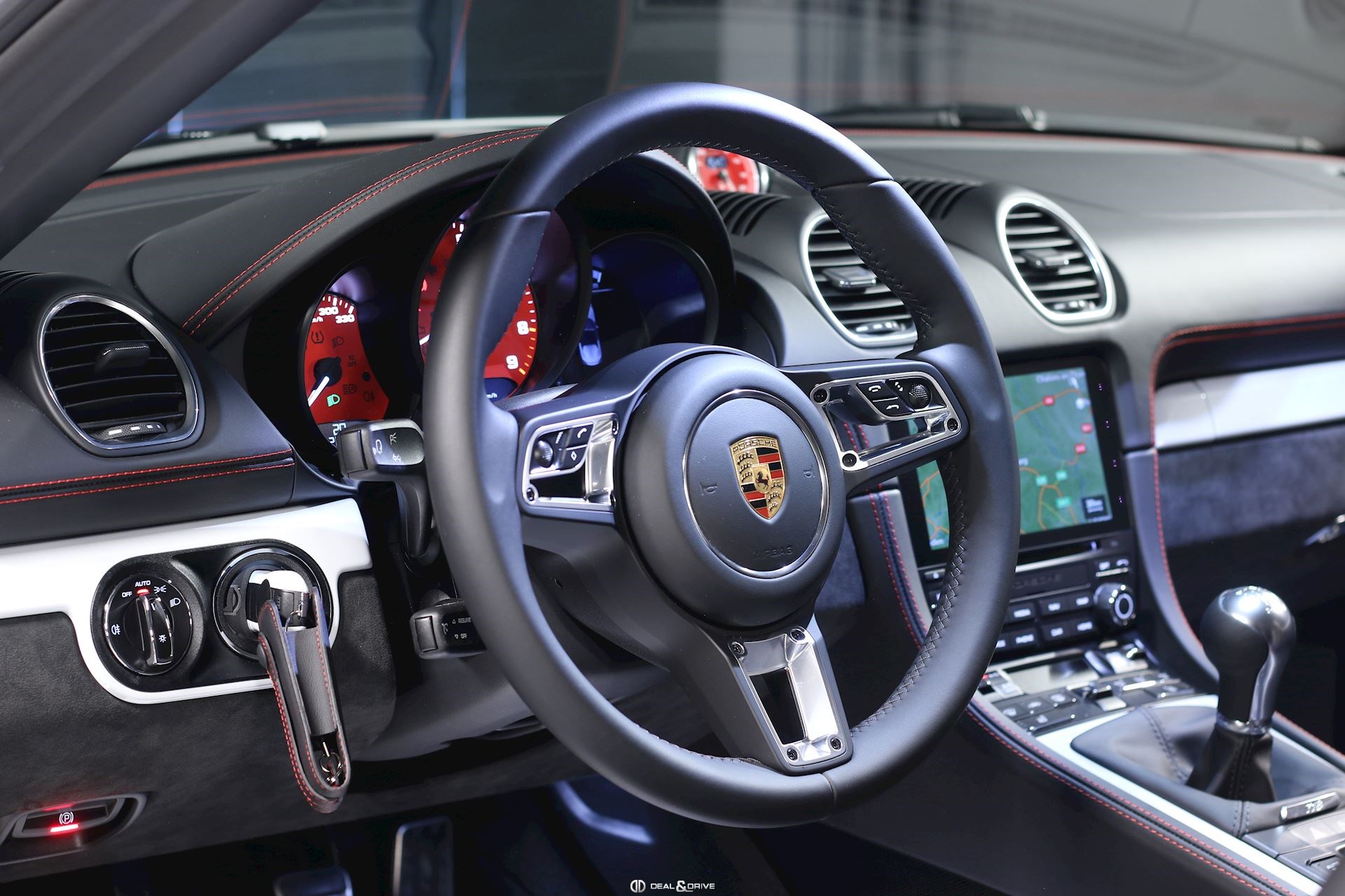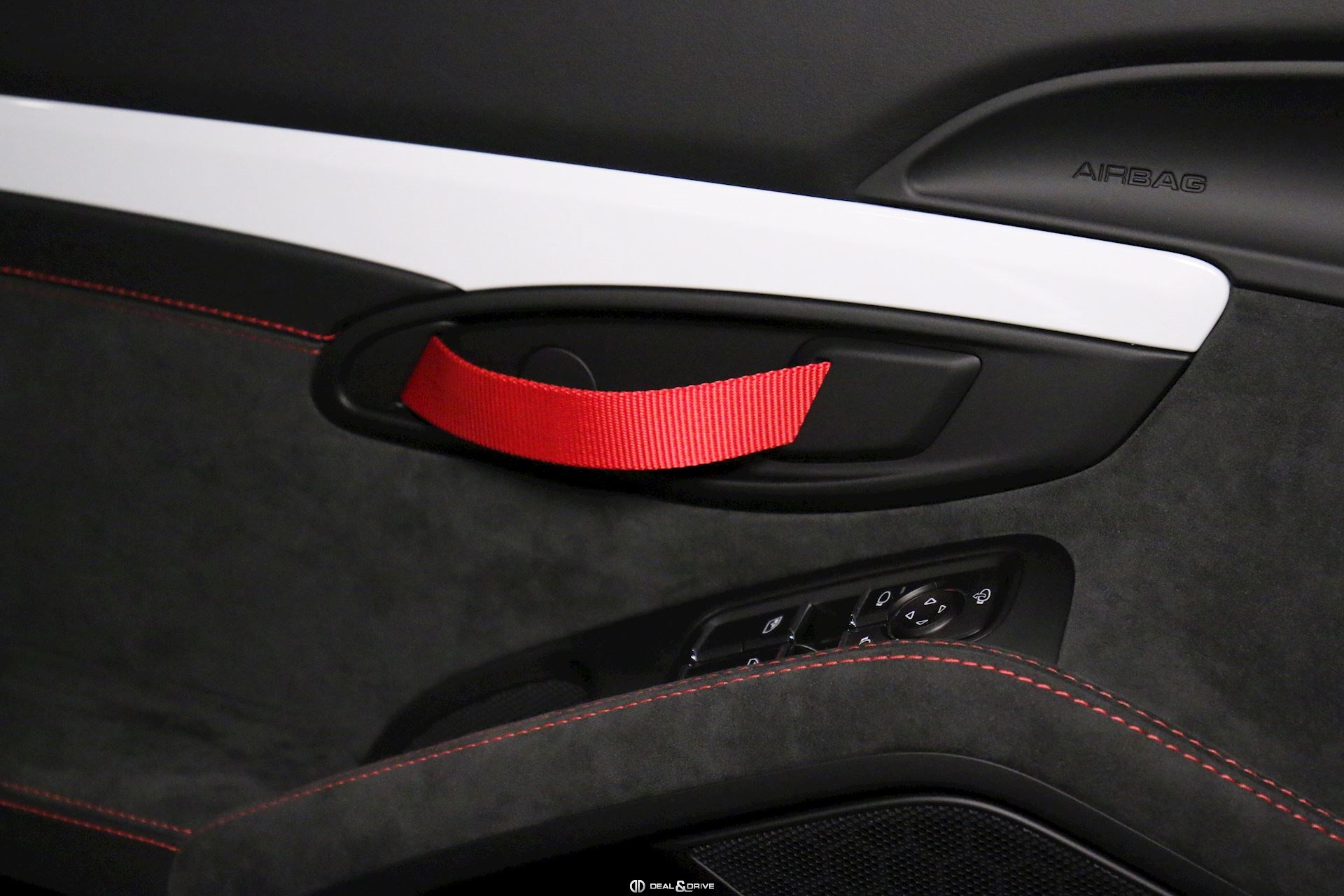Intérieur Race-Tex avec de nombreux éléments en cuir Noir, coutures décoratives en Rouge