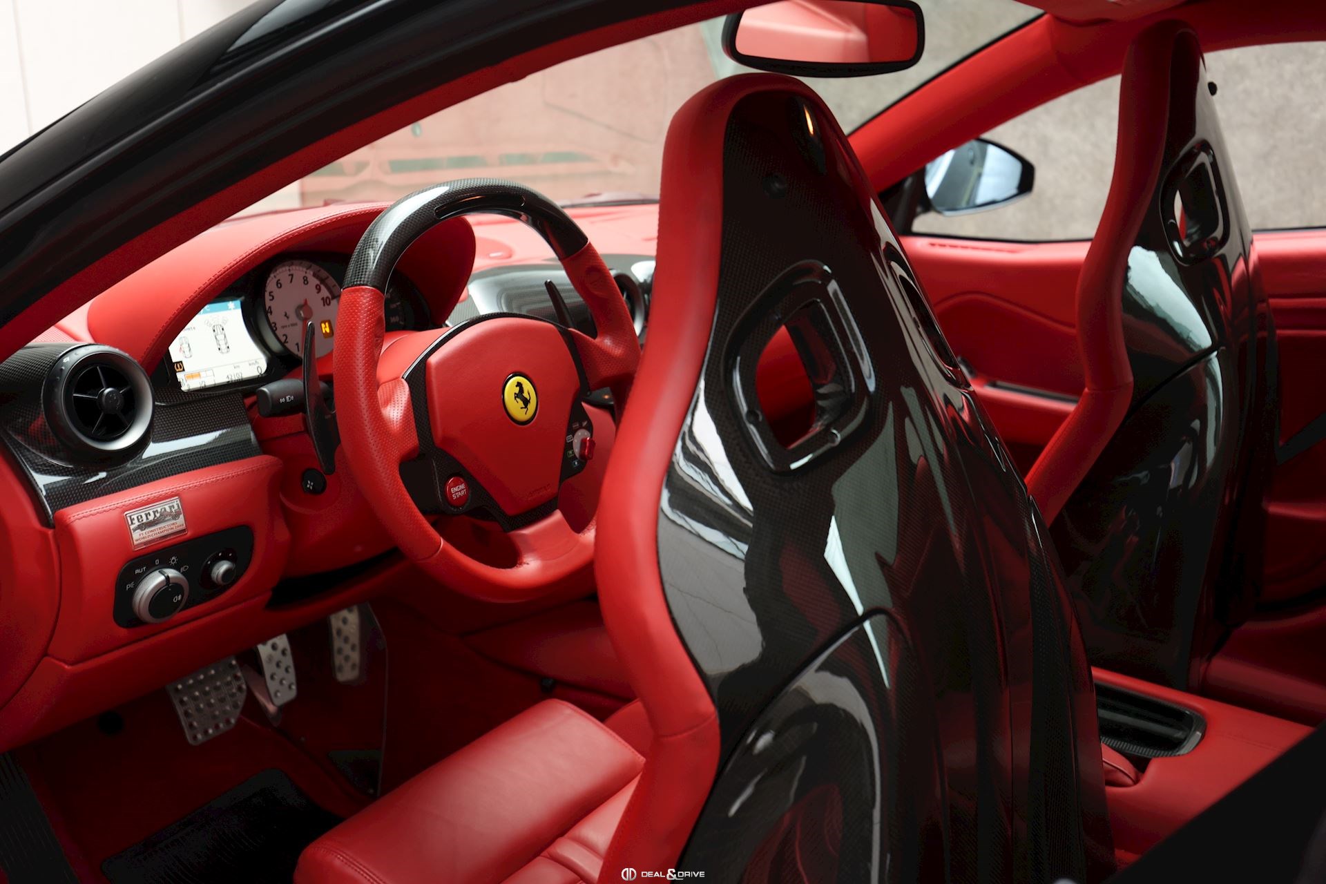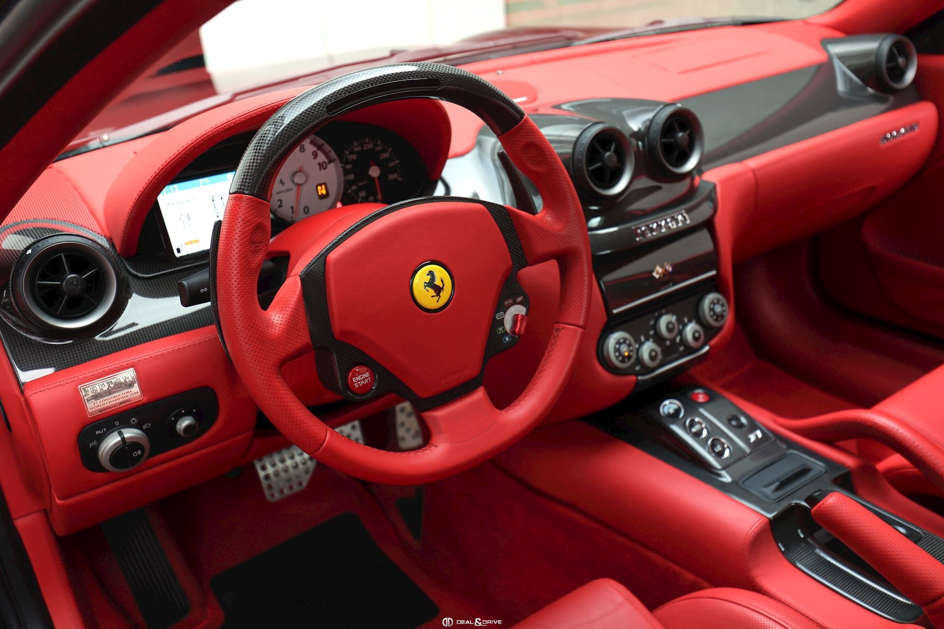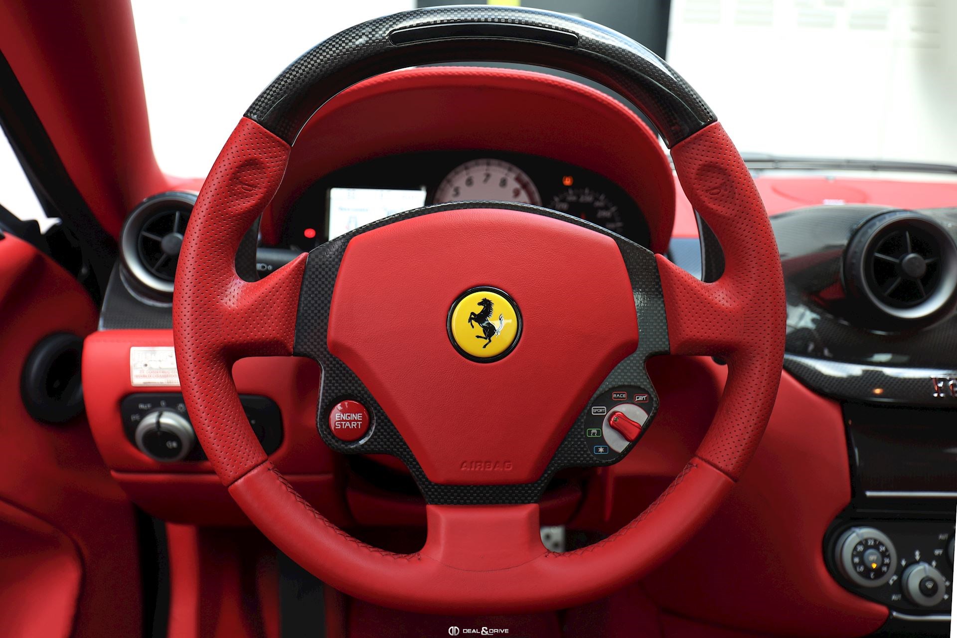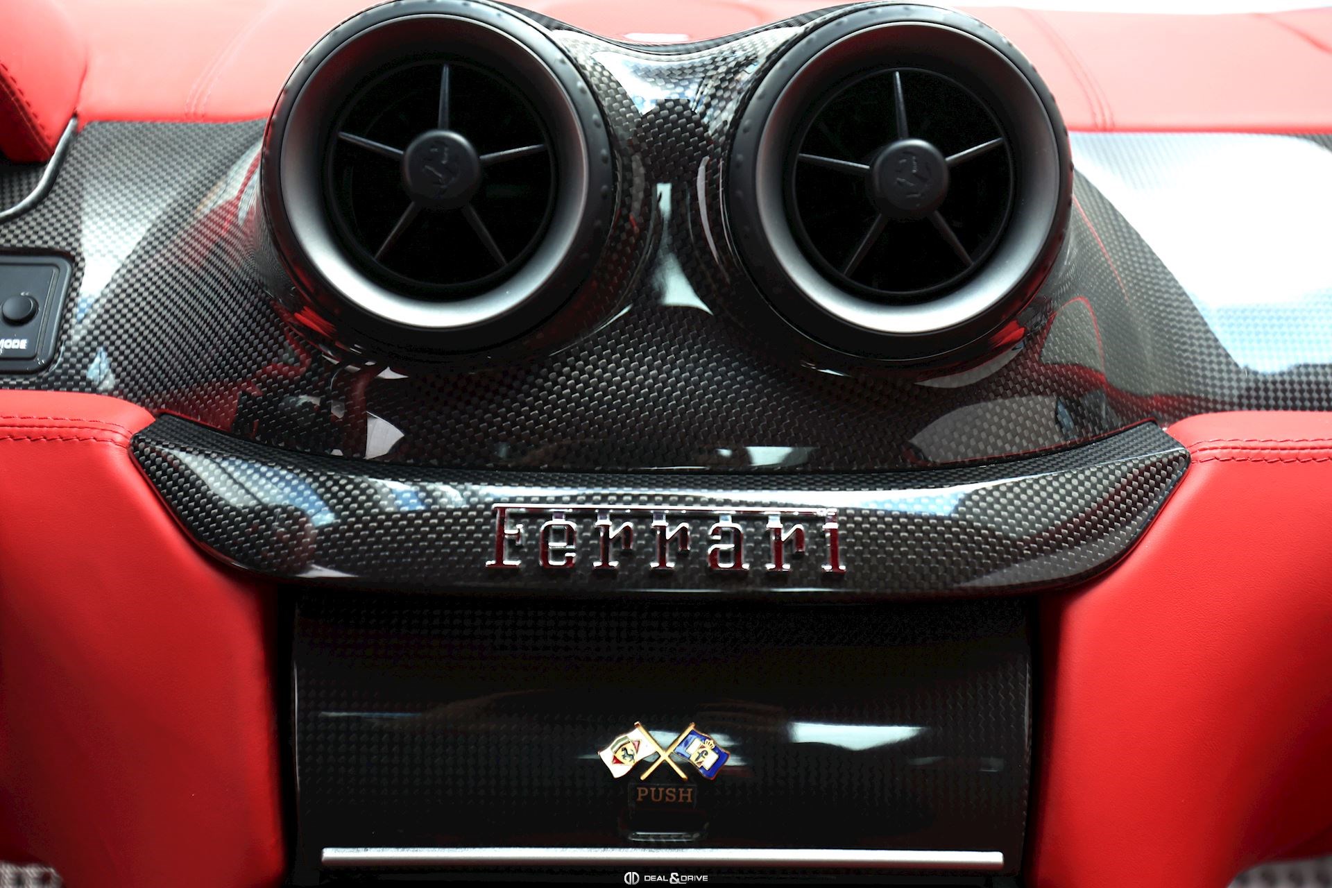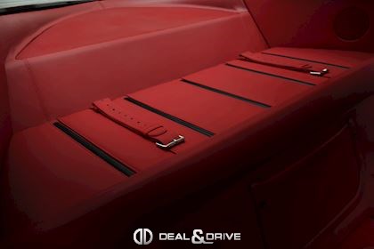 INTERIOR Carbon interior package Leather, multifunction and carbon steering wheel with LEDS Electrically adjustable steering wheel Leather upholstery in Rosso Leather door trim Leather ceiling light Electric seats Carbon seat backs Carbon door sills Nuovo Rosso carpets Upper Dashboard in Rosso Coloured steering-wheel 2-zone automatic climate control REV. counter in White