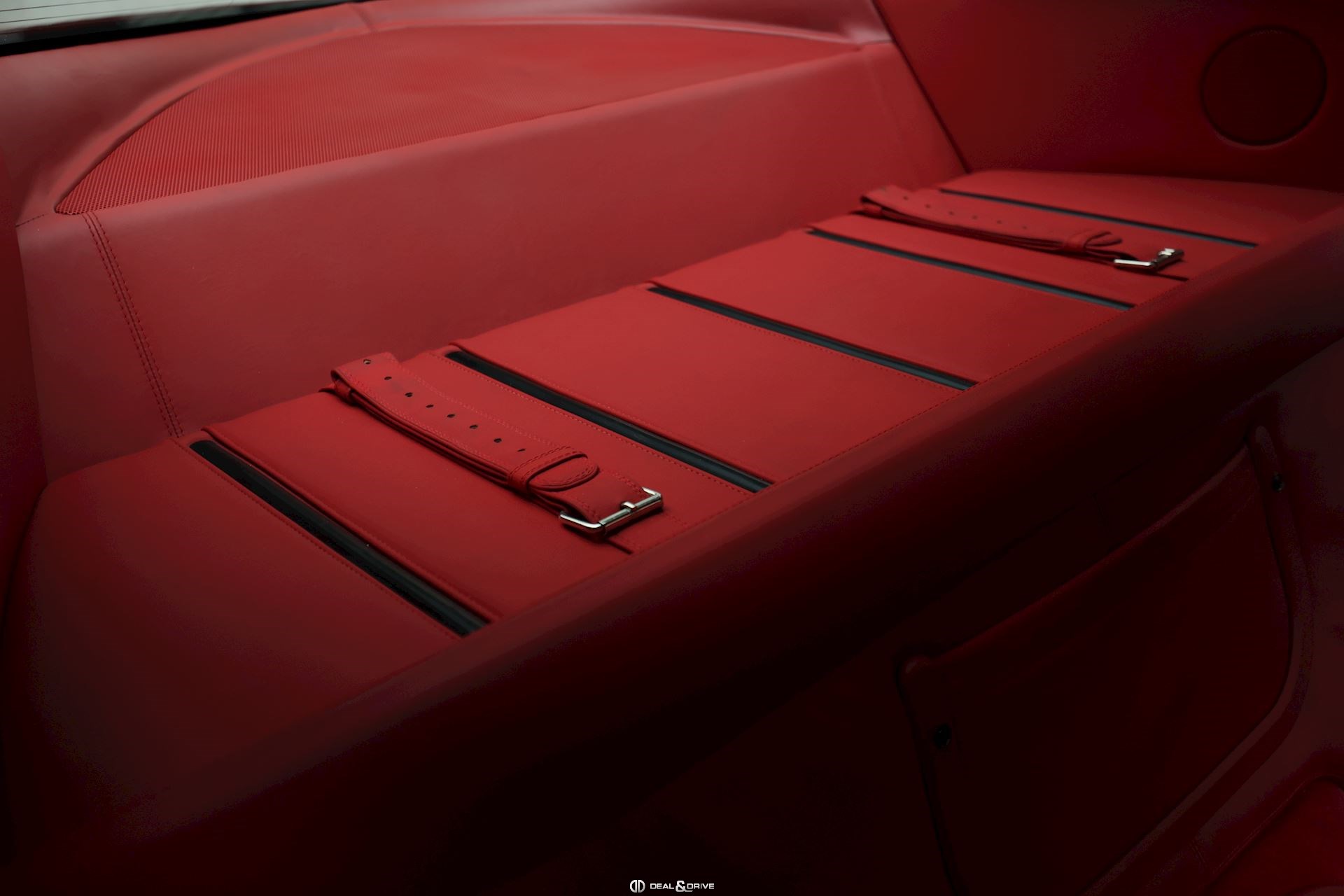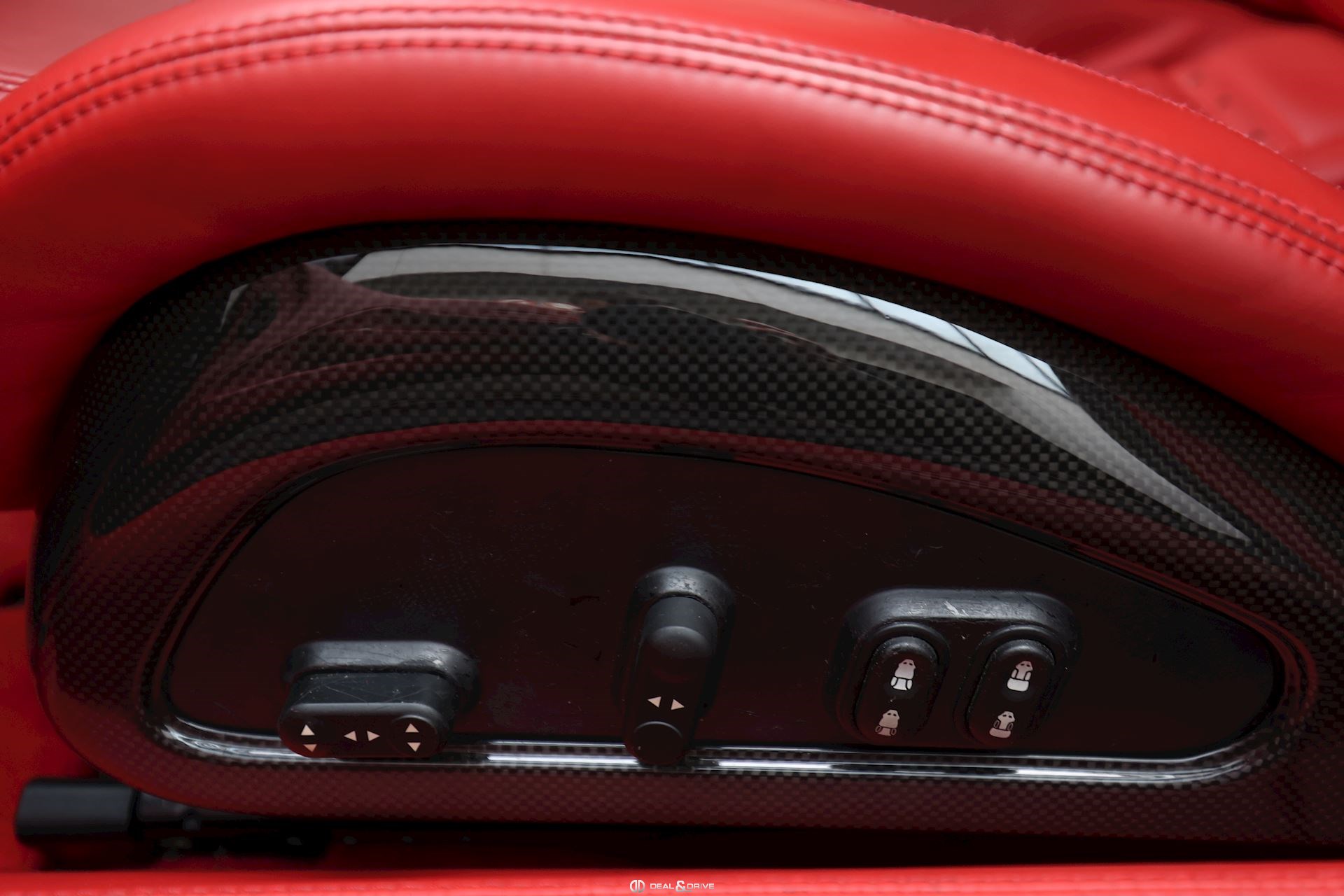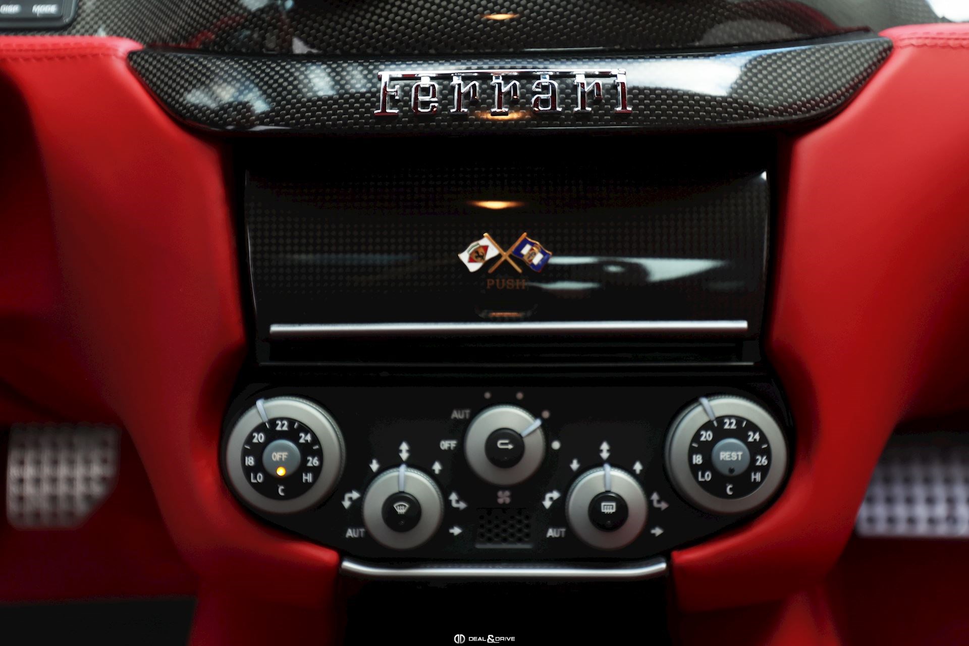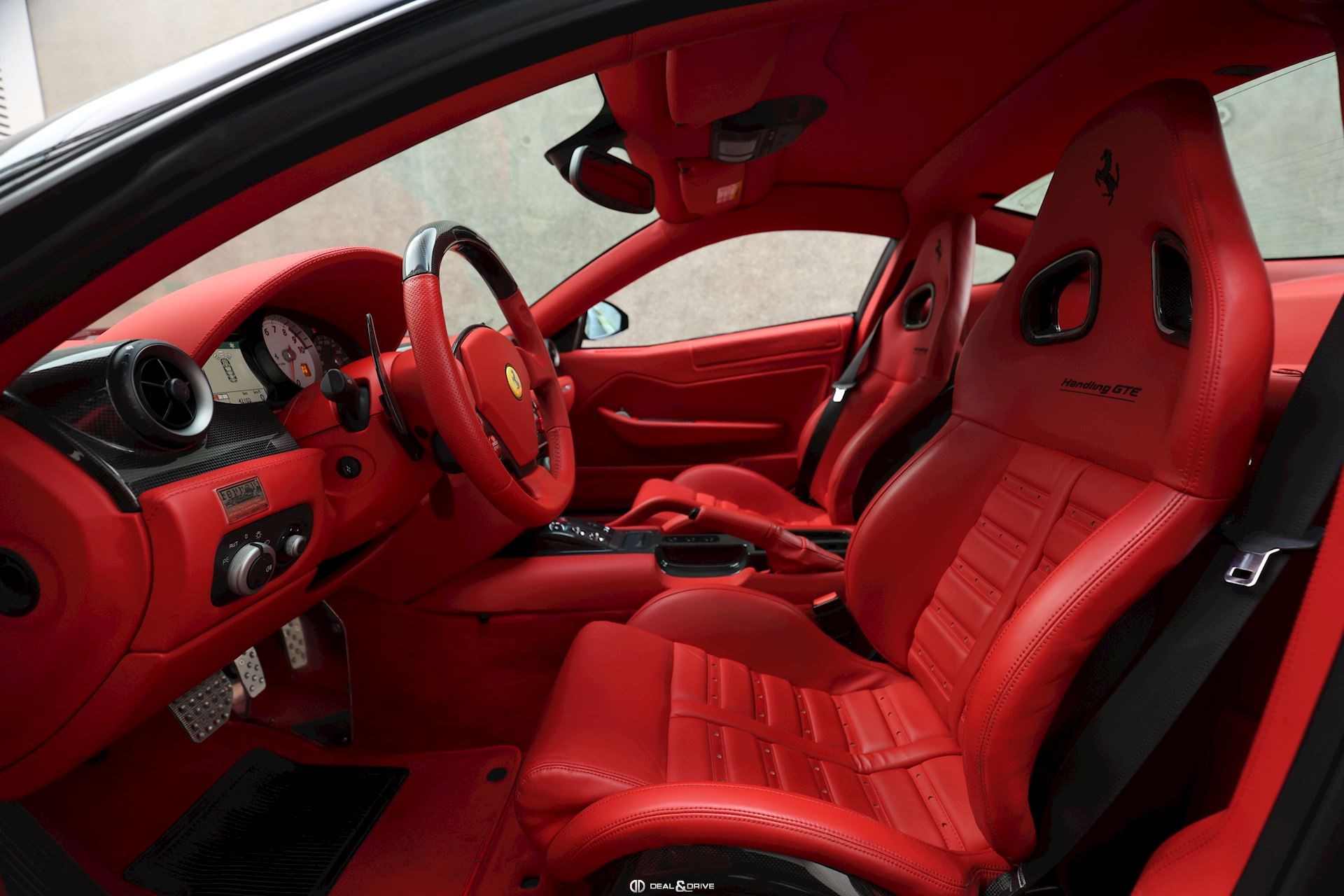INTERIOR Carbon interior package Leather, multifunction and carbon steering wheel with LEDS Electrically adjustable steering wheel Leather upholstery in Rosso Leather door trim Leather ceiling light Electric seats Carbon seat backs Carbon door sills Nuovo Rosso carpets Upper Dashboard in Rosso Coloured steering-wheel 2-zone automatic climate control REV. counter in White
