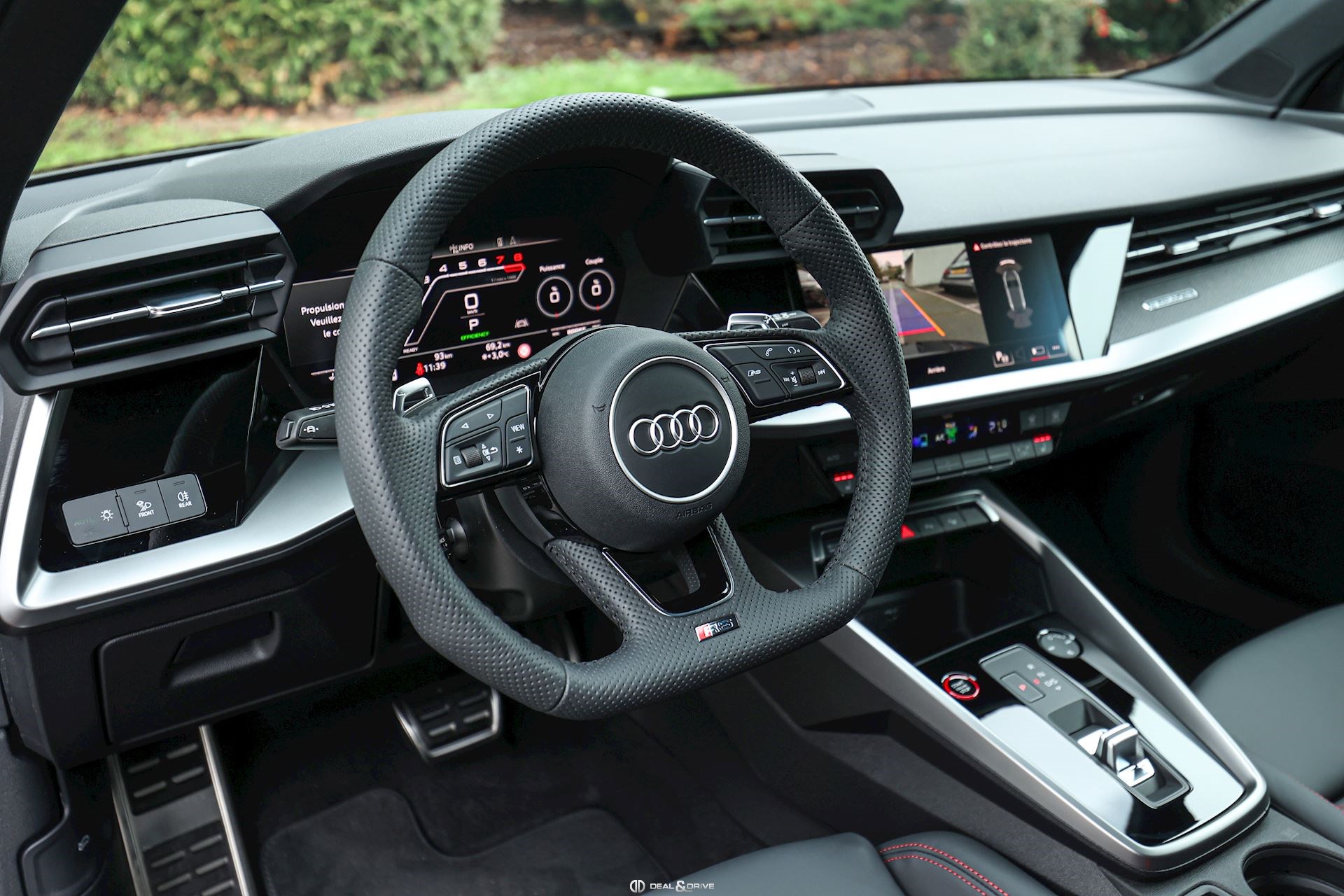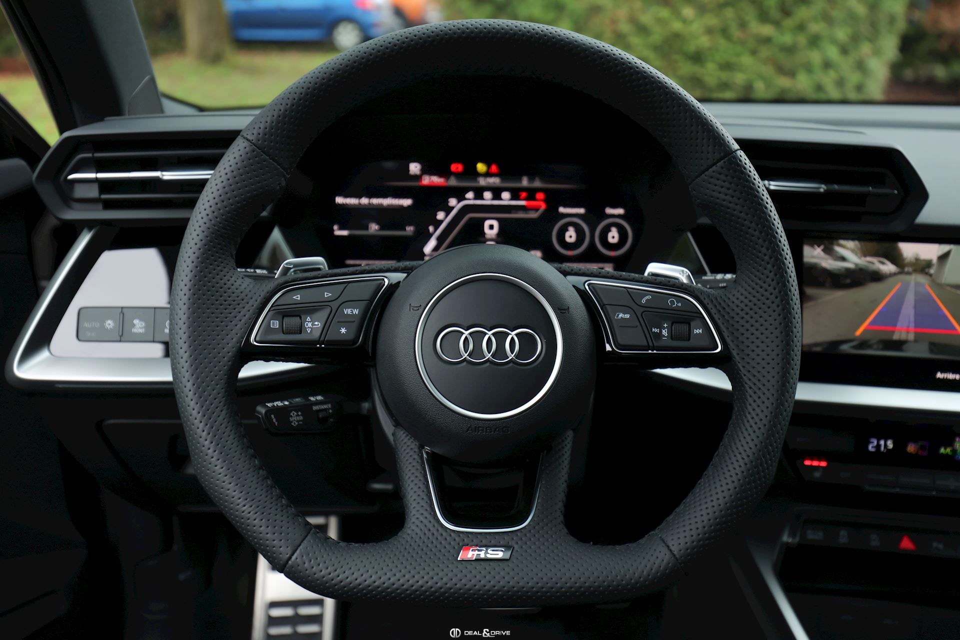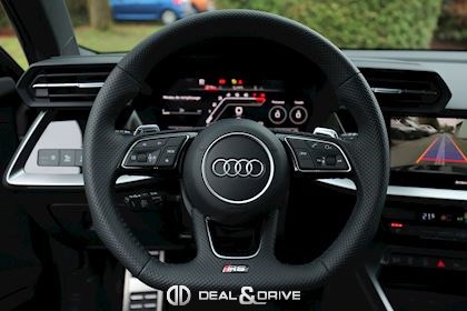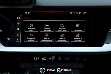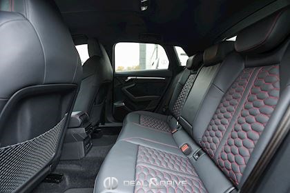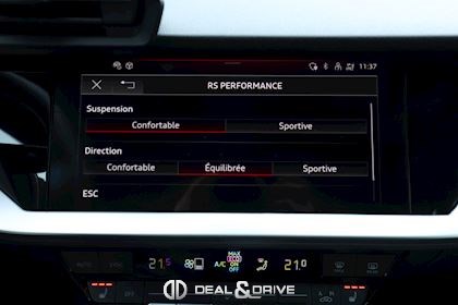 INTÉRIEUR Pack Premium Sièges avant chauffants Rétroviseur intérieur avec fonction anti-éblouissement Avertissement de changement de voie avec avertissement de sortie et assistant de trafic transversal arrière Sellerie en cuir Nappa fin avec embossage RS et surpiqûres alvéolées Appuie-lombaires électriques Aide au démarrage en côte Hold Assist Audi Pre Sense Basic