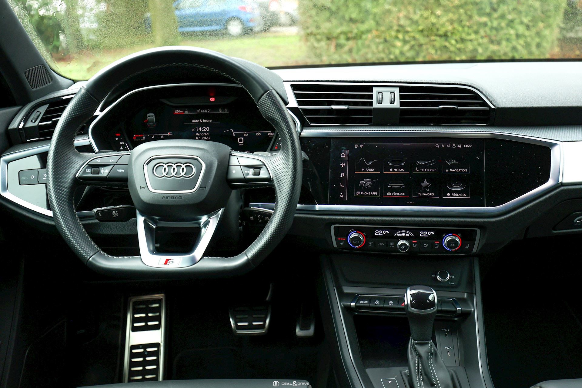 Volant Sport cuir 3 branches avec multifonctions plus et palettes de changement de vitesse, partie basse aplatie