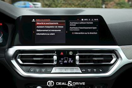 Intérieur Alcantara Noir / Sensatec Volant en cuir, multifonctions Volant chauffant Intérieur en Aluminium Eclairage ambiant Rétroviseur intérieur avec fonction anti-éblouissement Pack rangement Sièges avant chauffants Feux de croisement automatiques Active Guard Plus Shadow Line brillantVitrage arrière surteinté Aides au stationnement avant et arrière Caméra de recul Calandre noire Jantes alliage léger 19'' M Rétroviseurs extérieurs électriques Rétroviseurs extérieurs rabattables électriquement Régulateur de vitesse adaptatif Limiteur de vitesse Système de commande vocale Feux de croisement automatiques Feux de route automatiques Climatisation automatique 3 zones Plafonnier Noir Seuils de porte en Aluminium Ports USB Park Assist Chargeur à induction Système d'appel d'urgence Apple CarPlay / Android Auto