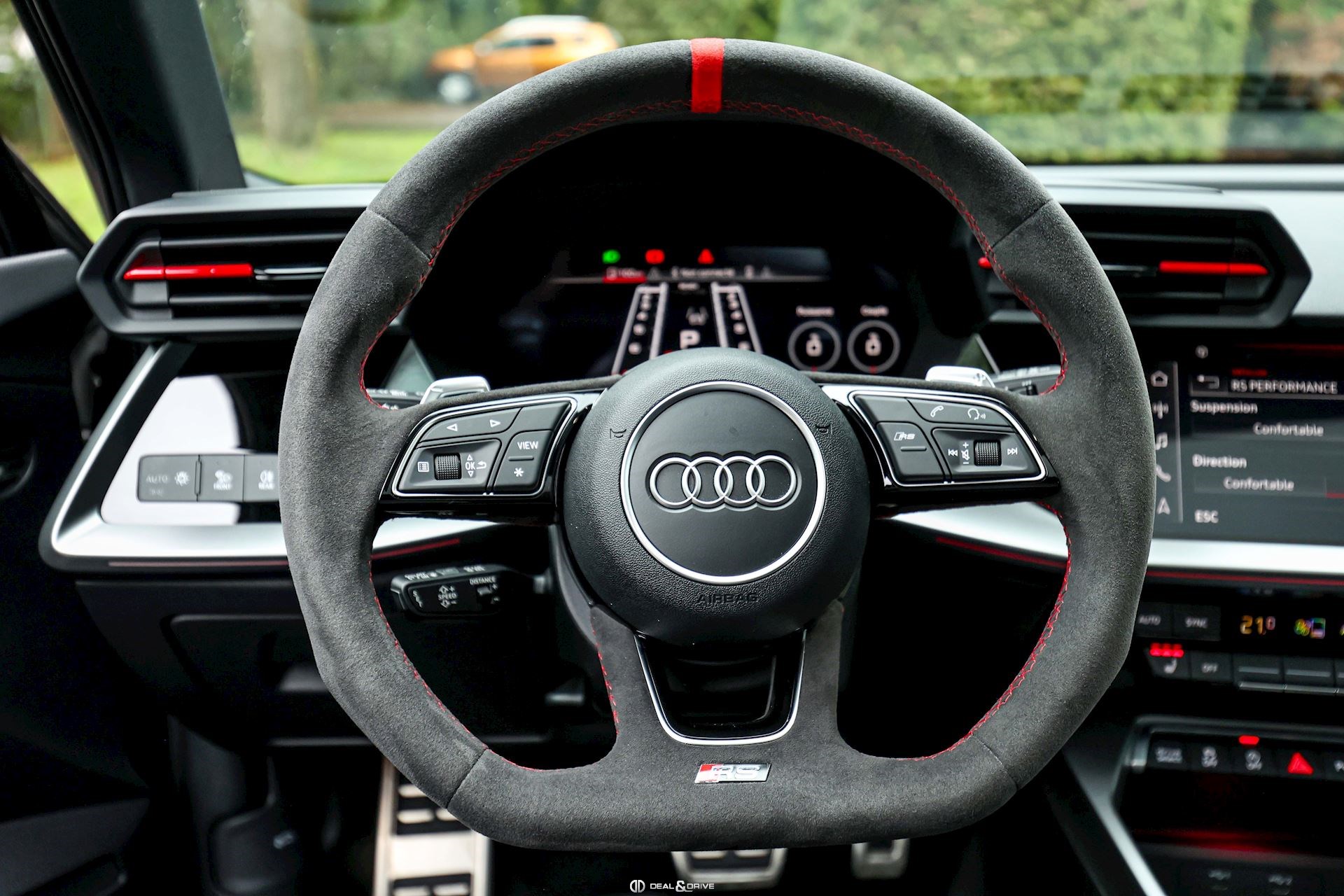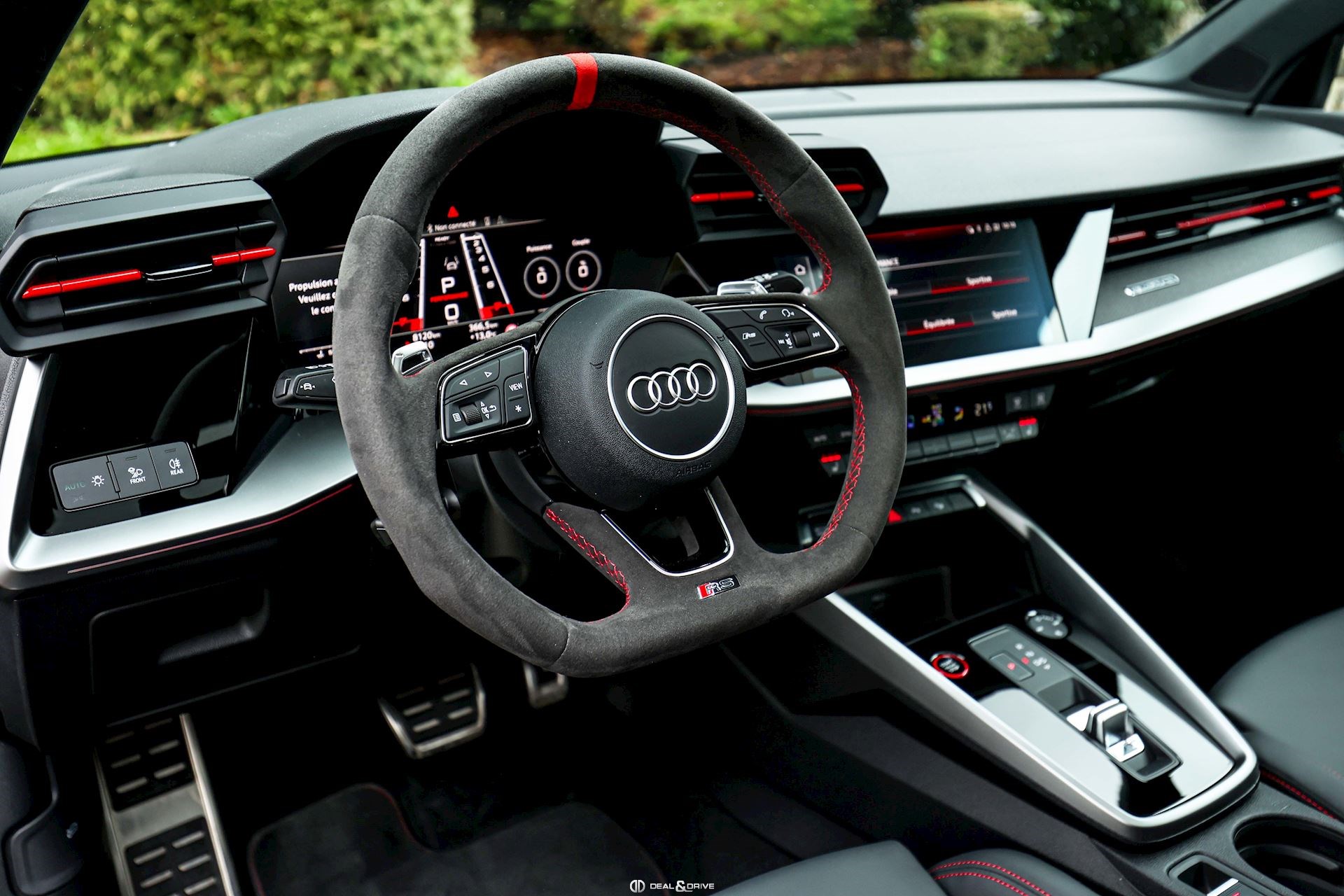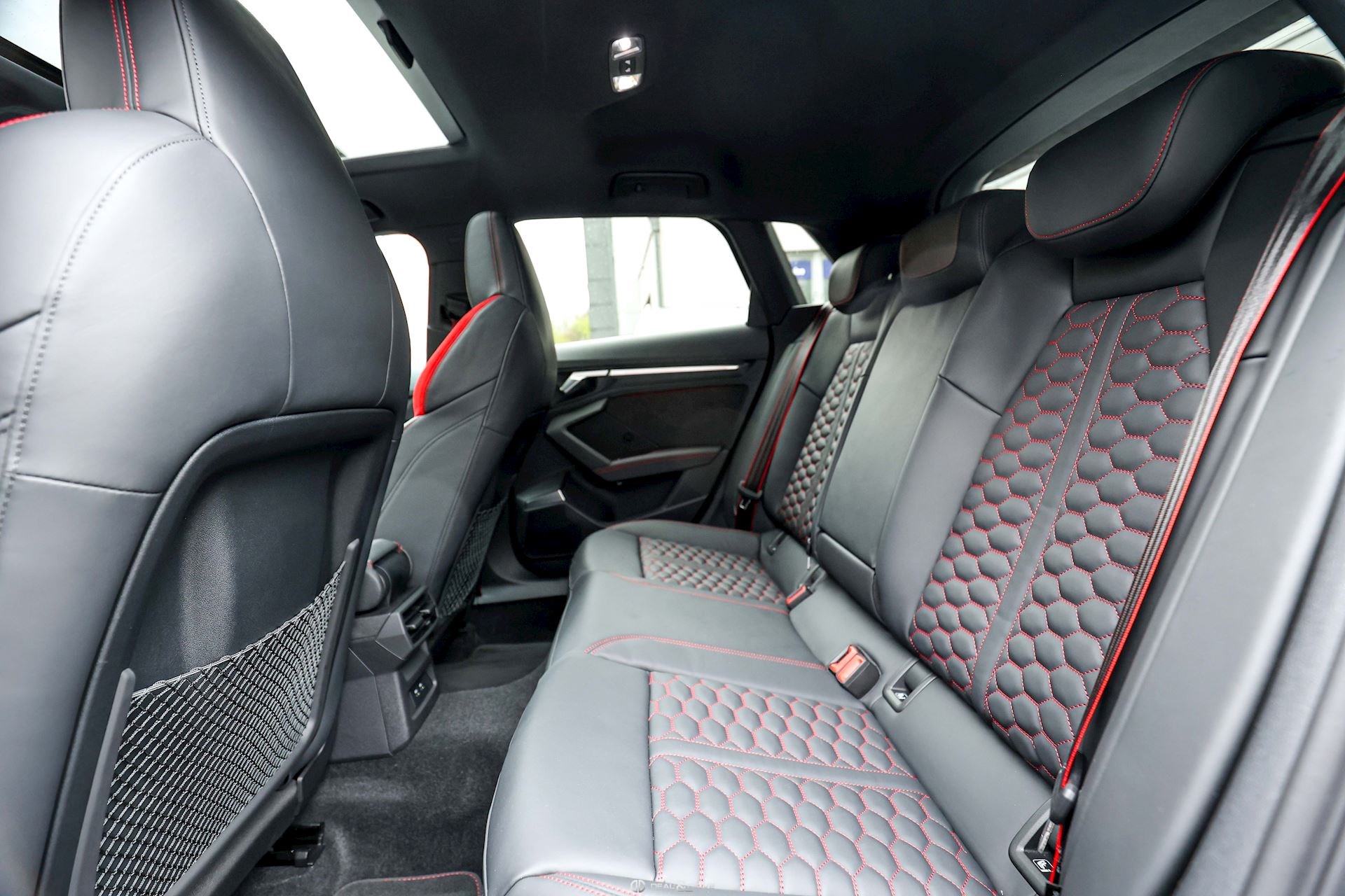 Sellerie en cuir Nappa Fin avec embossage RS et surpiqûres alvéolées rouges