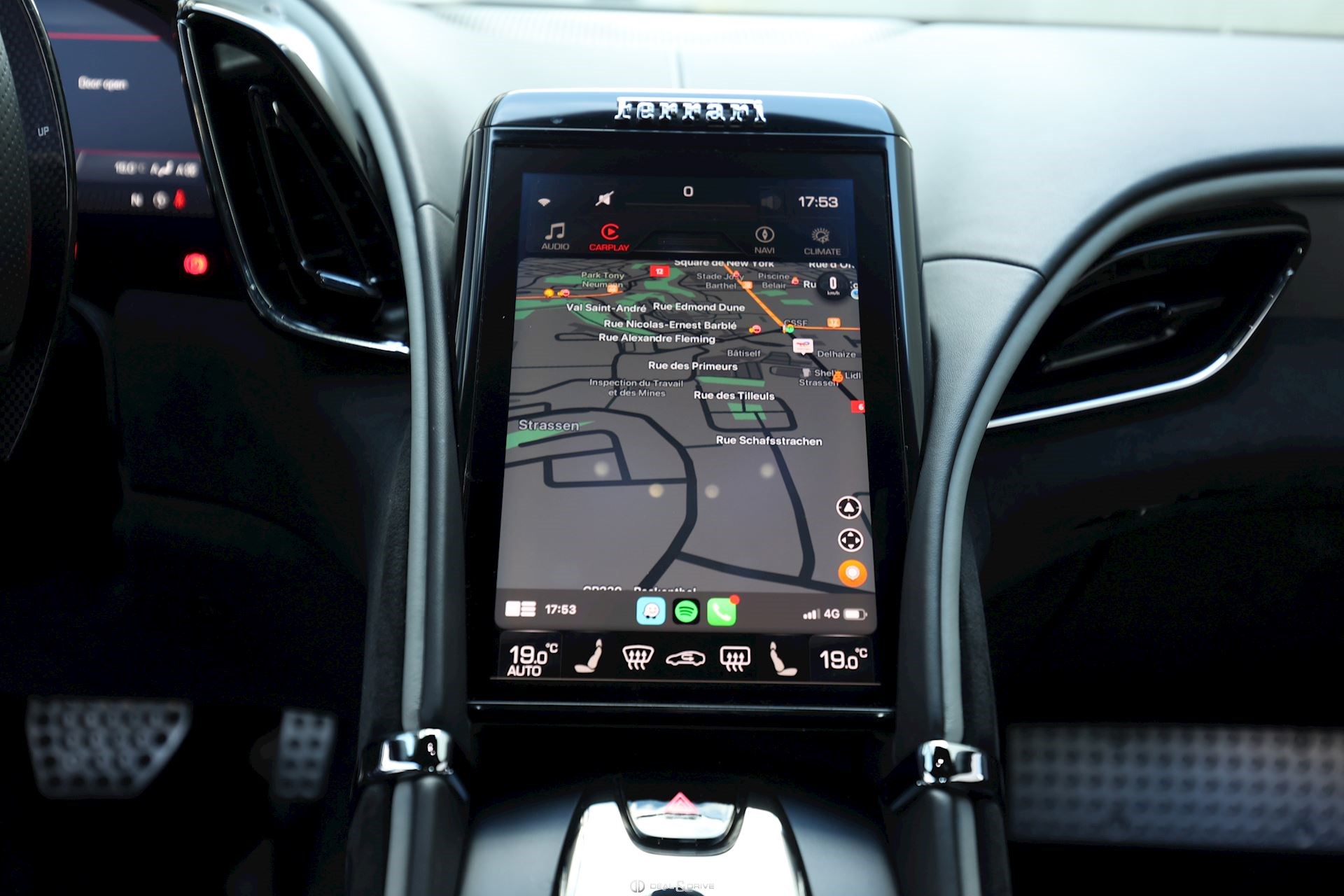 Véhicule équipé d'une housse de protection et d'un maintien de charge FERRARI