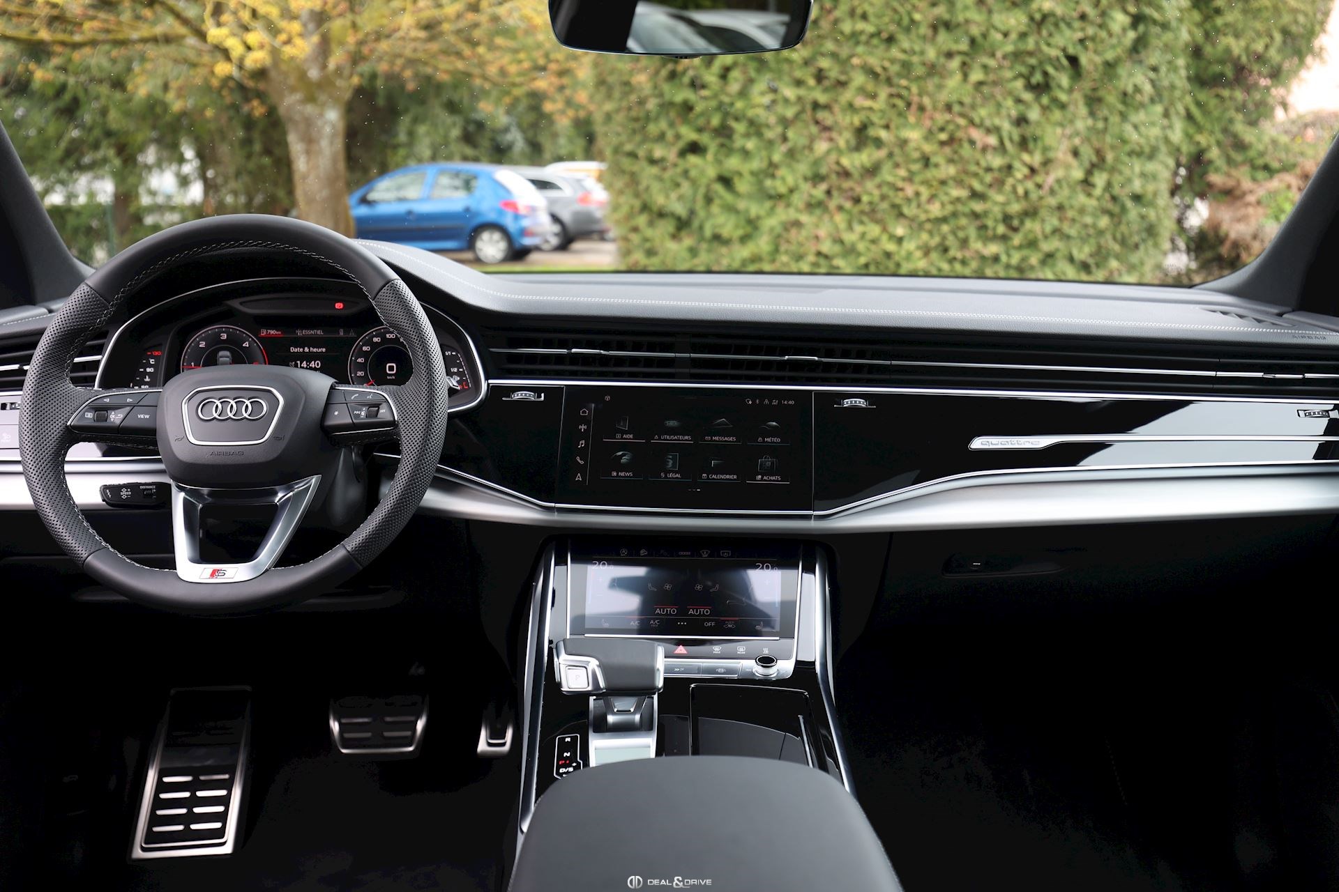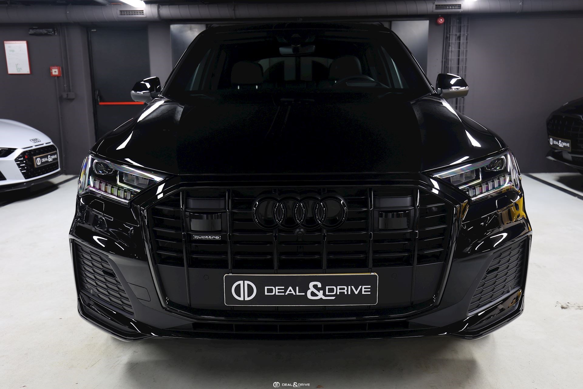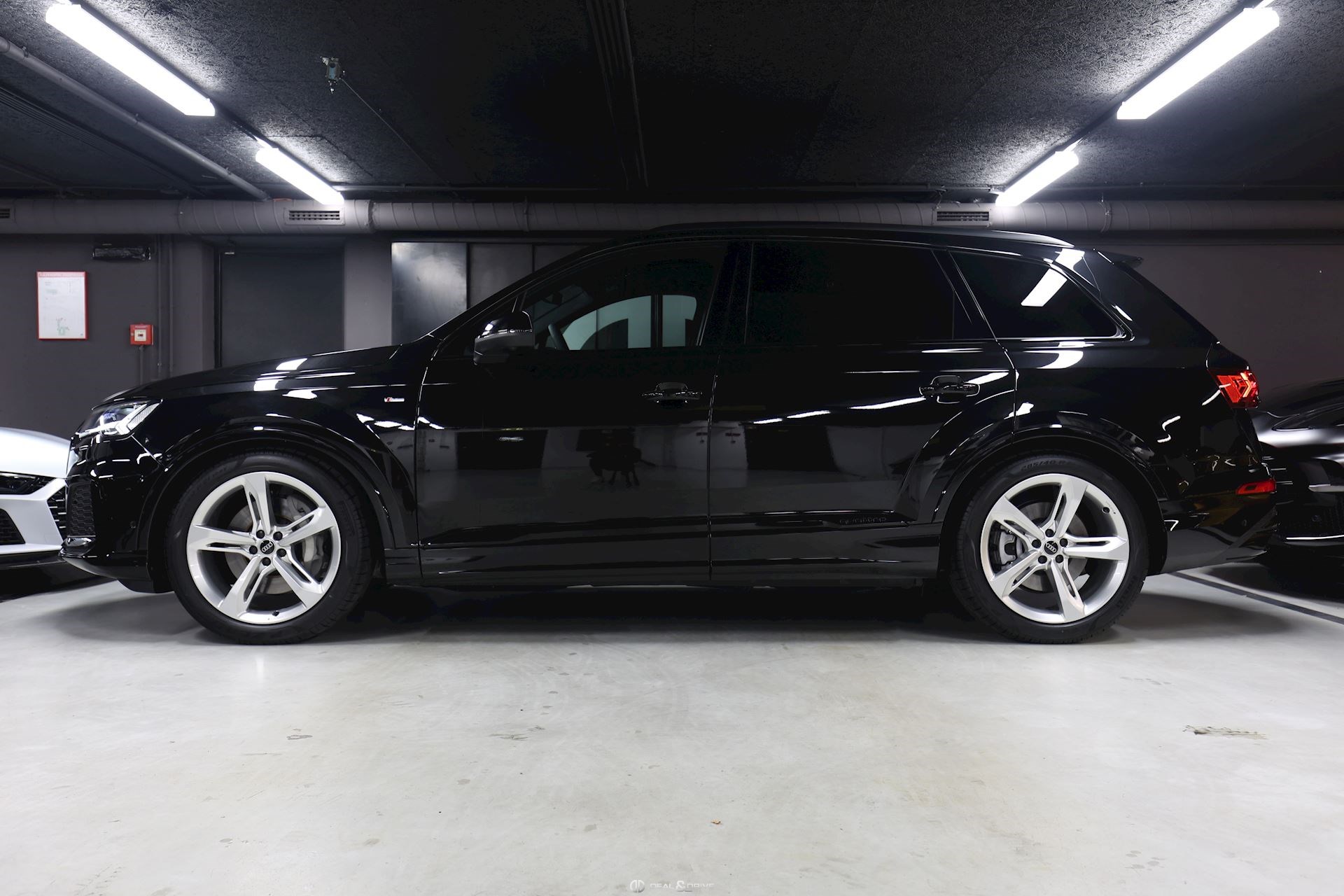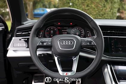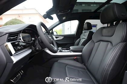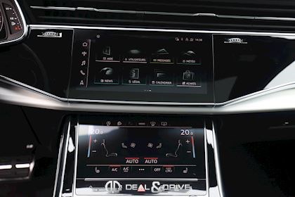 Système de direction intégrale Dispositif d'attelage Volant cuir sport en style à 3 branches avec multifonction plus et palettes y compris chauffage de volant adaptive air suspension sport Suppression de la marque de type et de inscription technologie Barres de toit noires Sièges chauffants à lavant Anneaux Audi et monogrammes en Noir Brillant Rétroviseur extérieur dégivrant, à réglage jour et nuit automatique, rabattable électriquement avec fonction mémoire Climatiseur automatique confort 4 zones Audi Virtual cockpit plus Autorisation de circulation, supplément Extension de garante 1 an, max 90000 km Audi connect 3 ans Cuir Valcona avec estampage S line sur les dossiers de sièges avant Pack Assistance Tour Repérage des panneaux de signalisation détectée par caméra Pack d'assistance en ville Pack Assistance au stationnement avec assistant aux manœuvres de stationnement Plus Assistant de stationnement 3e rangée de sièges Fixation de siège pour enfant SOFIX pour le siège du passager avant Chauffage/ventilation stationnaires Sièges avant réglables électriquement y compris fonction mémoire pour le siège du conducteur Phares Audi Matrix LED Vitrage Privacy (glaces assombries) Eclairage d'ambiance Ports USB avec foncion de chargement à l'arrière Jantes en aluminium coulé Audi Sport en style Blade à 5 branches, dim. 9,5 J x 21 avec pneus 285/40 R21 Pack Premium Toit en verre panoramique Accoudoir central confort à l'avant Touches de commande en style verre Noir avec retour d'information, y compris style aluminium étendu Fermeture assisté pour les portes Audi smartphone interface Affichage tête haute Application décorative sup. aluminium brossé Sono/application décorative inf. laque chromée gris ardoise Plafonnier en tissu noir Sièges sport à avant