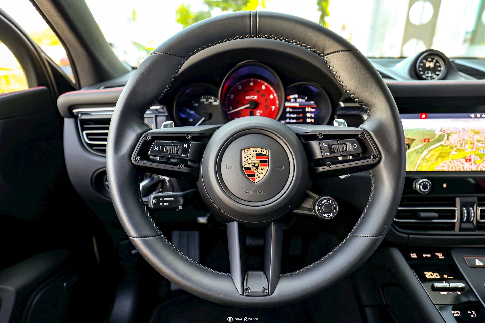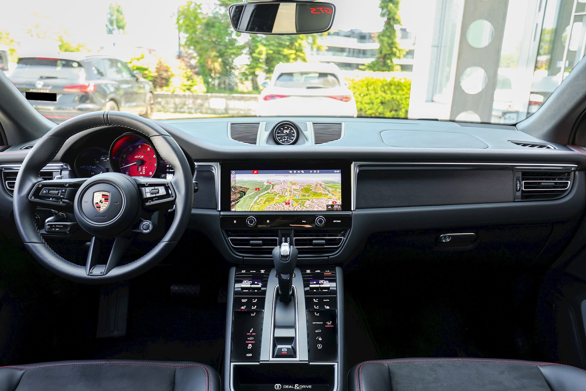 Pack Intérieur GTS en Rouge Carmin Cadran du compte-tours central en Rouge Carmin Logo "GTS" brodés sur les appuie-têtes des sièges avant en Rouge Carmin Coutures décoratives sur les sièges en Rouge Carmin Compartiment de rangement principal de la console centrale en Rouge Carmin Partie supérieure du tableau de bord avec surpiqûres en Rouge Carmin Tapis de sol avec surpiqûres en Rouge Carmin Ceintures de sécurité en Rouge Carmin Centre des sièges avant et arrière en Race-Tex Accoudoirs des porte avant et arrière en Race-Tex Accoudoir central en Race-Tex