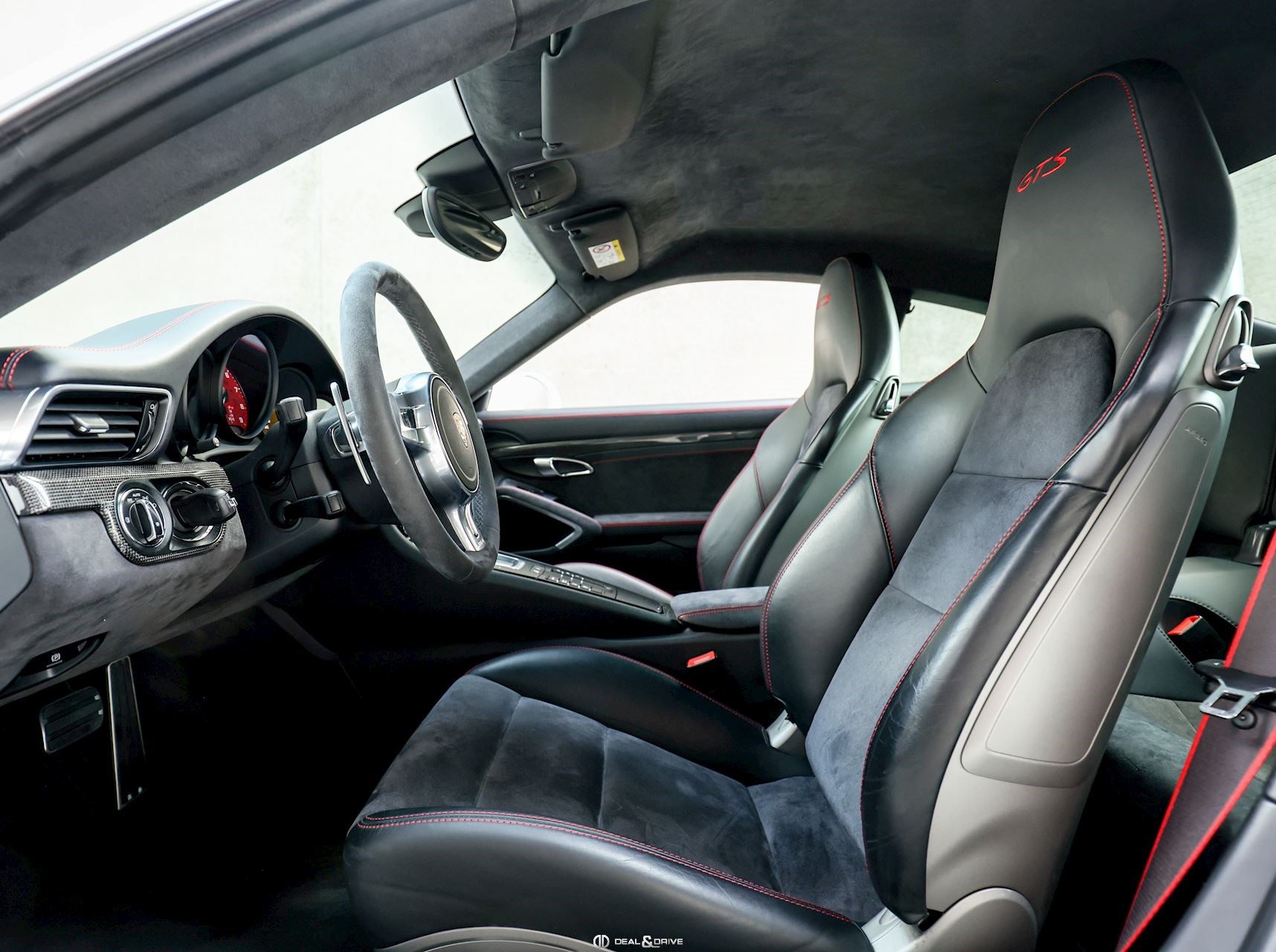 INTÉRIEUR Sellerie en cuir et Alcantara Sièges avant chauffants Volant en Alcantara Tapis de sol PORSCHE Fond du compteur en Rouge Plafonnier Noir Seuils de porte en Aluminium avec désignation du modèle Climatisation automatique 2 zones Inscription GTS sur les appuie-têtes