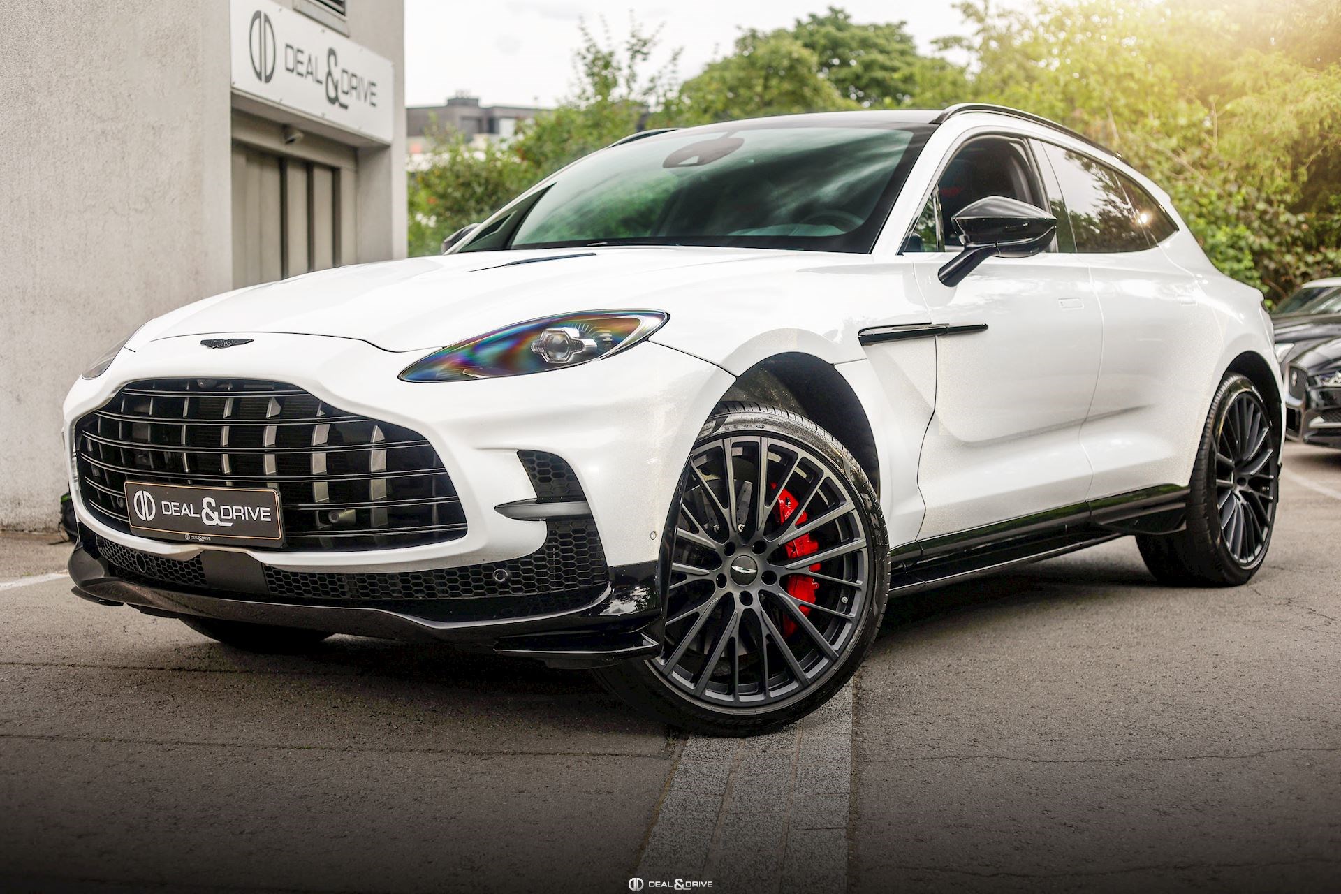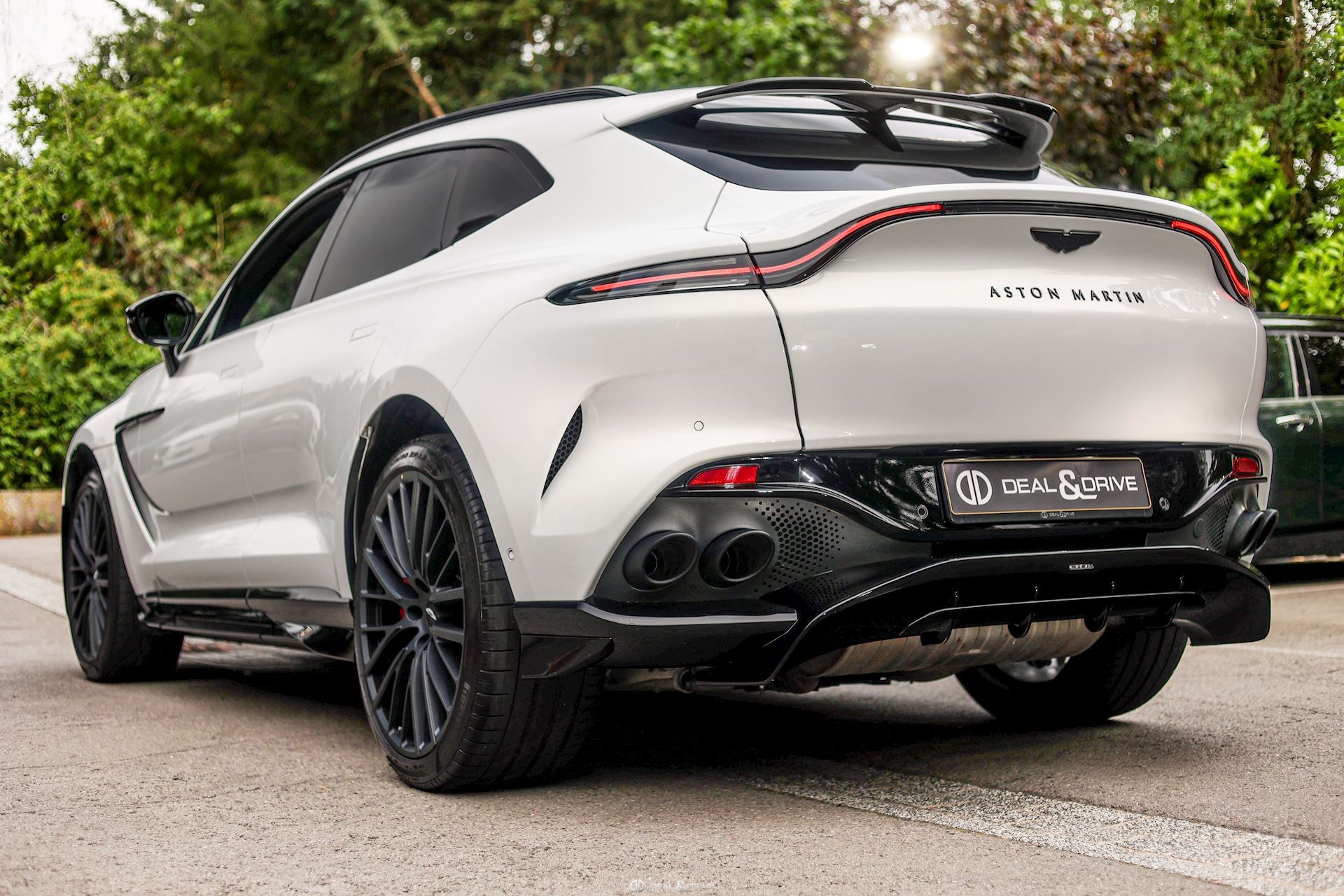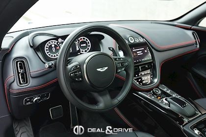 EXTÉRIEUR Toit panoramique Jantes forgées 23’’ en Noir texturé Étriers de frein en Rouge Badges et dénomination Aston Martin en Noir Grille à l’avant en Noir brillant Vitrage arrière surteinté Privacy Glass Vitrage arrière acoustique Badges extérieurs Aston Martin en Noir Hayon électrique avec contrôle gestuelle Coque des rétroviseurs extérieurs en Noir Contours des vitres latérales en Noir Diffuseur arrière en Noir Bas de caisse en Noir Rétroviseurs extérieurs électriques Rétroviseurs extérieurs rabattables électriquement Inscription Aston Martin en Noir brillant