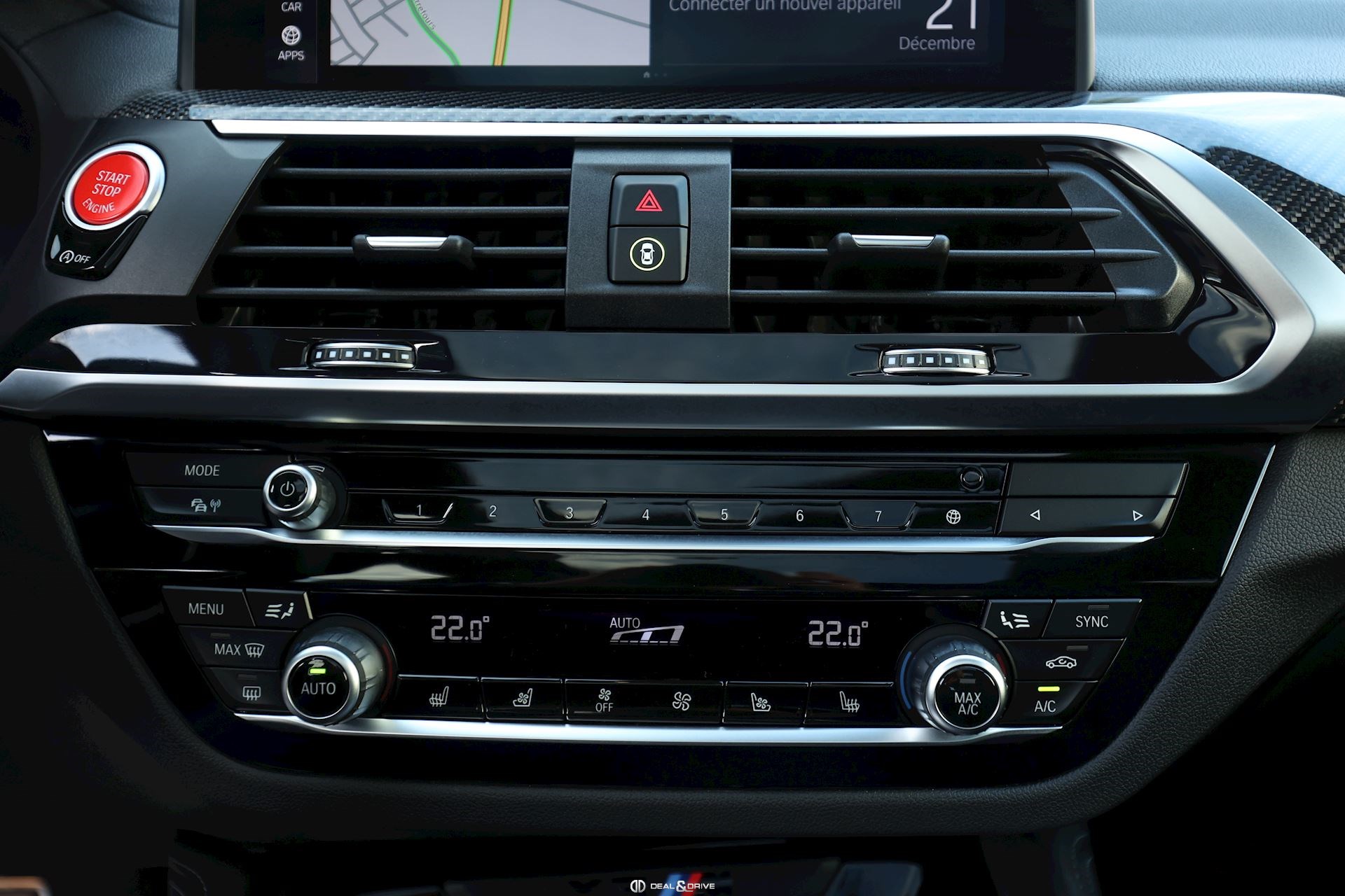 INTÉRIEUR Inserts en Carbone Volant Sport M en cuir, multifonctions Volant chauffant Sièges M Sport Sièges avant électriques Sièges avant avec fonction mémoire Sièges avant chauffants Sièges avant ventilés Sièges arrière chauffants Appuie-lombaires électriques Ceintures de sécurité M Climatisation automatique 3 zones