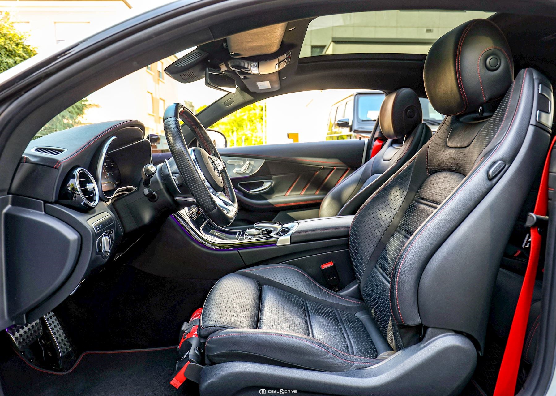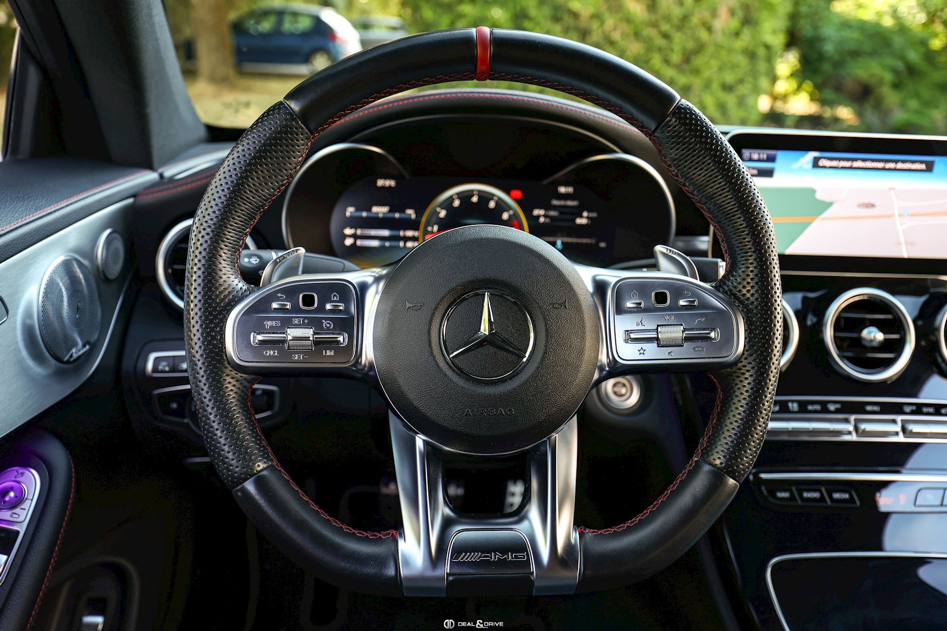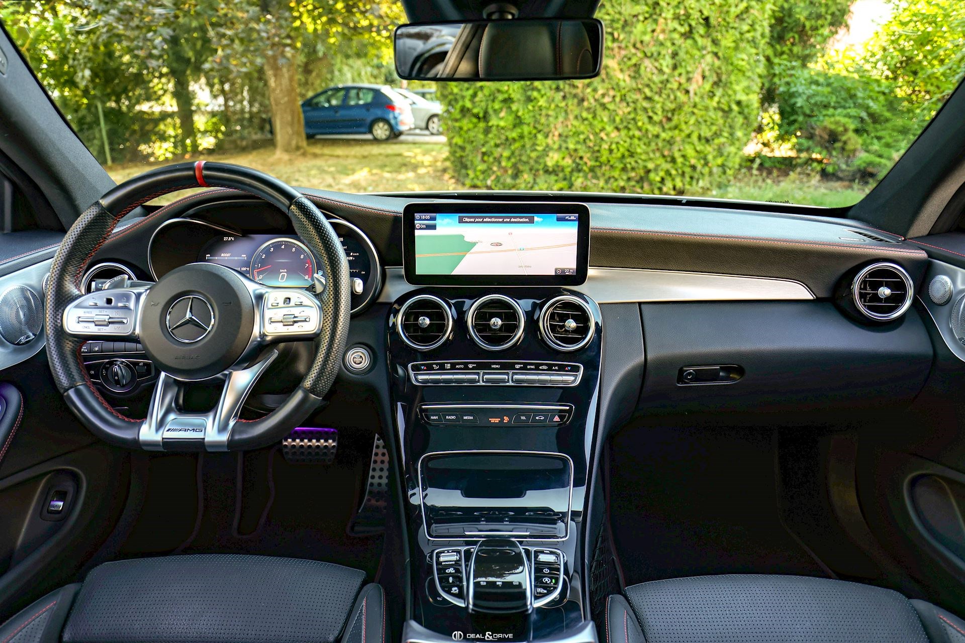 INTÉRIEUR Sellerie en cuir Sièges avant électriques avec fonction de mémoire Sièges avant chauffants Appuie-lombaires électriques Climatisation automatique confort 2 zones Volant AMG Performance, en cuir, multifonctions Volant réglable électriquement Seuil de porte AMG éclairé Tapis de sol AMG Plafonnier Noir Extincteur Inserts en Noir