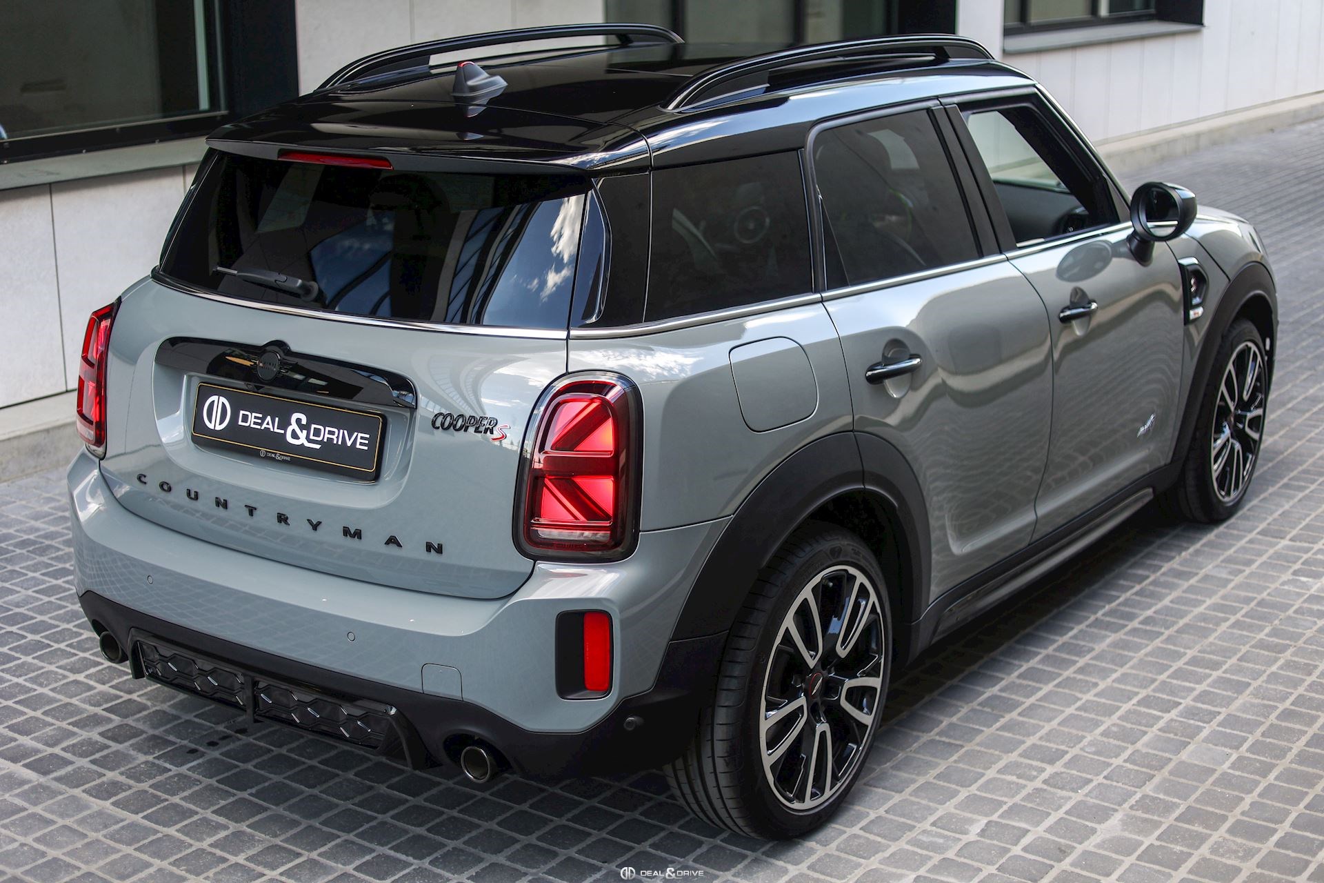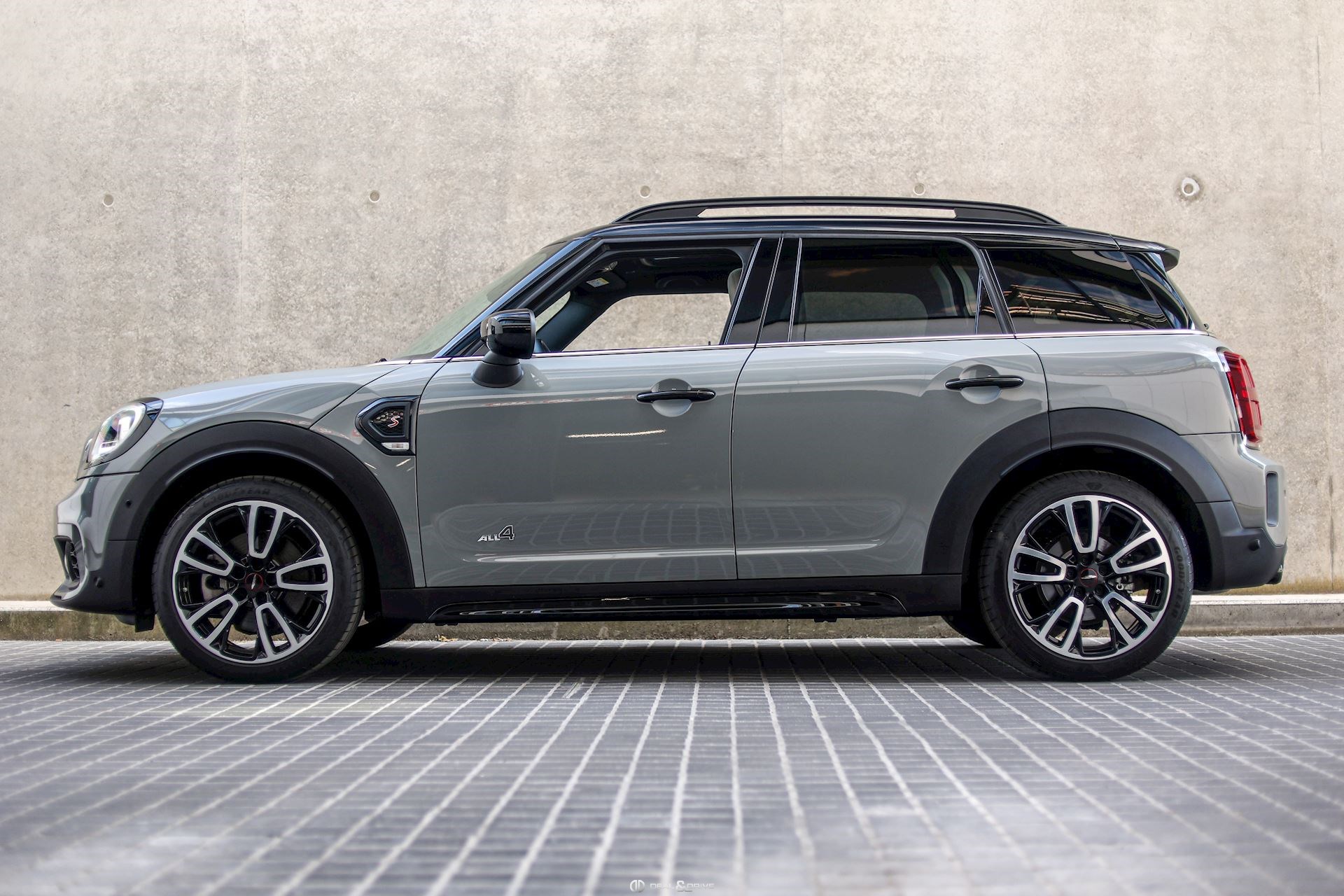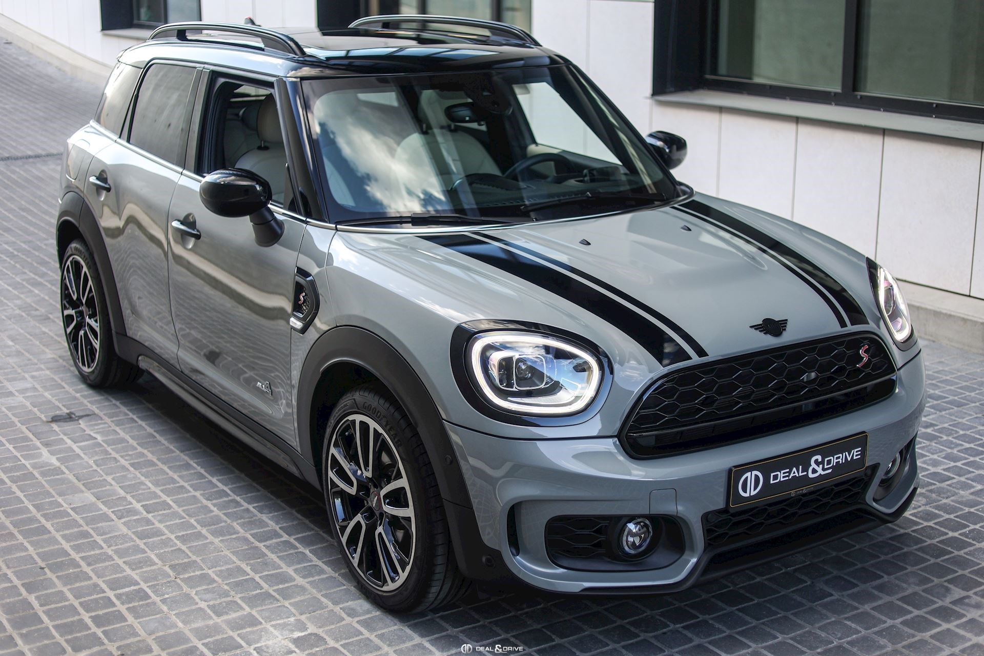 EXTÉRIEUR Toit ouvrant panoramique Jantes alliage léger 19’’, JCW Circuit Hayon électrique Barres de toit en Noir Bandes décoratives sur le capot Coques des rétroviseurs extérieurs en Noir Pavillon Noir Cerclages des feux en Noir Poignées de porte en Noir