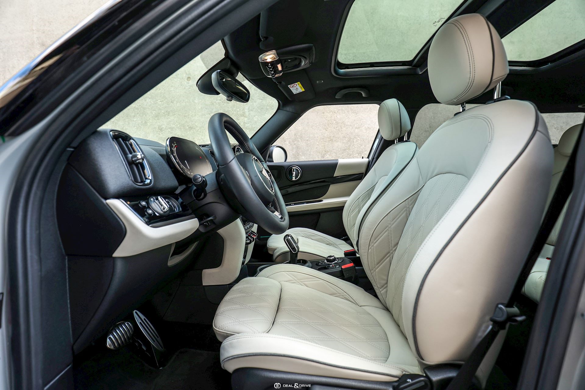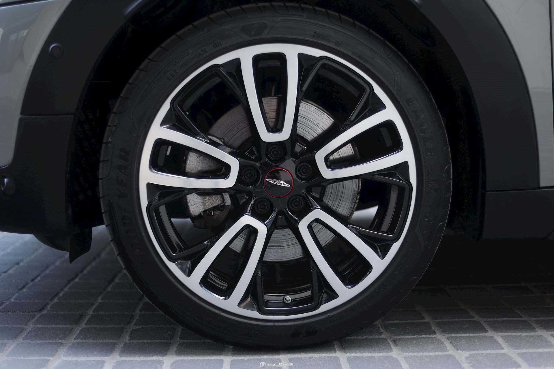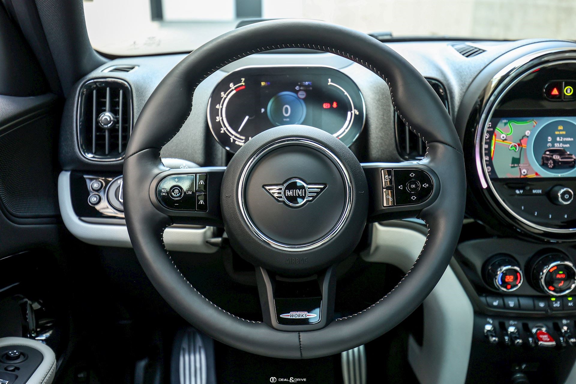 EXTÉRIEUR Toit ouvrant panoramique Jantes alliage léger 19’’, JCW Circuit Hayon électrique Barres de toit en Noir Bandes décoratives sur le capot Coques des rétroviseurs extérieurs en Noir Pavillon Noir Cerclages des feux en Noir Poignées de porte en Noir