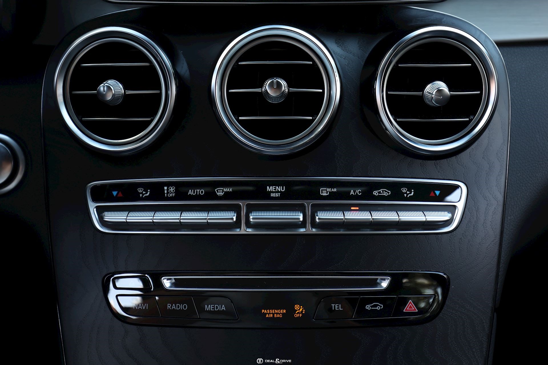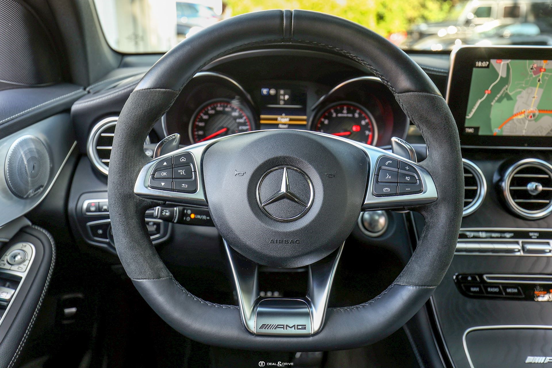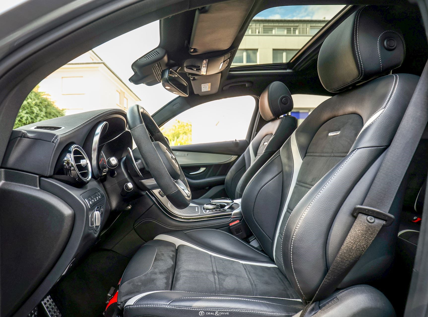 INTÉRIEUR Sellerie en cuir et Alcantara Intérieur en Bois précieux Frêne foncé Volant AMG Performance en cuir et Alcantara, multifonctions Climatisation automatique Confort Thermotronic 3 zones Extincteur Sièges avant électriques Sièges avant chauffants Appuie-lombaires électriques Tapis de sol AMG Plafonnier Noir Seuils de porte AMG en Aluminium, éclairés