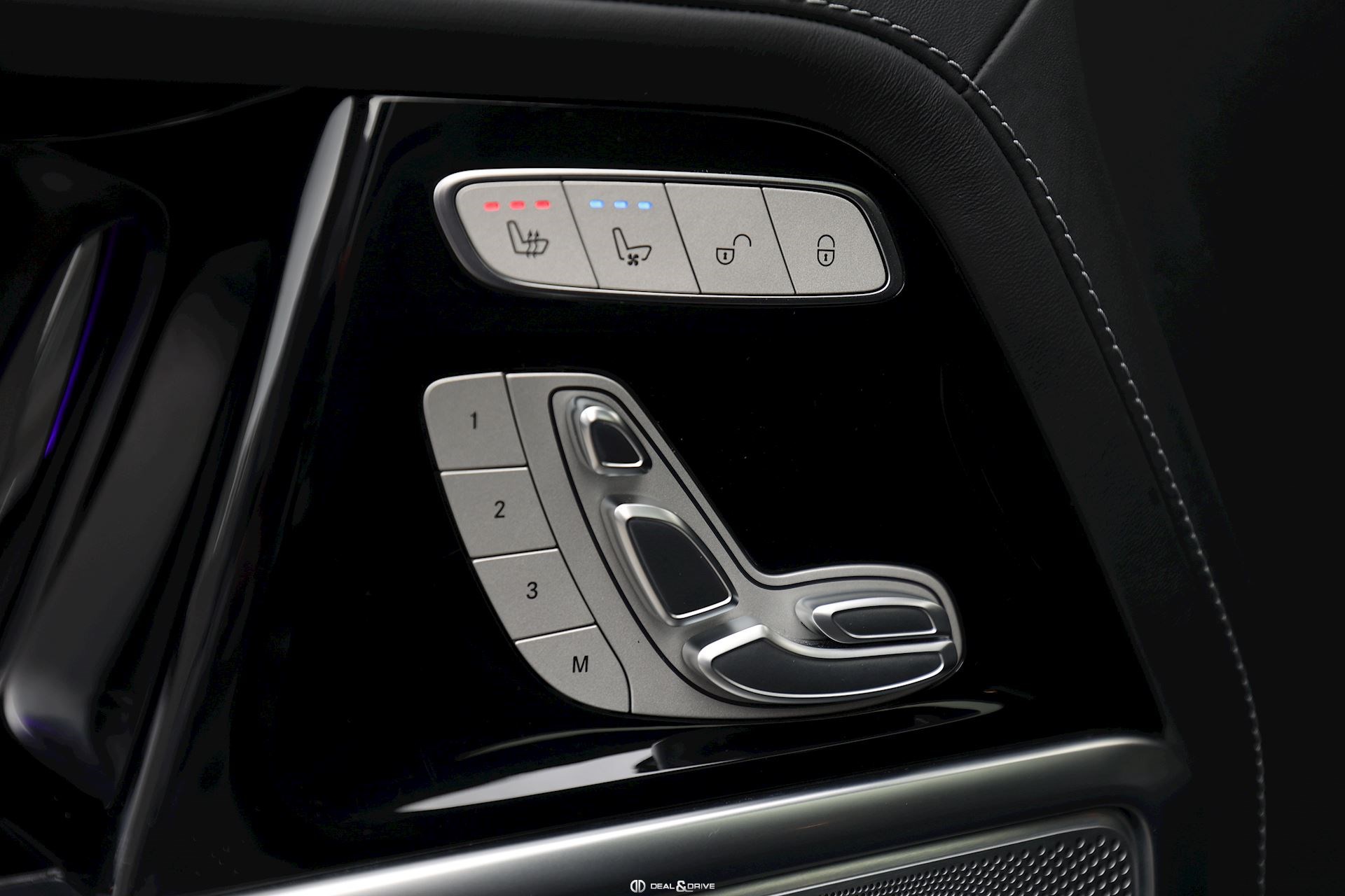 INTÉRIEUR Intérieur Designo Noir piano Sellerie en cuir Nappa Ceintures de sécurité Designo Volant en cuir, multifonctions Volant chauffant Volant réglable électriquement Climatisation automatique Confort, Thermotronic 3 zones Sièges avant chauffants Sièges arrière chauffants Sièges avant ventilés Sièges avant électriques Sièges avant avec fonction mémoire Seuils de porte en Aluminium, éclairés