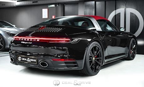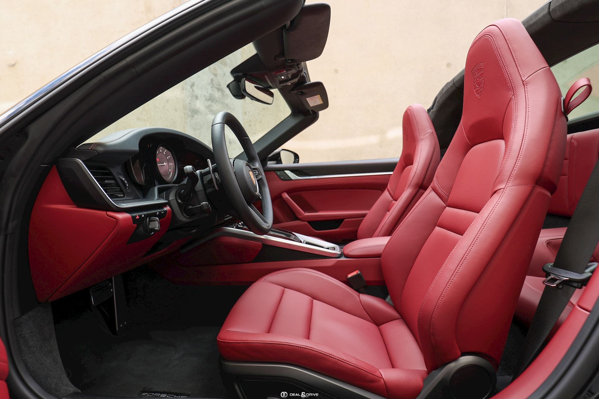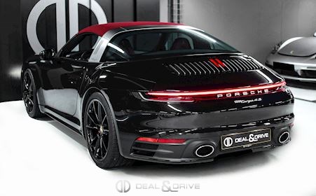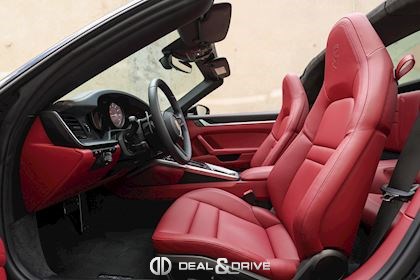 EXTÉRIEUR Bouchon de réservoir Exclusive Design Caches moyeux Porsche en couleur Rétroviseurs extérieurs électriques Rétroviseurs extérieurs rabattables électriquement Jantes alliage léger 20’’/ 21’’ Carrera S en Noir brillant Etriers de frein en Rouge Capote extérieure en couleur Rouge Jupes latérales Sport Design – Porsche Exclusive Manufaktur