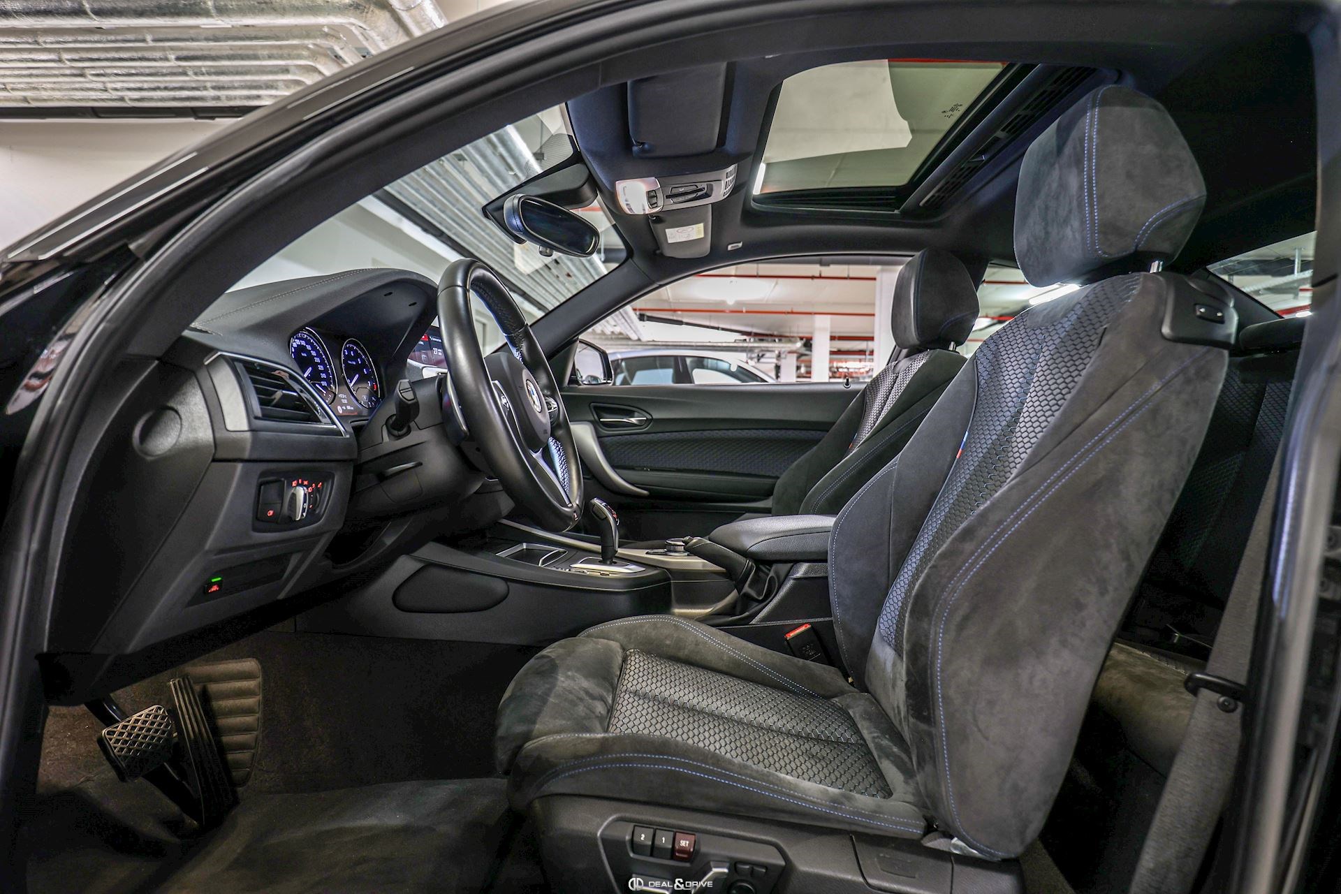 Pack navigation ConnectedDrive Extérieur Shadow-Line brillant Pack Rangement Suspension Sport M-Technic Jantes alliage léger 18“ M Freins M Sport avec étriers de frein en Bleu Toit ouvrant panoramique Aides au stationnement avant et arrière Caméra de recul Vitrage arrière surteinté Sellerie en Tissu Hexagon / Alcantara Sièges Sport Sièges avant électriques Siège conducteur avec fonction de mémoire Sièges avant chauffants Volant sport M-Technic en cuir, multifonctions Appuie-lombaires électriques Tapis de sol Inserts en Alu Hexagon Plafonnier Anthracite BMW Individual Levier de vitesse en Cuir Walknappa Régulateur de vitesse adaptif Seuil de porte avec monogramme M-Technic Feux LED Feux de route automatiques Feux de croisement automatiques Rétroviseurs extérieurs électriques Rétroviseur intérieur avec fonction anti-éblouissement Climatisation automatique 2 zones Système de contrôle de la pression des pneus Système de reconnaissance des panneaux de signalisation Système d’appel d’urgence comprenant TeleServices Chargeur à induction pour smartphone Radio numérique DAB ConnectedDrive Services Remote Services Concierge Services Système audio et navigation Professional Système de personnalisation de profil Interface Bluetooth Système de commande vocale Ports USB Système d’appel d’urgence