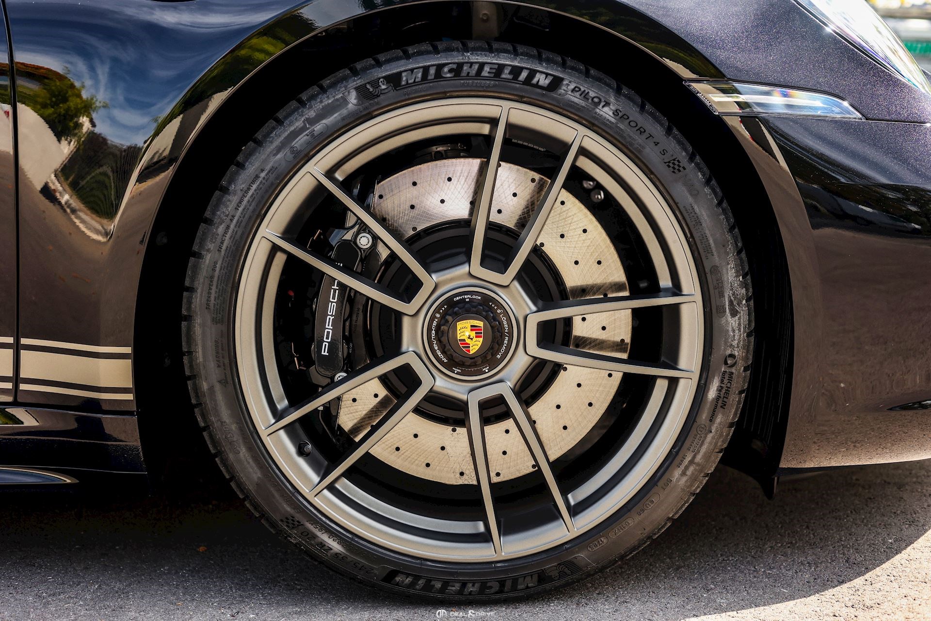 Arceau Targa en Platinum avec inscription TARGA en Noir Jantes alliage léger 20’’ / 21’’ Turbo S, Platinum, satiné Étriers de frein en Noir Caches moyeux PORSCHE en couleur