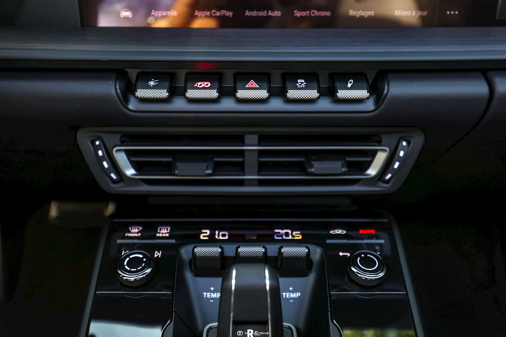 Sièges avant Sport 18 voies avec Pack mémoire Volant réglable électriquement Accoudoir central avant en cuir Inserts en Aluminium foncé à l’intérieur Appuie-têtes avant et arrière avec logo Porsche Climatisation automatique 2 zones Pare-soleils en cuir Seuils de porte en Aluminium foncé avec désignation du modèle Isofix sur siège passager Tapis de sol PORSCHE