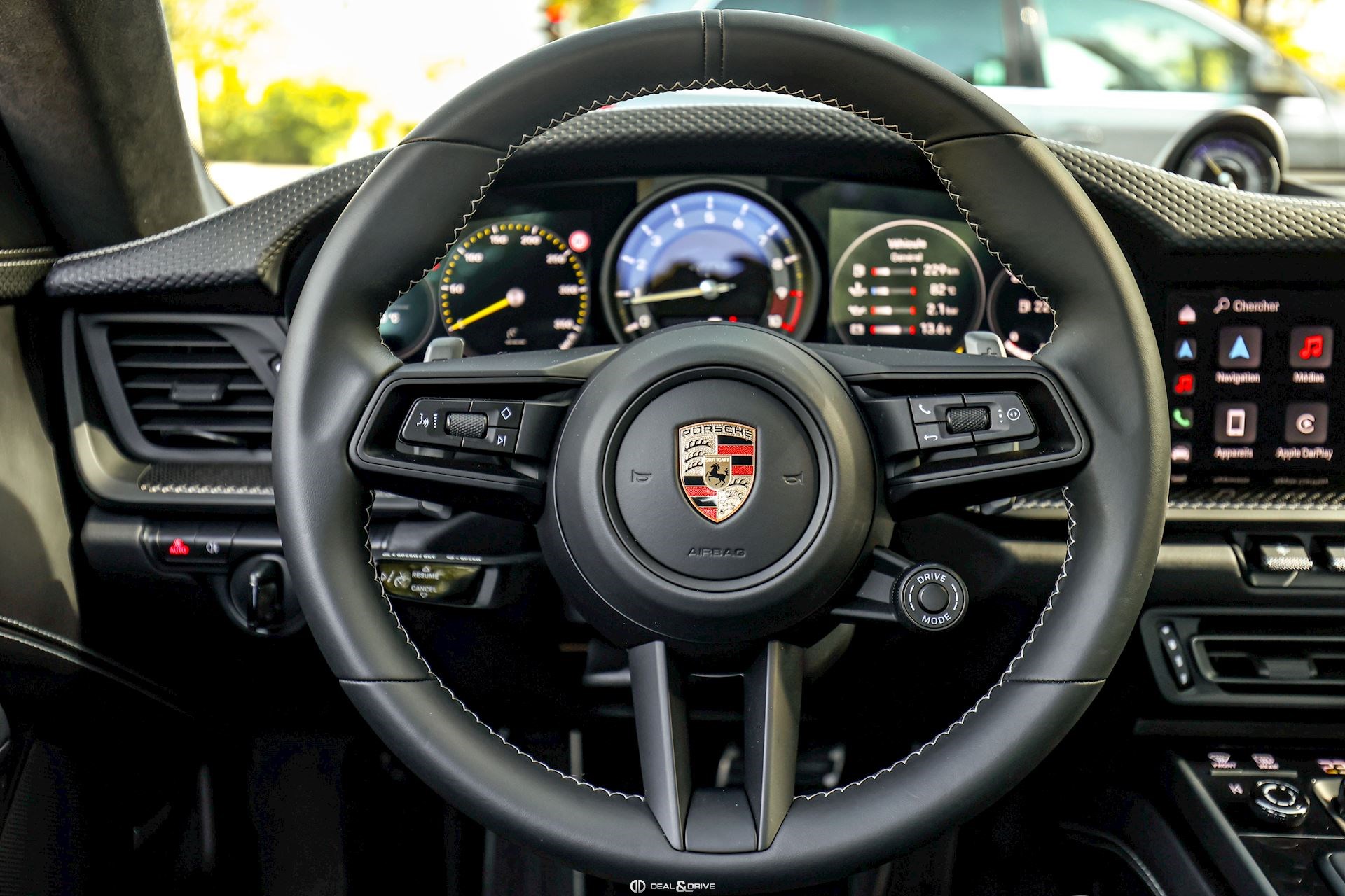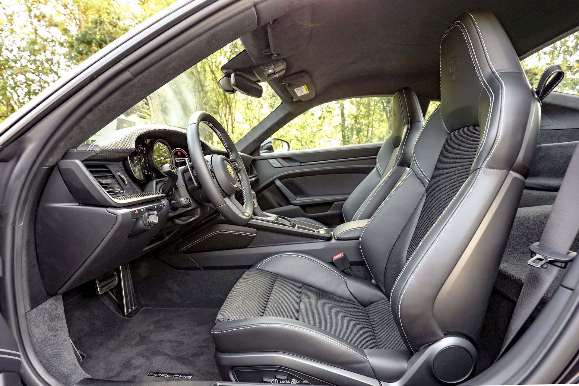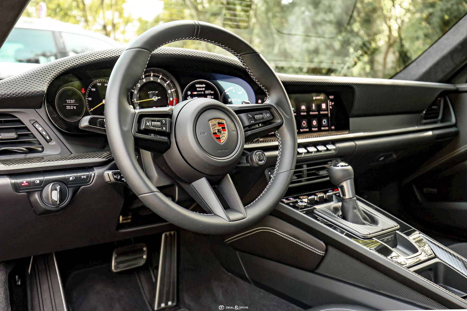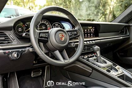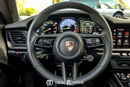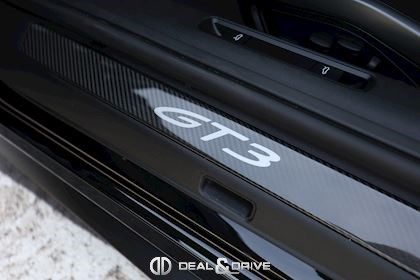 INTÉRIEUR Sièges électriques Sport Plus adaptatifs en 18 positions Sièges avant chauffants Volant Sport GT en cuir, multifonctions Seuils de porte en Carbon avec inscription GT3 Climatisation automatique 2 zones Appuie-têtes avec logo Porsche Tapis de sol PORSCHE Pare-soleils en Race-Tex Plafonnier en Race-Tex