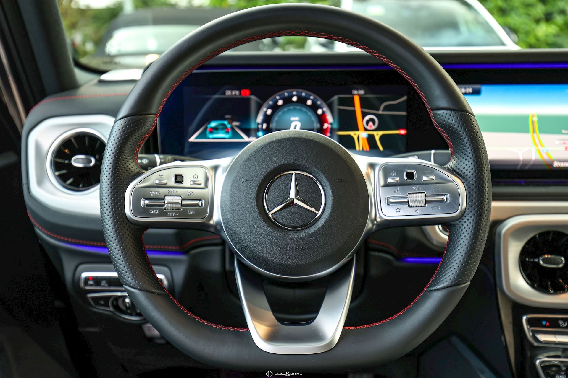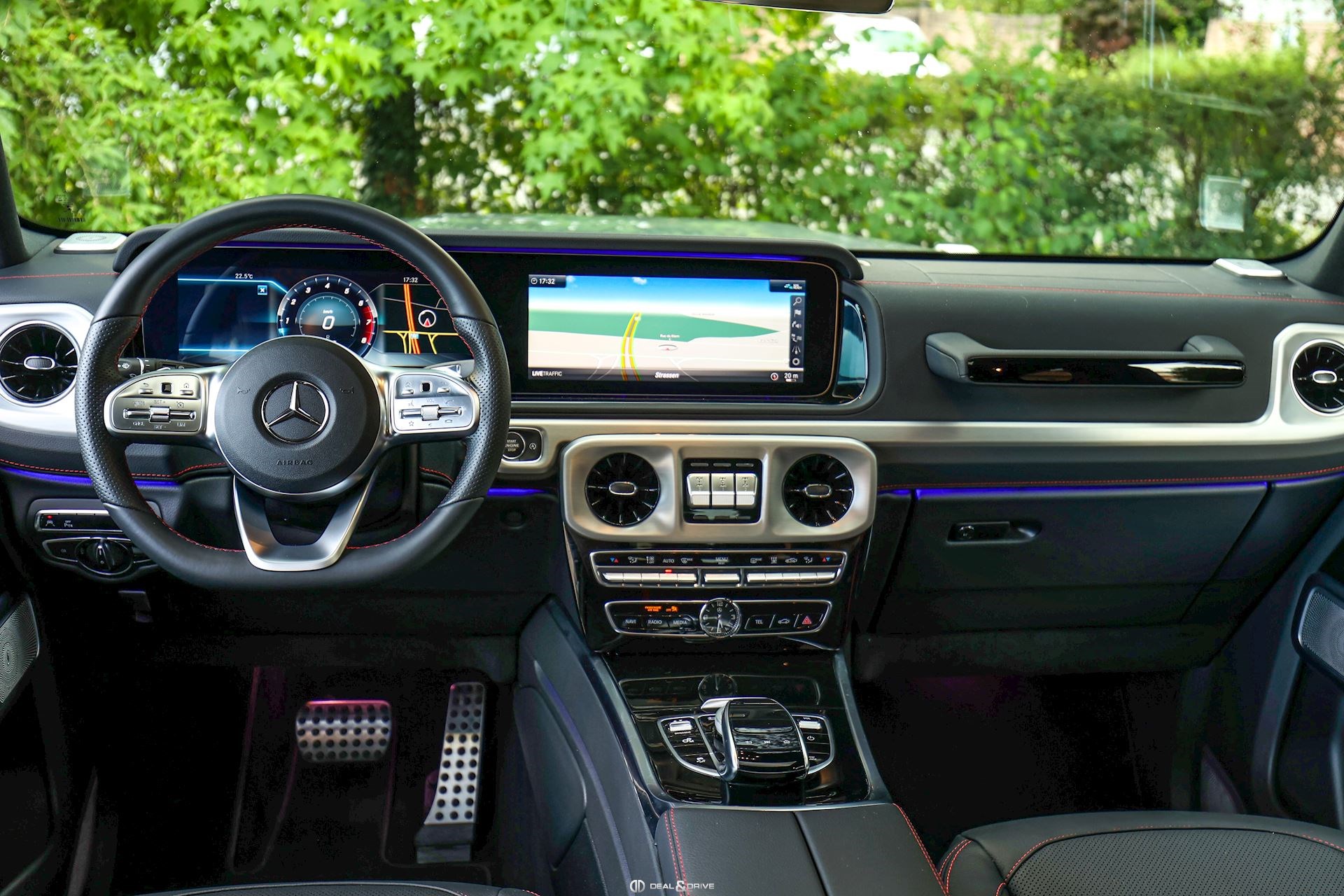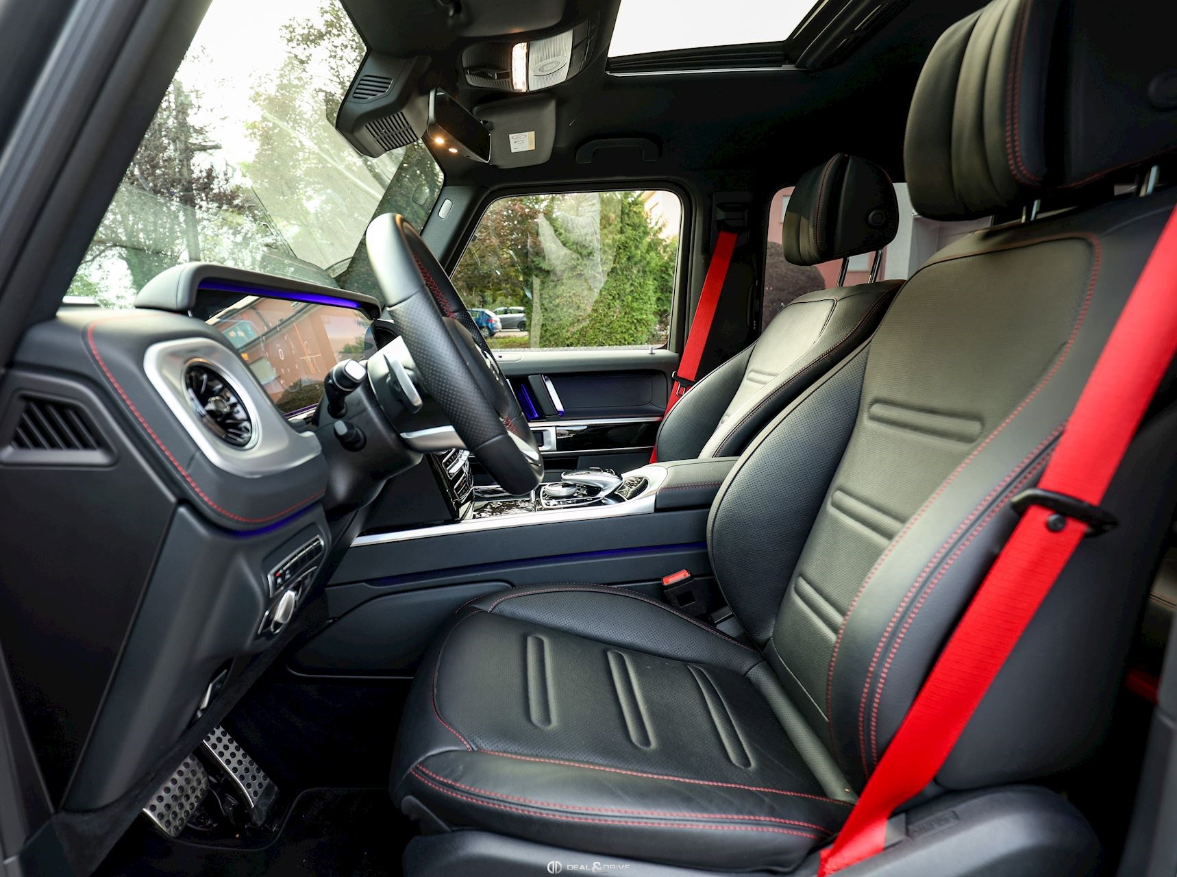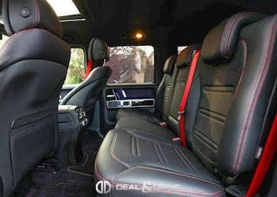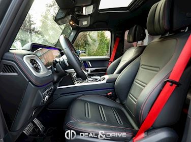 INTÉRIEUR Sellerie en cuir Sièges avant avec fonction mémoire Sièges arrière chauffants Appuie-lombaires électriques Surpiqûres rouges Volant Sport en cuir Nappa, multifonctions Volant réglable électriquement Climatisation automatique Confort Thermotronic 3 zones Ceintures de sécurité Designo en Rouge Inserts en Noir laqué Designo Chauffage auxiliaire Tapis de sol Plafonnier en Noir