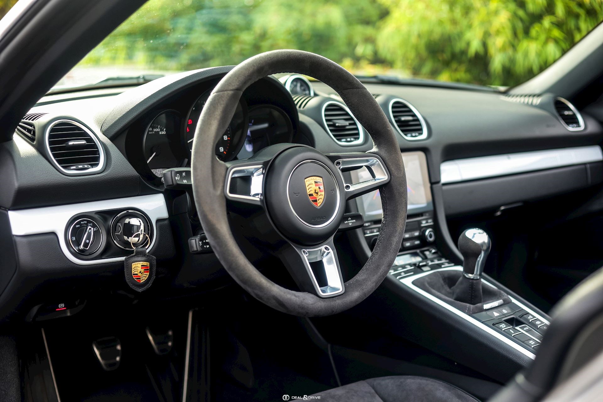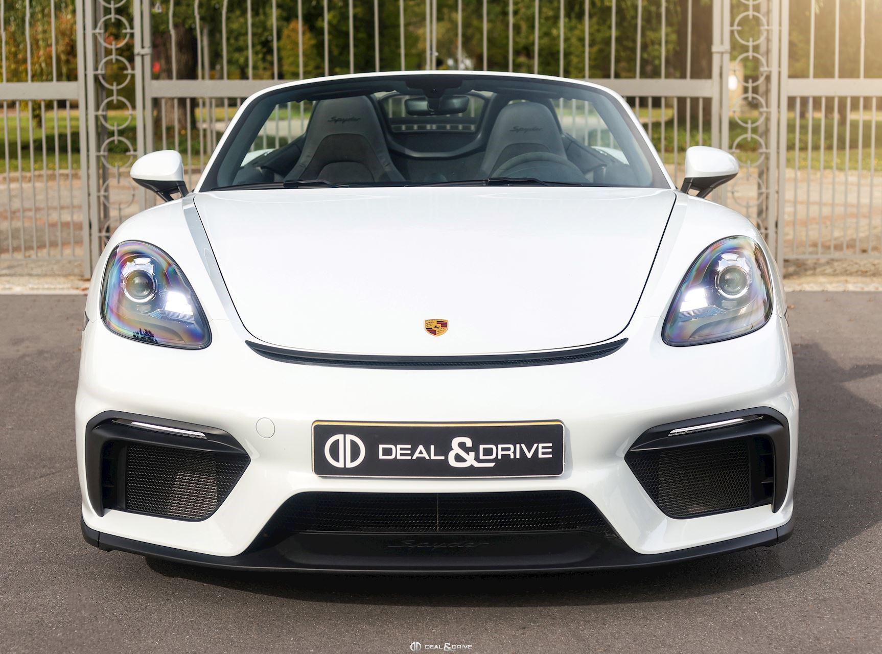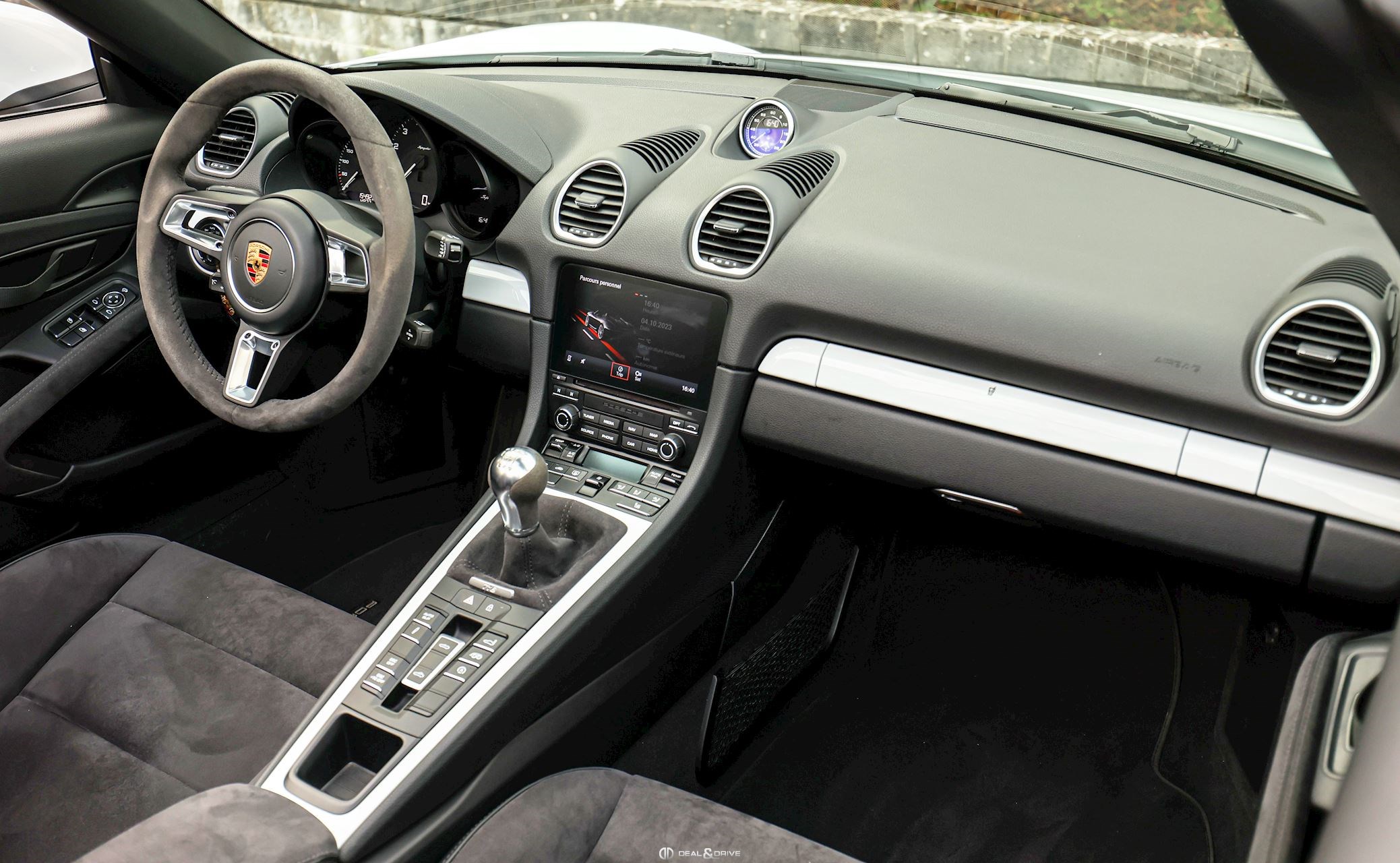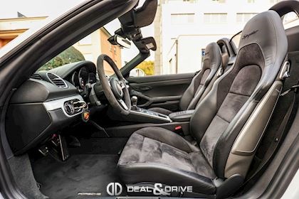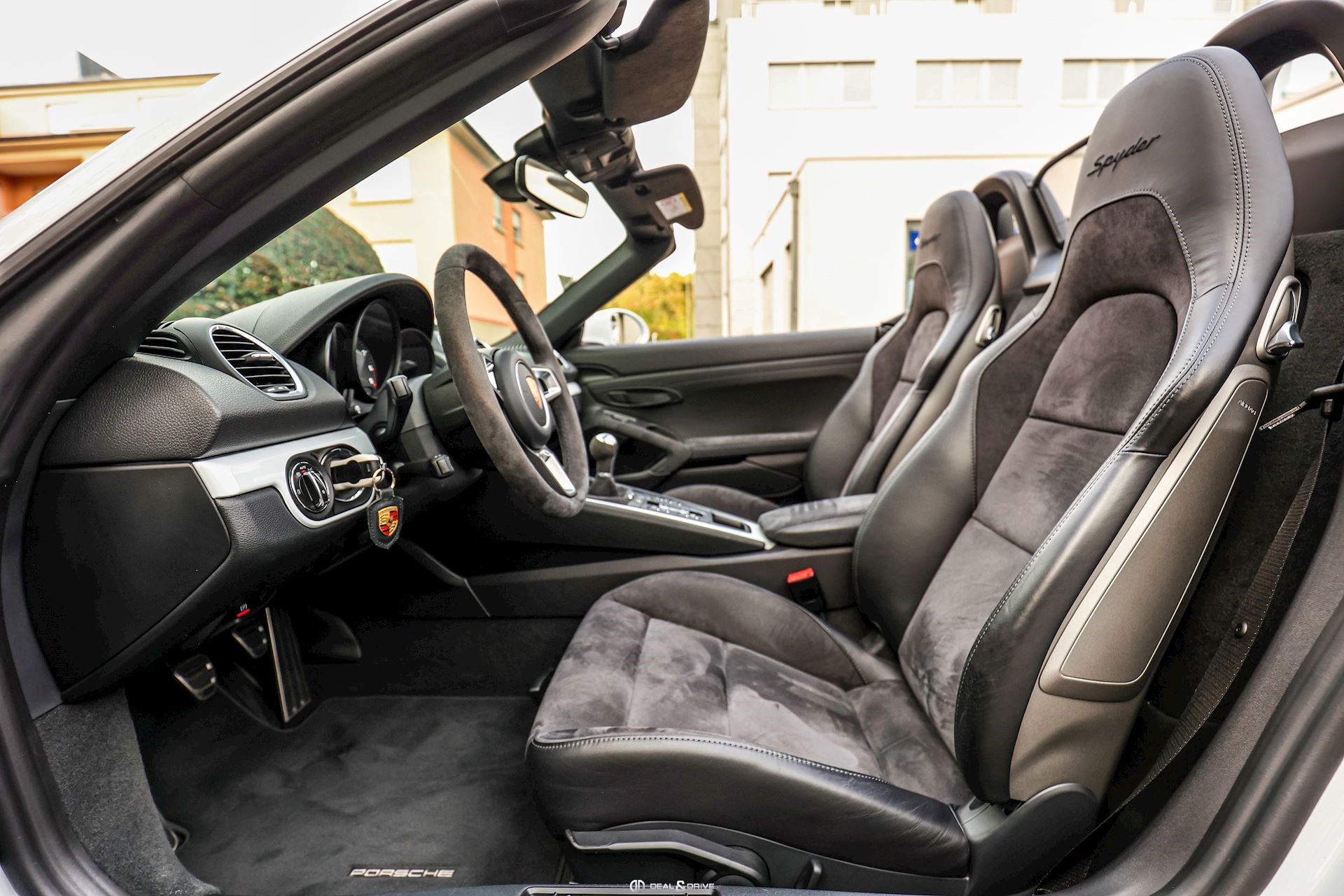 Volant GT en Race-Tex Fonds de compteur en Noir Déflecteur d’air arrière Levier de vitesse en Race-Tex Extincteur Seuils de porte en Aluminium avec inscription SPYDER