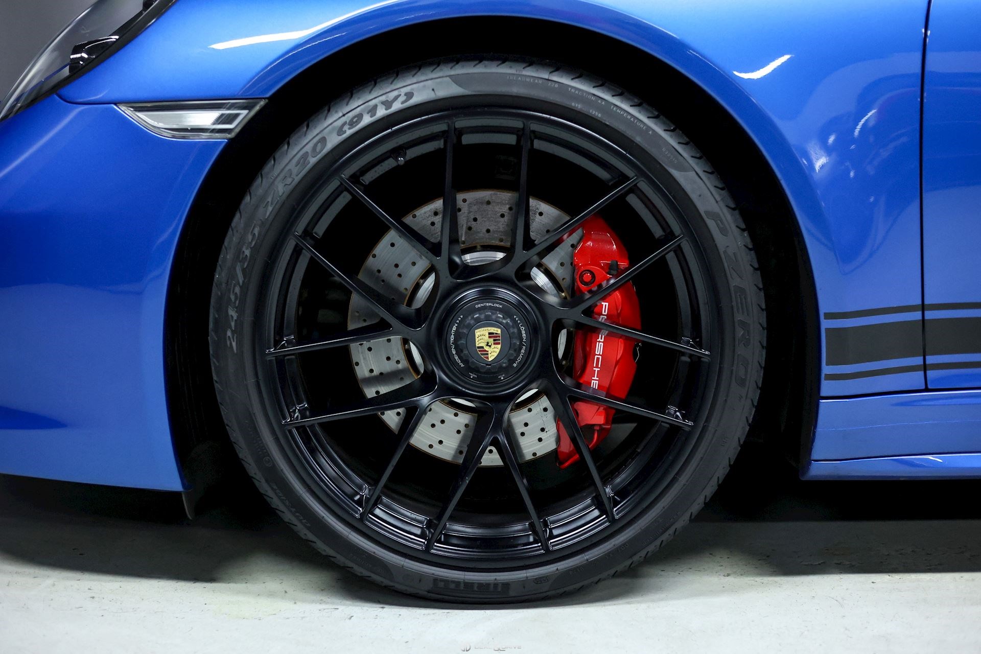 EXTÉRIEUR Toit en couleur Noir Rétroviseurs extérieurs électriques Rétroviseurs extérieurs Sport Design Rétroviseurs extérieurs et intérieur avec fonction anti-éblouissement Jantes alliage léger 20’’ 911 Turbo S en Noir Satin Caches moyeux Porsche Étriers de frein en Rouge Désignation du modèle peinte en Noir Satin Pare-brise teinté dégradé Grille de capot arrière avec lamelles peintes en couleur extérieure Jupes latérales peintes Bouchon de réservoir en AluDesign Bandes latérales avec inscription PORSCHE en Noir