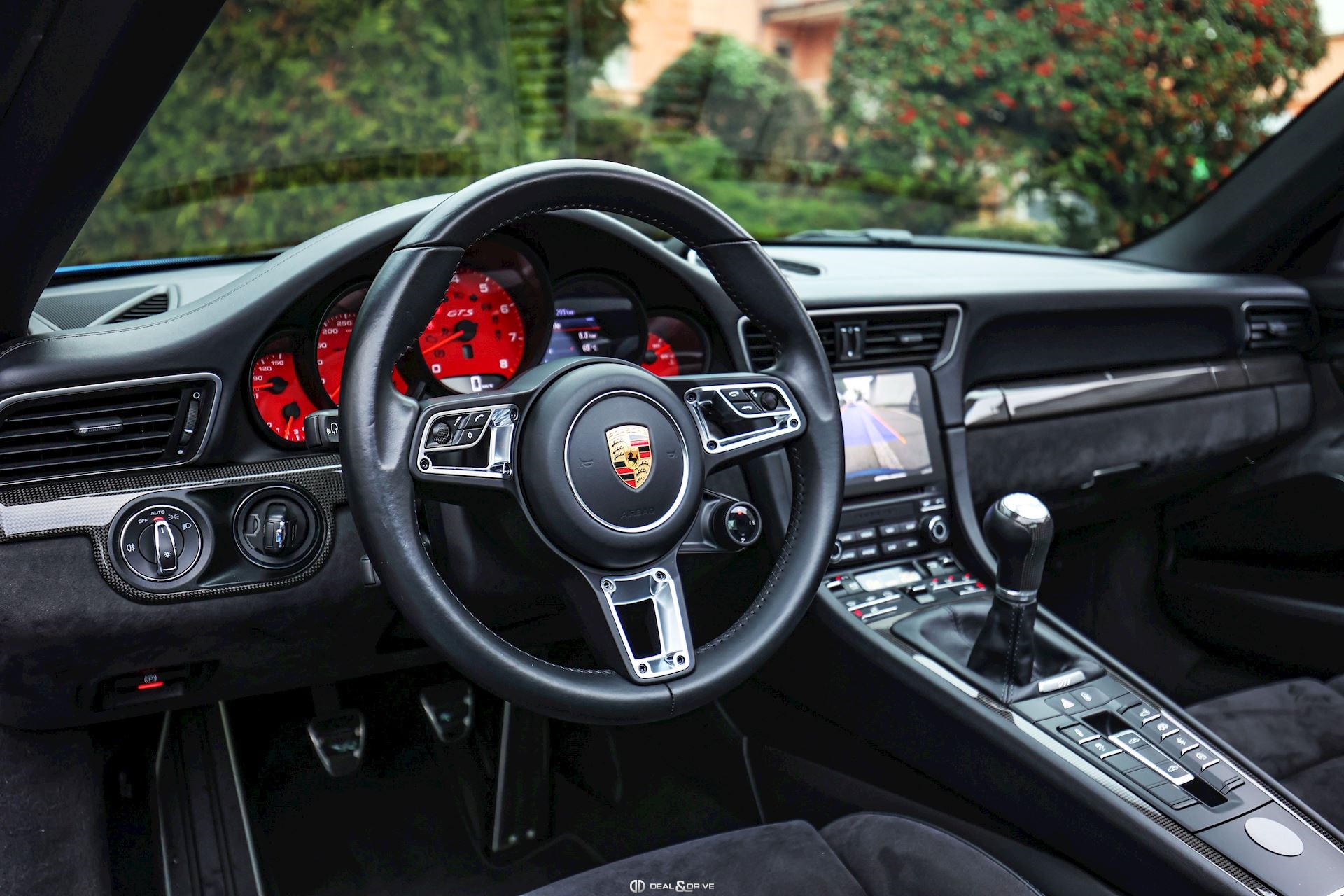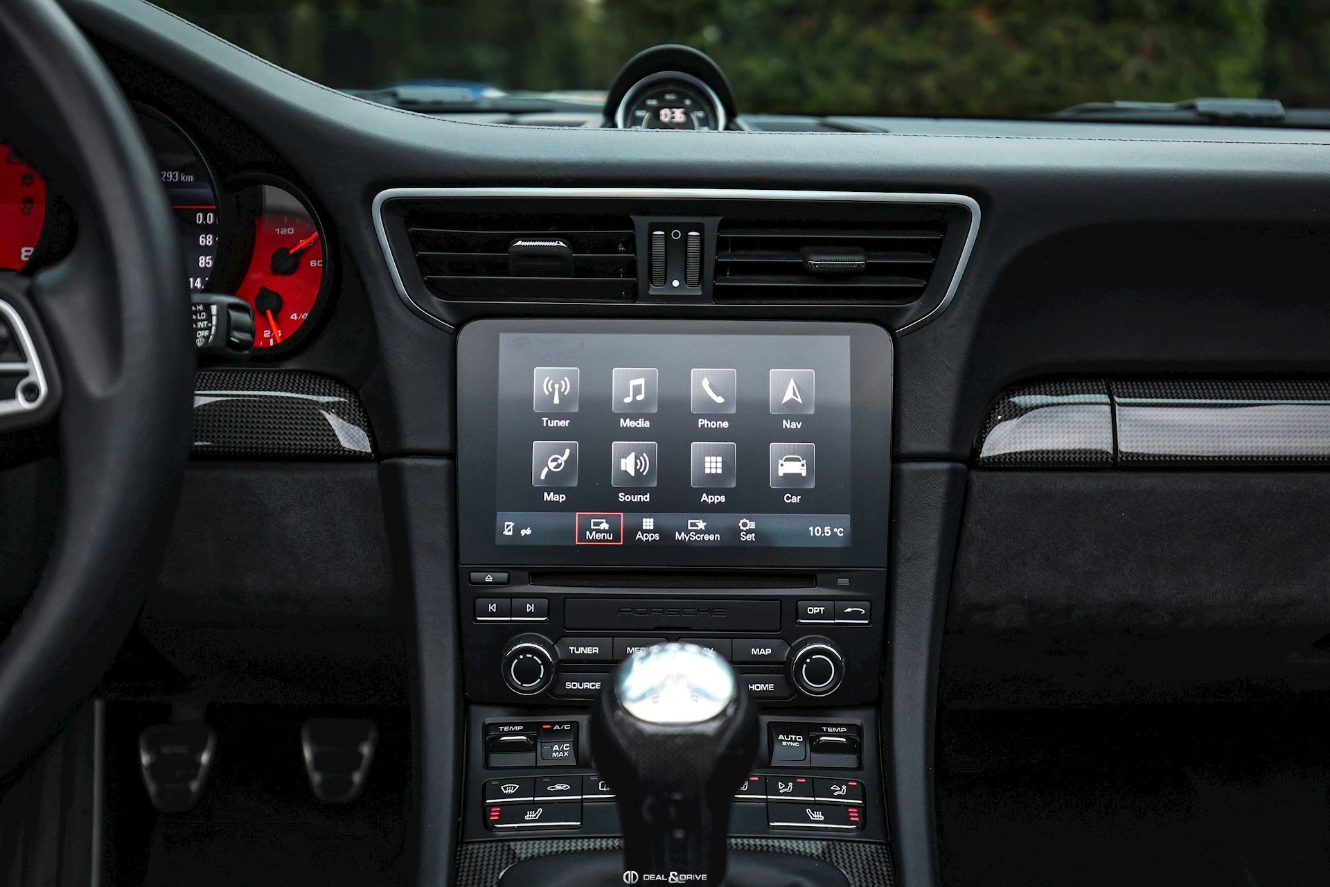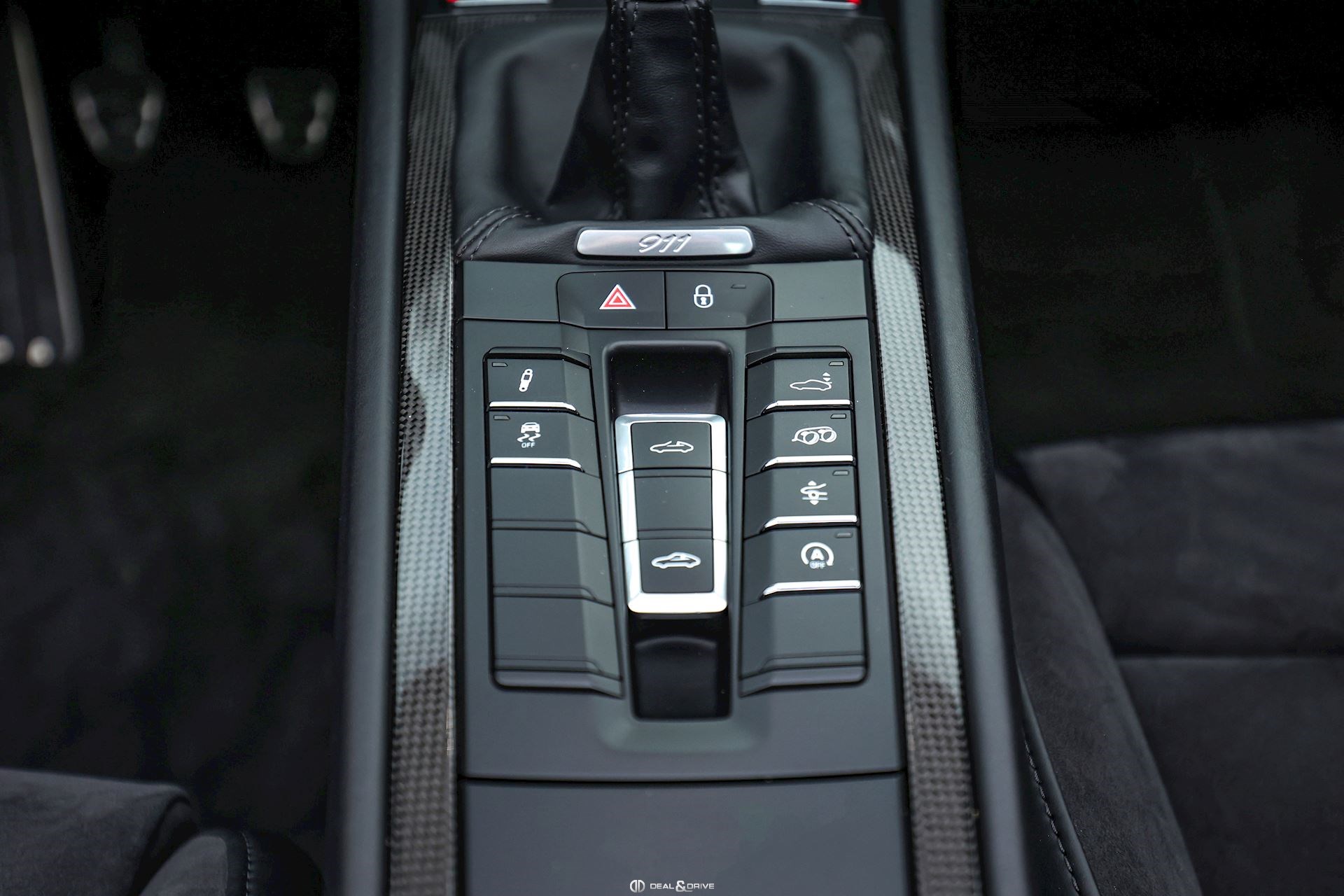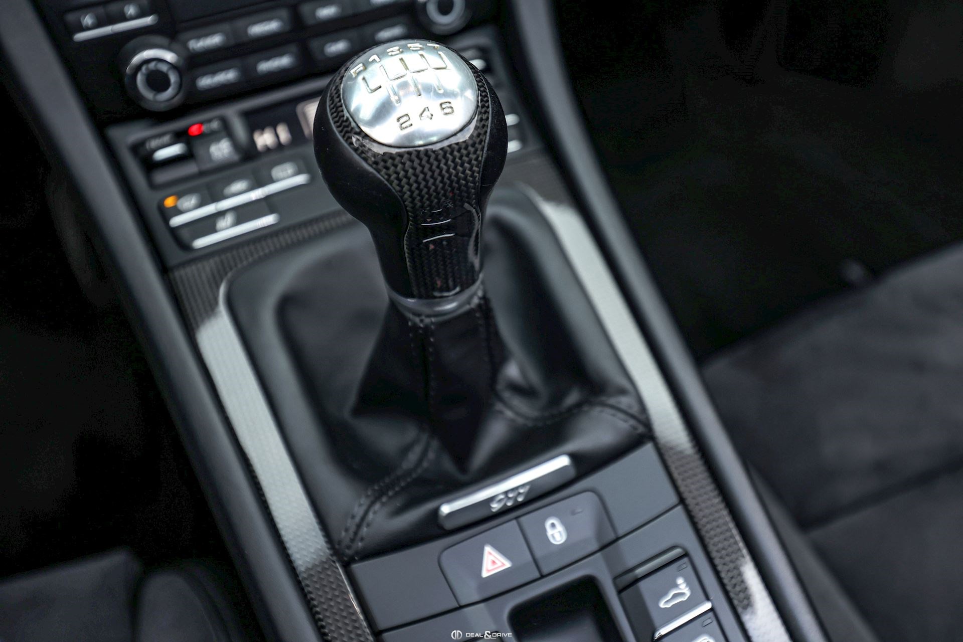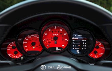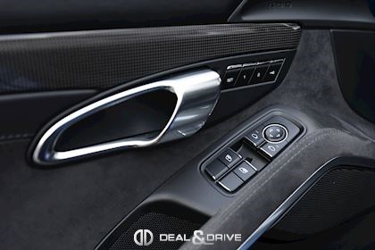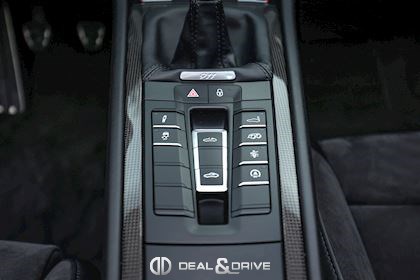 Levier de vitesse en Carbone Climatisation automatique 2 zones Tapis de sol PORSCHE Filet de rangement Fonds de compteur en Rouge Indien Seuils de porte en Aluminium avec désignation du modèle Couvercle de l'accoudoir central en Alcantara avec écusson Porsche