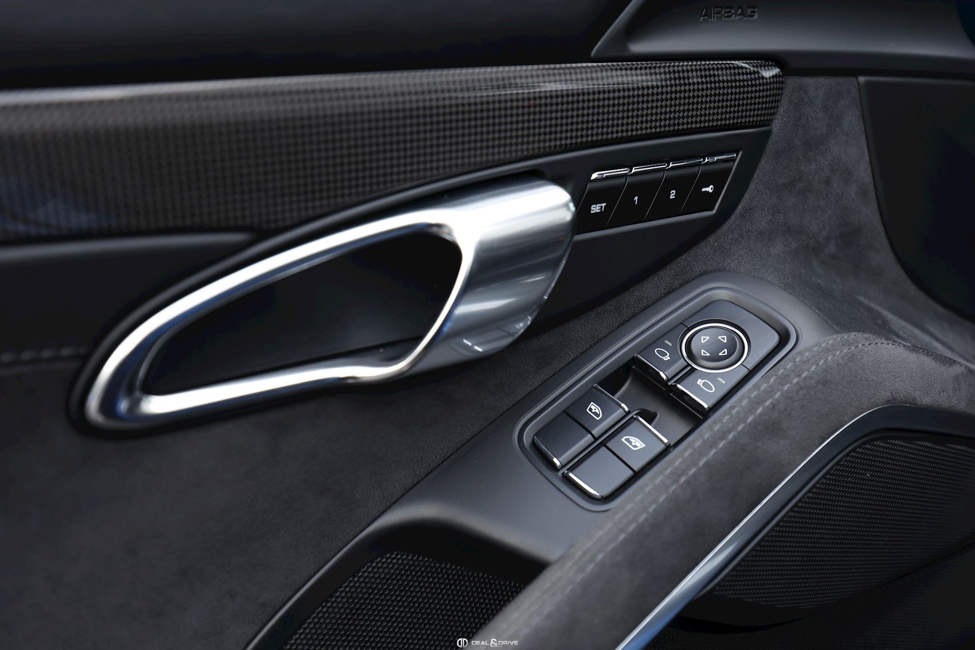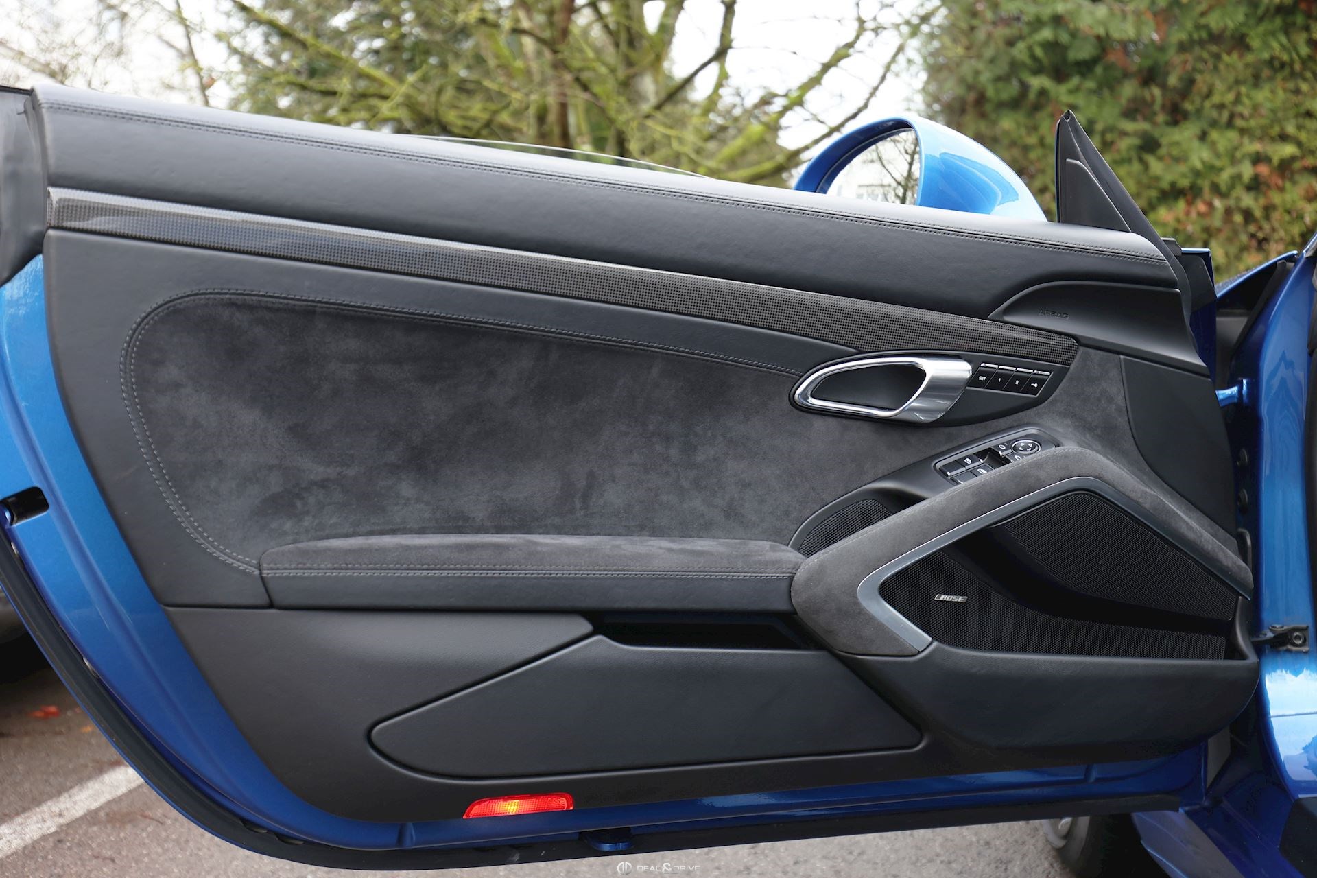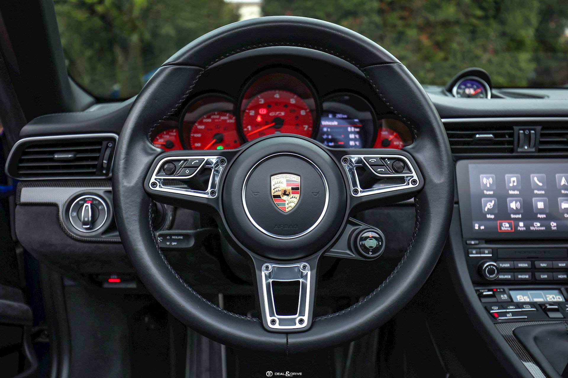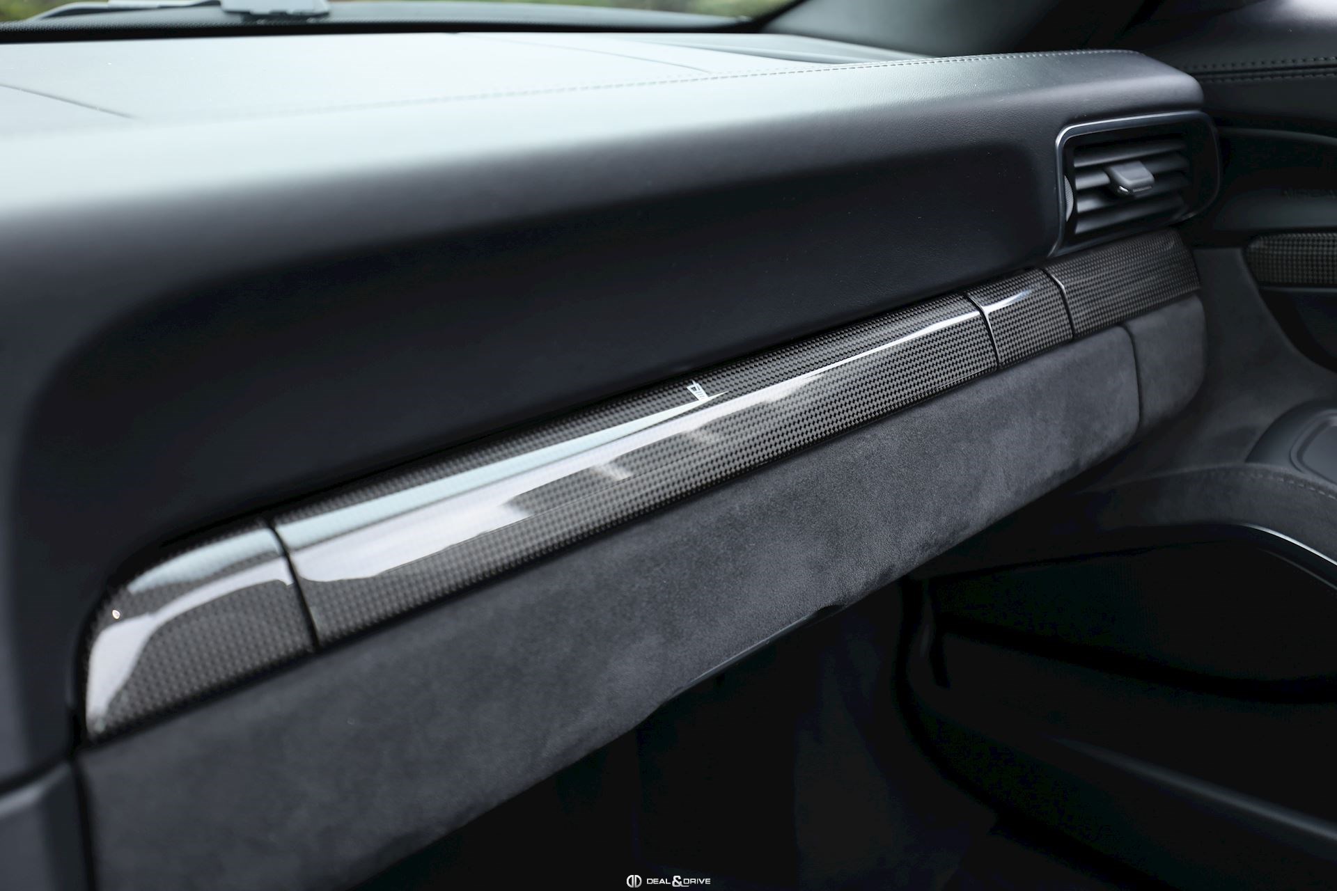 Levier de vitesse en Carbone Climatisation automatique 2 zones Tapis de sol PORSCHE Filet de rangement Fonds de compteur en Rouge Indien Seuils de porte en Aluminium avec désignation du modèle Couvercle de l'accoudoir central en Alcantara avec écusson Porsche