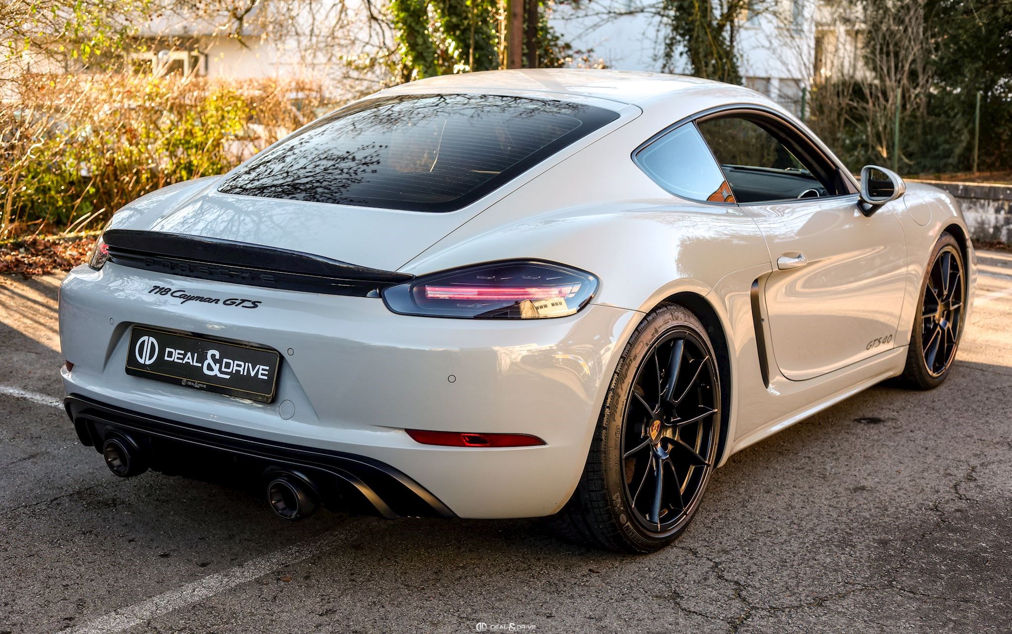 EXTÉRIEUR Jantes alliage léger 718 Sport 20’’ en Noir satin Étriers de frein en Noir Caches moyeux Porsche en couleur Contours des vitres latérales en Noir Inscription « GTS 4.0 » sur les portes en Noir Monogramme Porsche et désignation du modèle en Noir Satin Vitrage arrière surteinté Bouchon de réservoir en AluDesig – Porsche Exclusive Manufaktur Pare-brise teinté dégradé