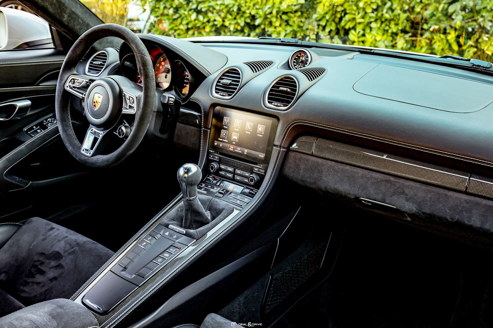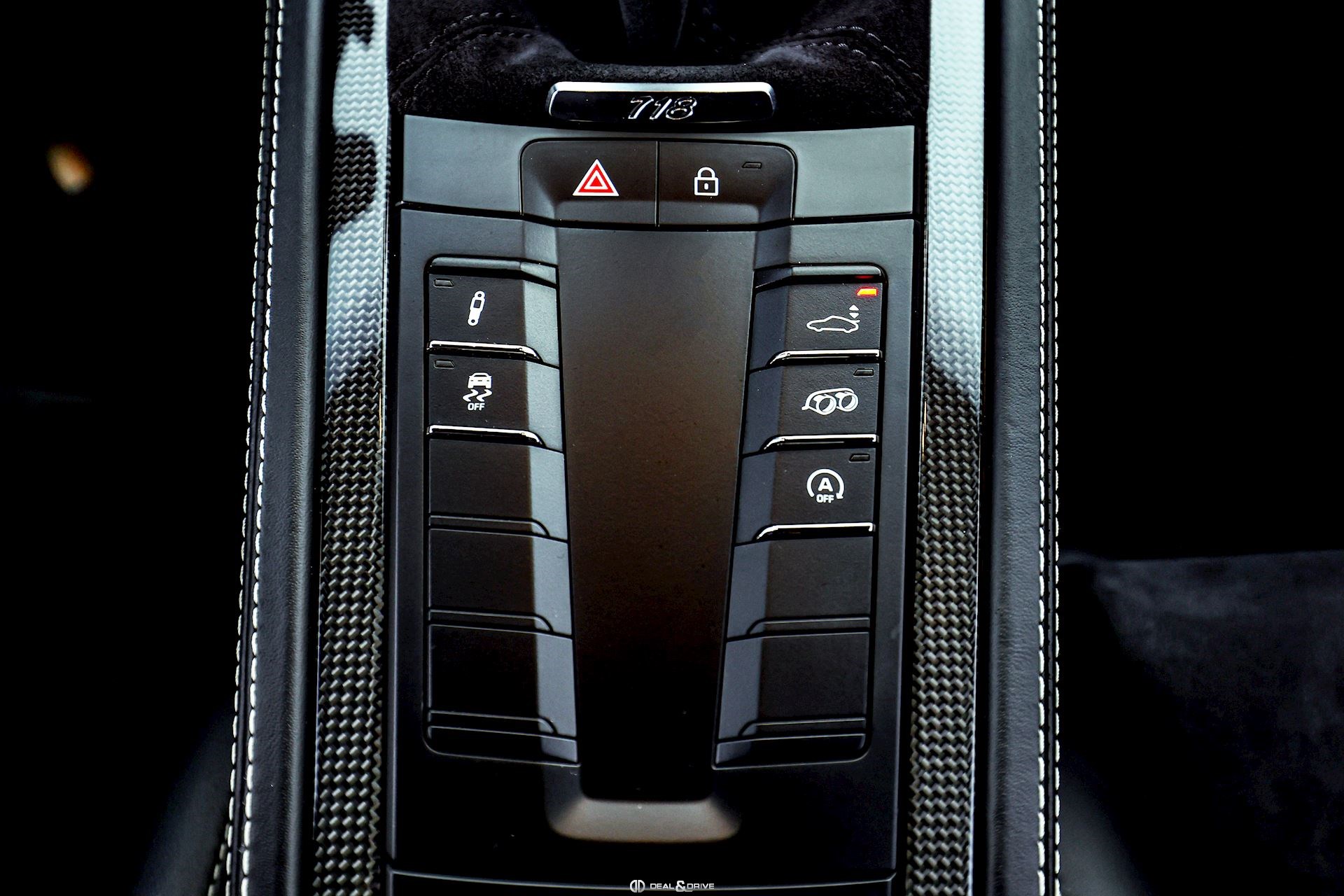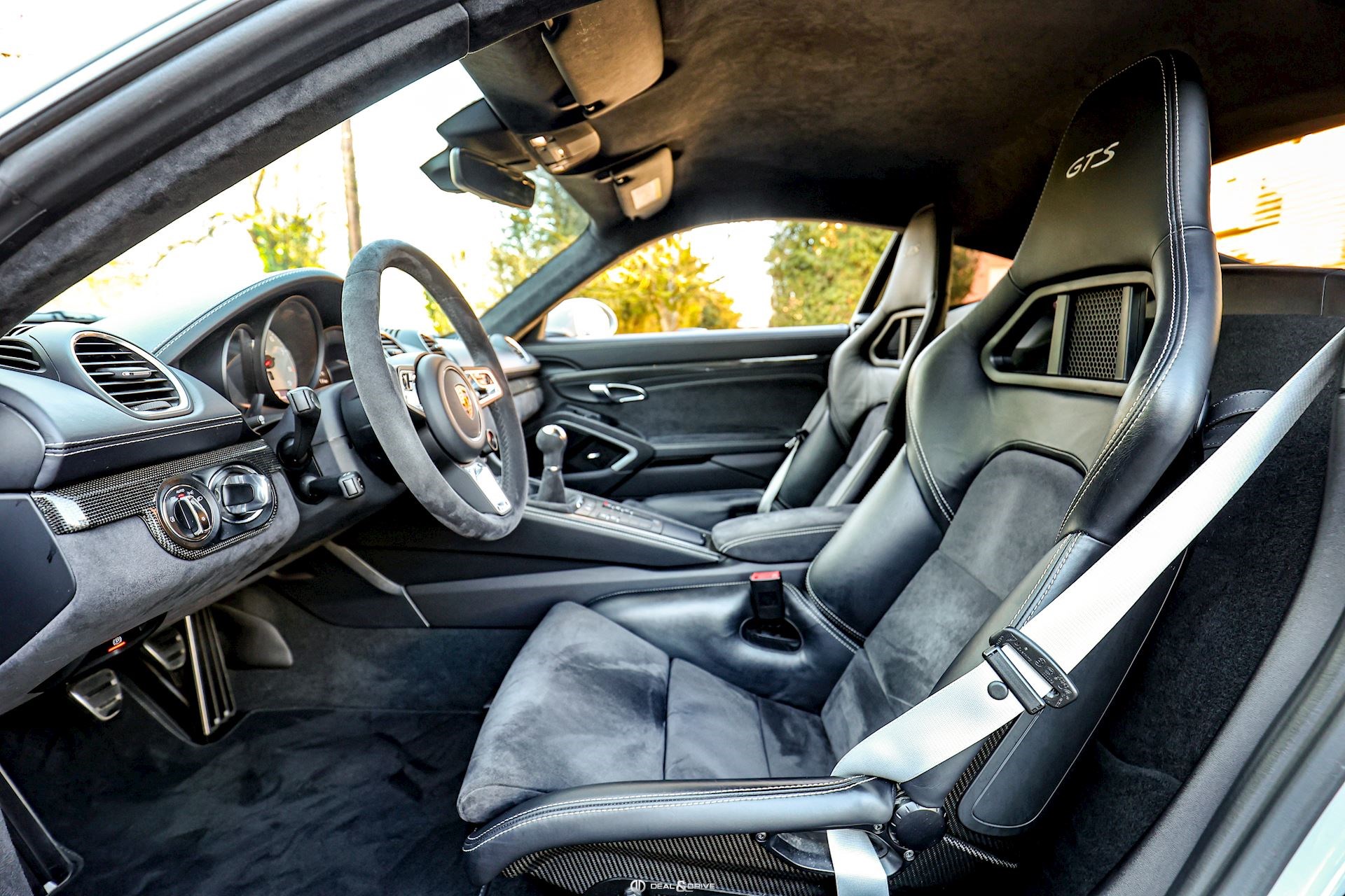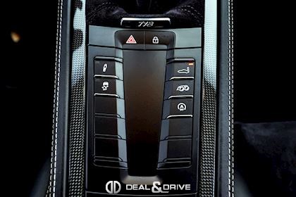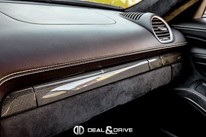 INTÉRIEUR Inserts en Carbone Sièges baquets Sport en Carbone Sièges avant chauffants Volant GT Sport en Race-Tex, multifonctions Volant chauffant Plafonnier en Race-Tex Levier de vitesse en Race-Tex Climatisation automatique 2 zones Filet de rangement dans la console centrale Logo Porsche sur l’accoudoir central en Alcantara – Porsche Exclusive Manufaktur Seuils de porte en Carbone, éclairés avec inscription « CAYMAN GTS » Tapis de sol PORSCHE Ceintures de sécurité en couleur