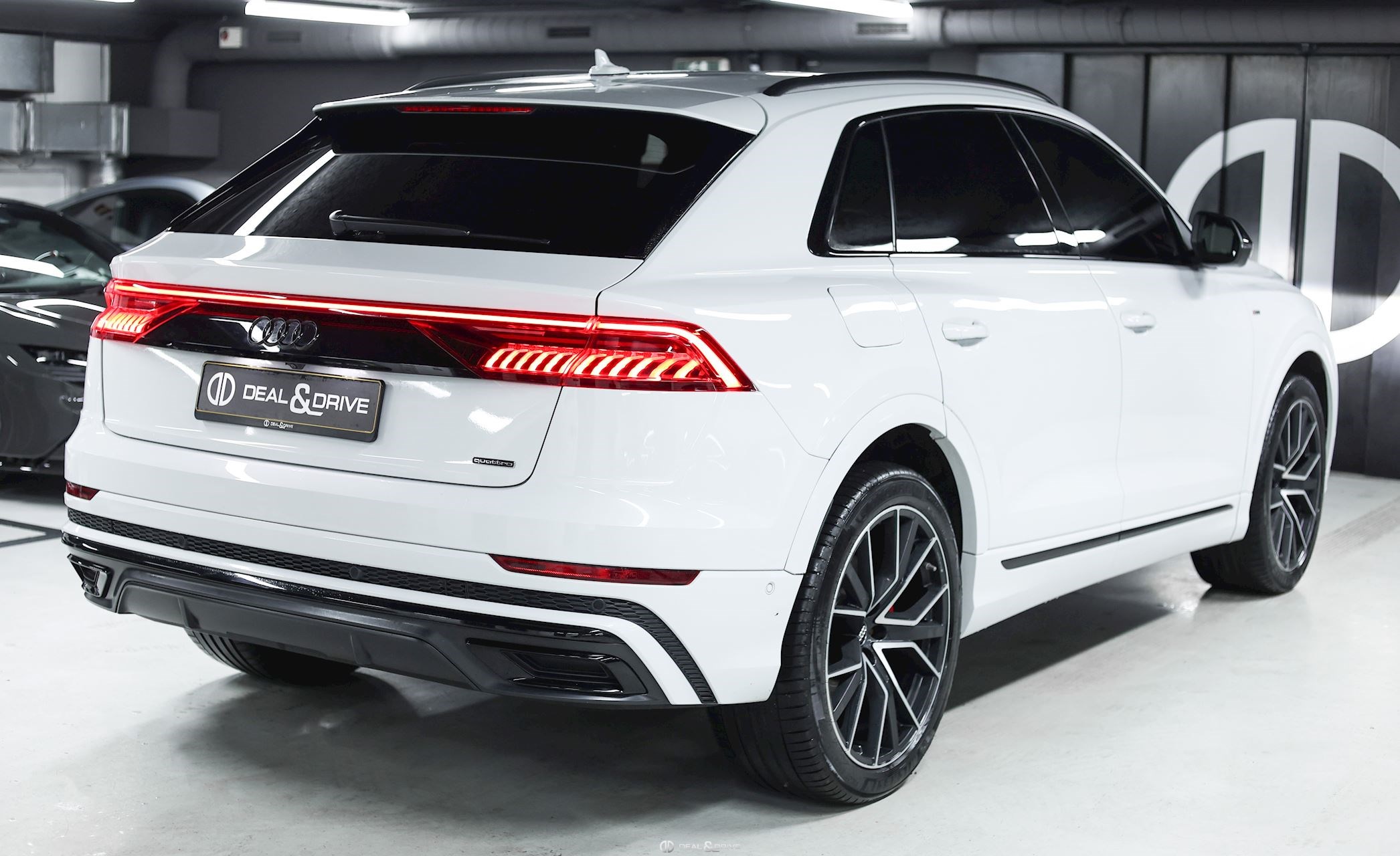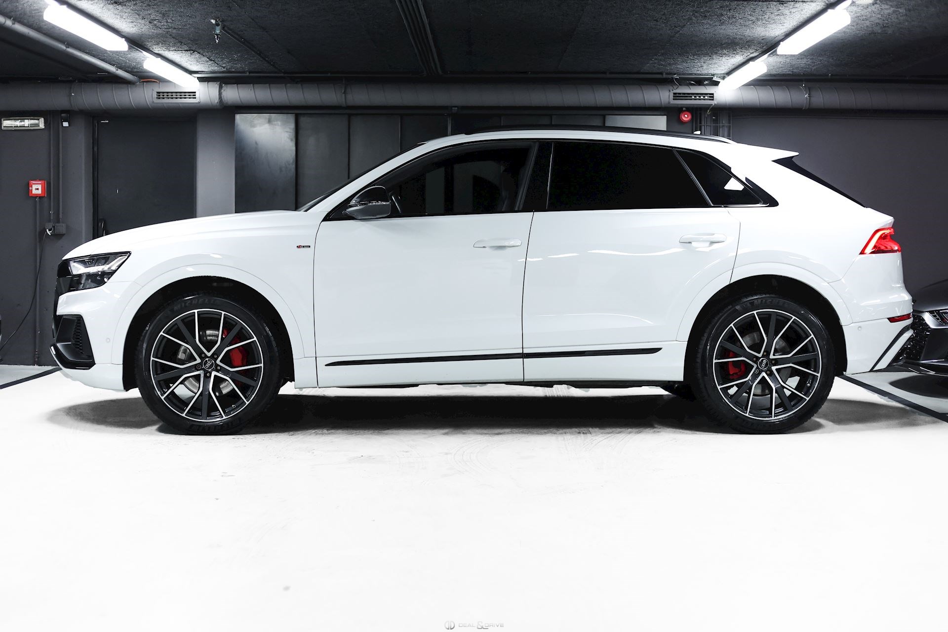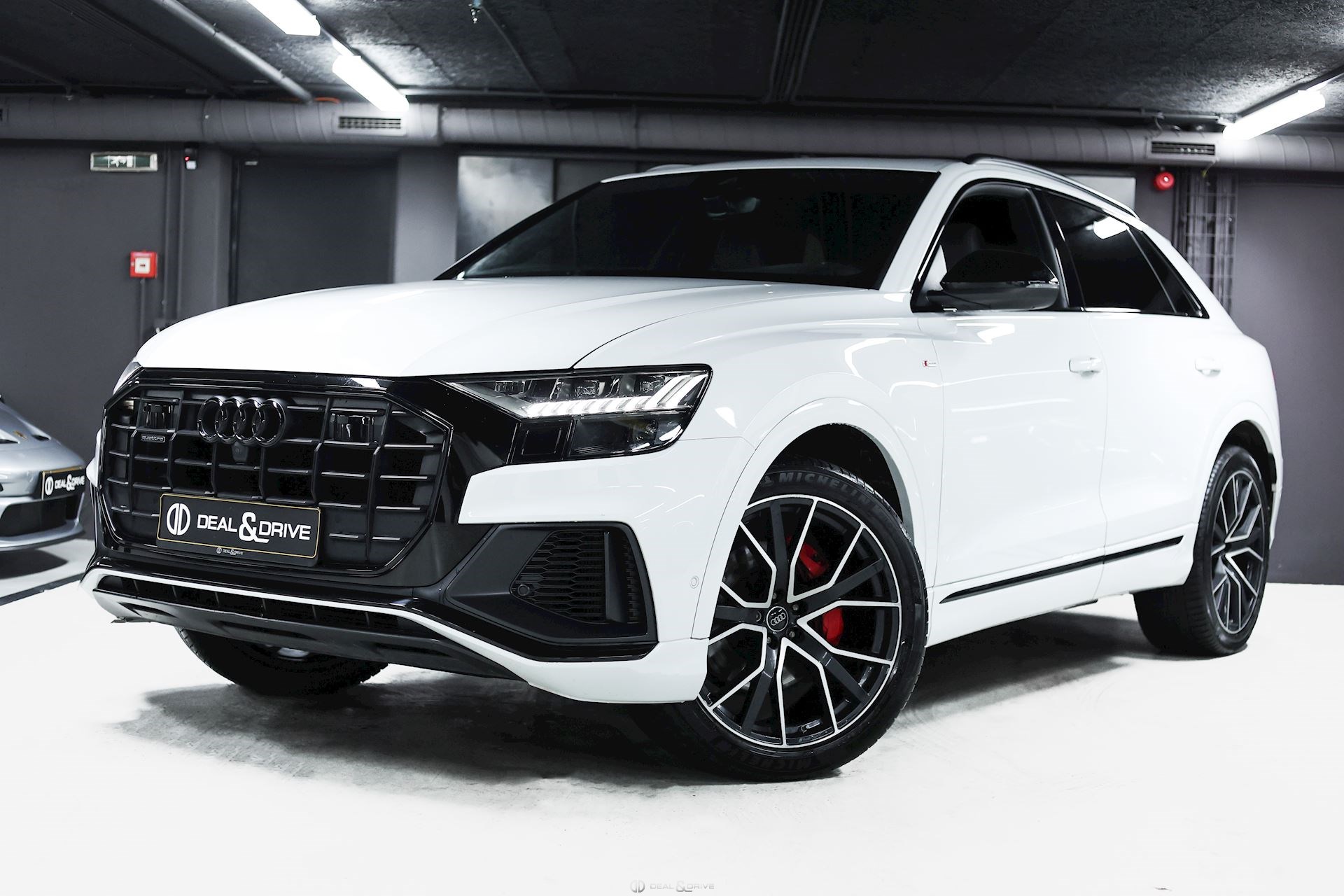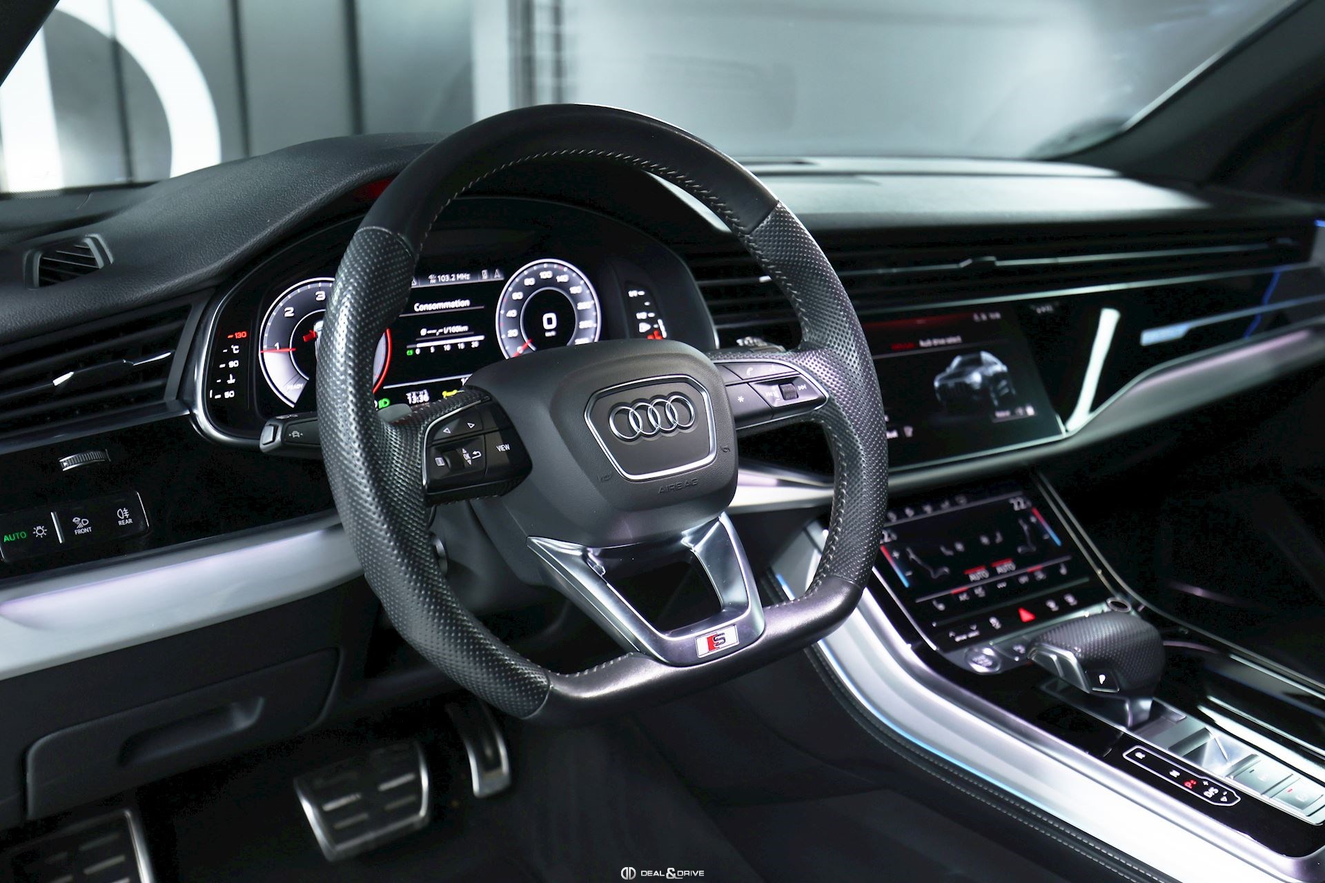 Sellerie en cuir Valcona avec piqûres en losange Système audio BANG & OLUFSEN Inserts de portes en Alcantara Feux Matrix LED HD Feux de croisement automatiques Feux de route automatiques Accoudoir central avant avec équipement Confort Audi Music Interface Audi Smartphone Interface Barres de toit en Noir Sélecteur des modes de conduite Audi Drive Select Suspension pneumatique Climatisation automatique 4 zones Clef confort Seuil de chargement en Inox Hayon électrique Volant en cuir, multifonctions Volant réglable électriquement Audi Virtual Cockpit Plus Système de contrôle de la pression des pneus Interface Bluetooth Système de commande vocale Ports USB Système de navigation Pare-soleils doubles Plafonnier Noir Jantes alliage léger 22'', 5 branches en V avec Design étoile, Anthracite Lave-phares Rideaux pare-soleils à l'arrière Coques des rétroviseurs extérieurs en Noir Sièges Sport Plus Sièges avant électriques Sièges avant avec fonction mémoire Appuie-lombaires électriques Aides au stationnement avant et arrière APS Plus Camréa 360° avec Top View Vitrage arrière surteinté Toit ouvrant panoramique Toutes roues directrices Audi Phone Box Etriers de frein en Rouge