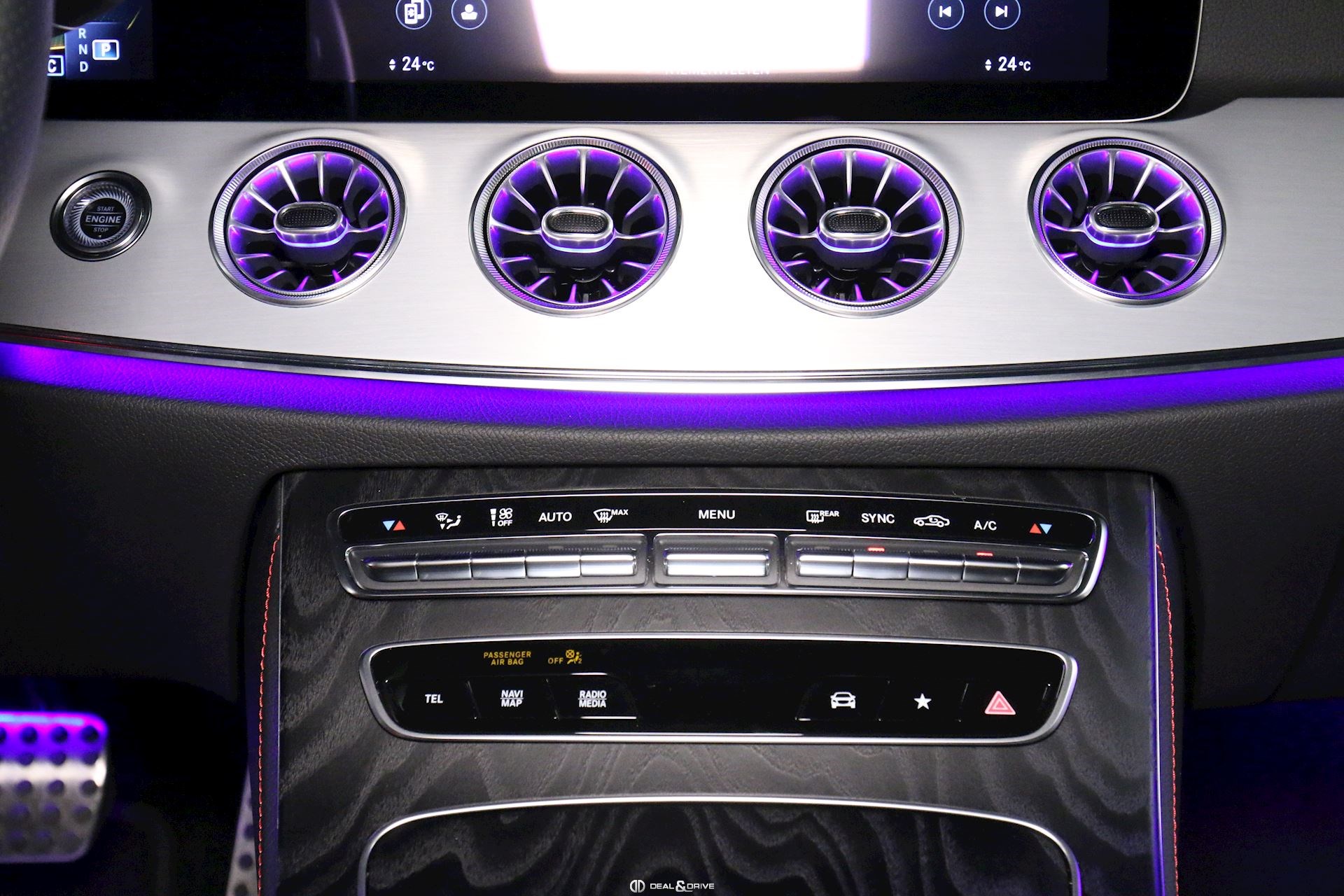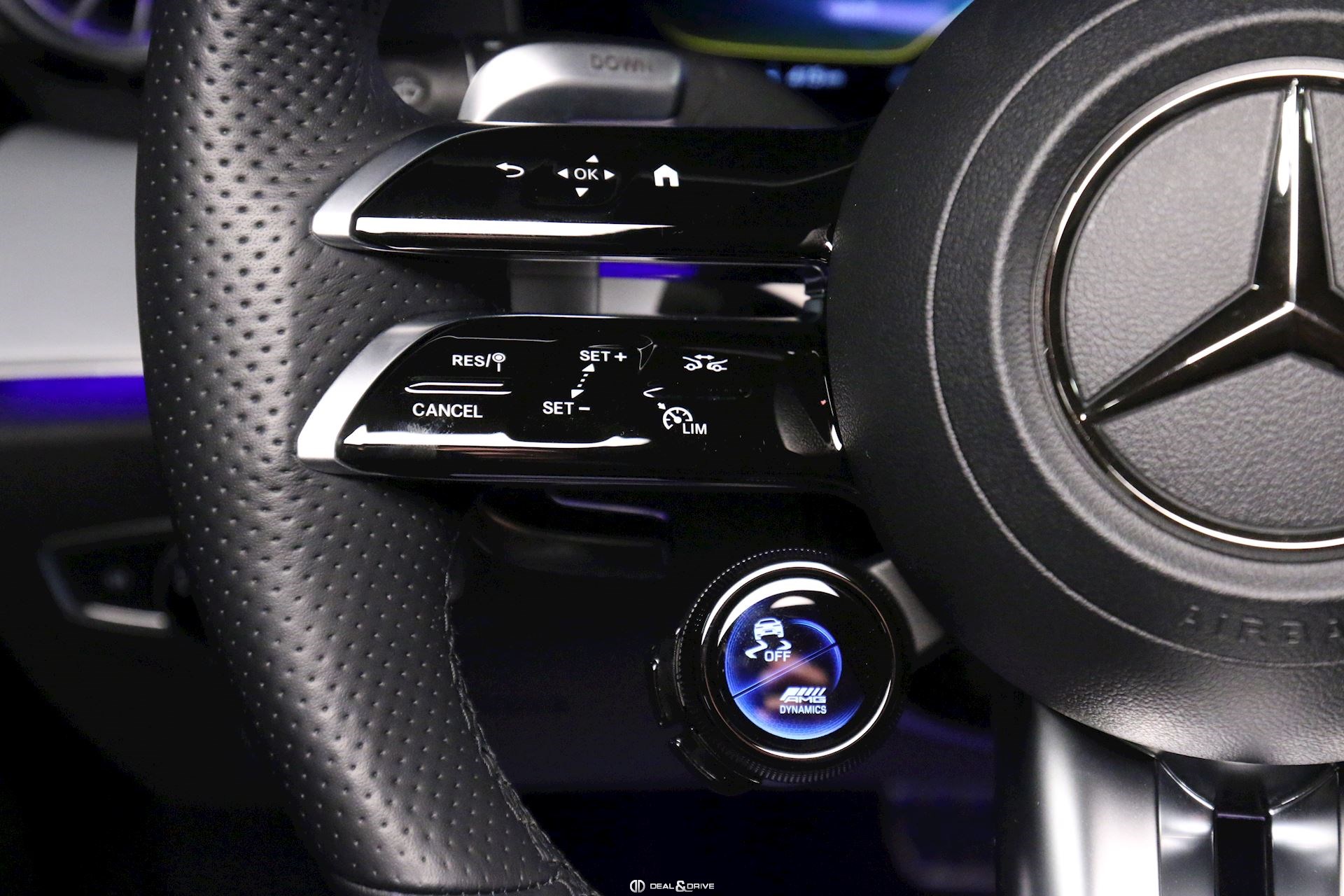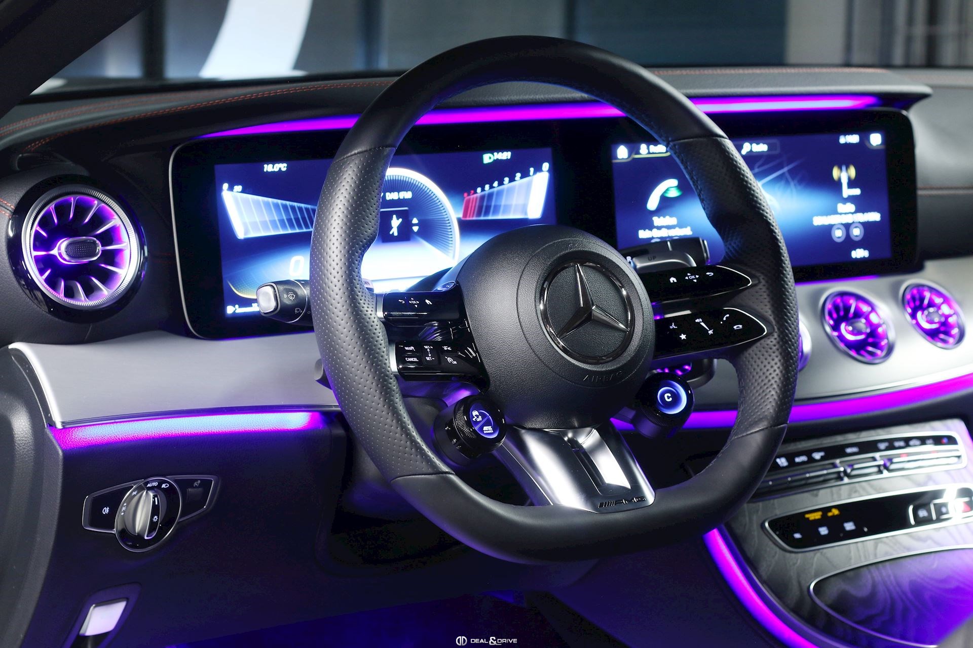 INTÉRIEUR Sièges avant électriques Sièges avant chauffants Volant AMG Performance en cuir Nappa, multifonctions Volant réglable électriquement Plafonnier Noir Appuie-lombaires électriques Console centrale Bois précieux Frêne, Noir Inserts en Aluminium Tapis de sol AMG Climatisation automatique Thermatic 2 zones