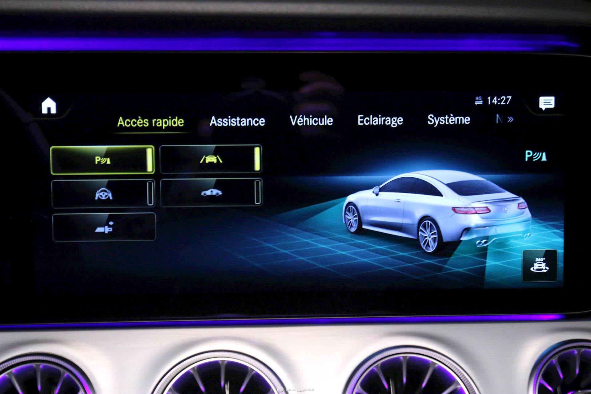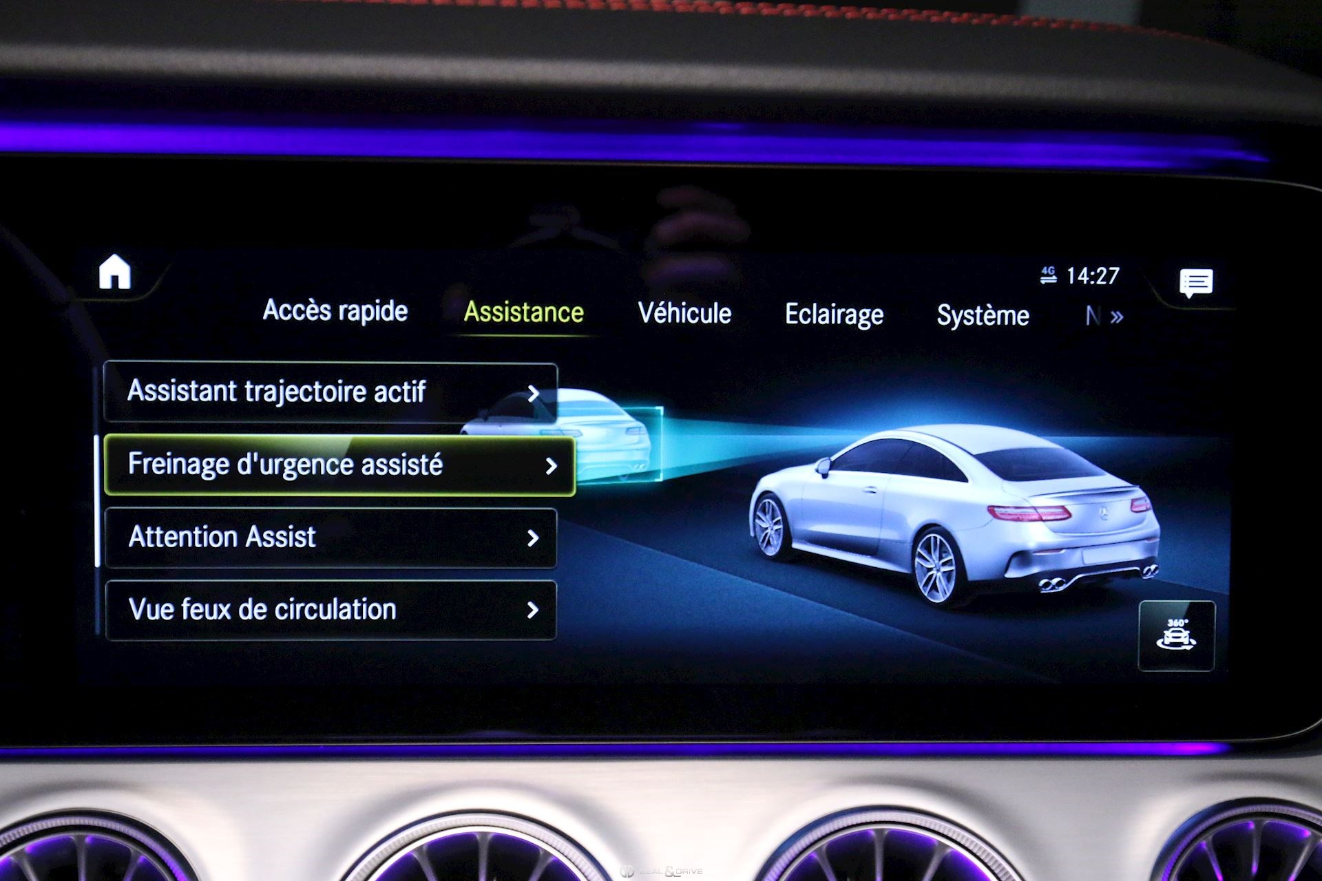 PACK Pack assistance de conduite Détecteurs d’angles morts dans les rétroviseurs extérieurs Régulateur de vitesse adaptatif Distronic Plus avec fonction Stop&Go Assistant de freinage, actif Assistant maintien dans trajectoire, actif