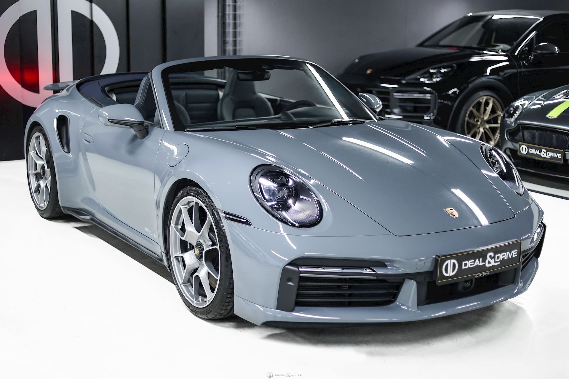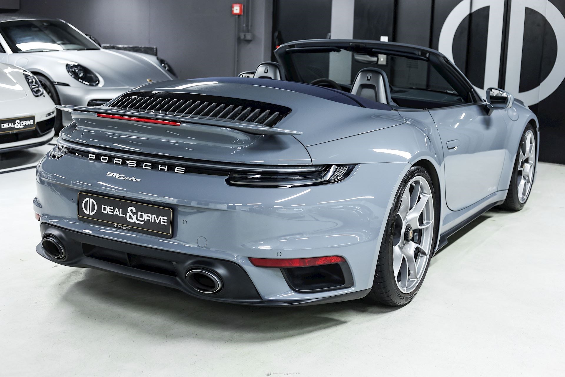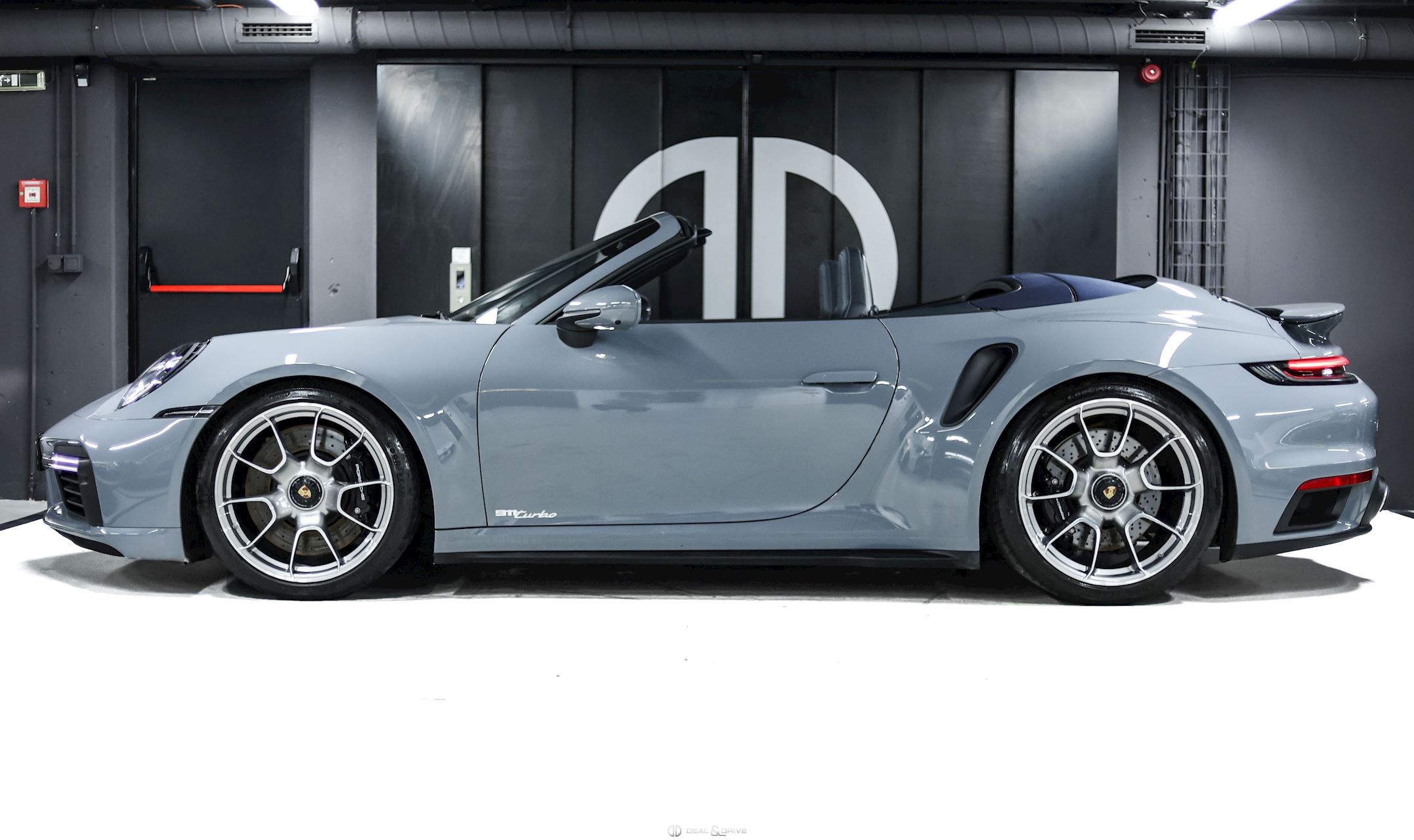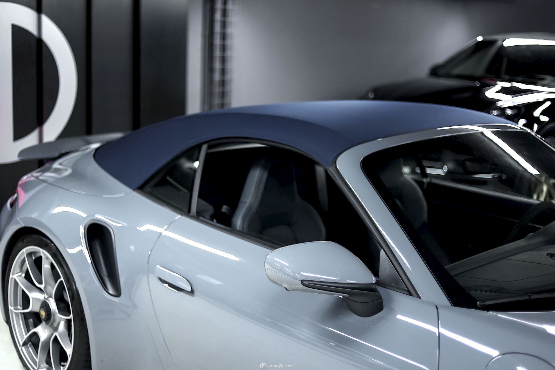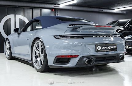 EXTÉRIEUR Déflecteur d'air électrique Désignation du modèle sur les portes en Argent « 911 Turbo » Jantes 20’’ / 21’’ 911 Turbo S Exclusive Design – Porsche Exclusive Manufaktur Étriers de frein en Noir Caches moyeux Porsche en couleur Capote en couleur Bleu Rétroviseurs extérieurs électriques Rétroviseurs extérieurs rabattables électriquement