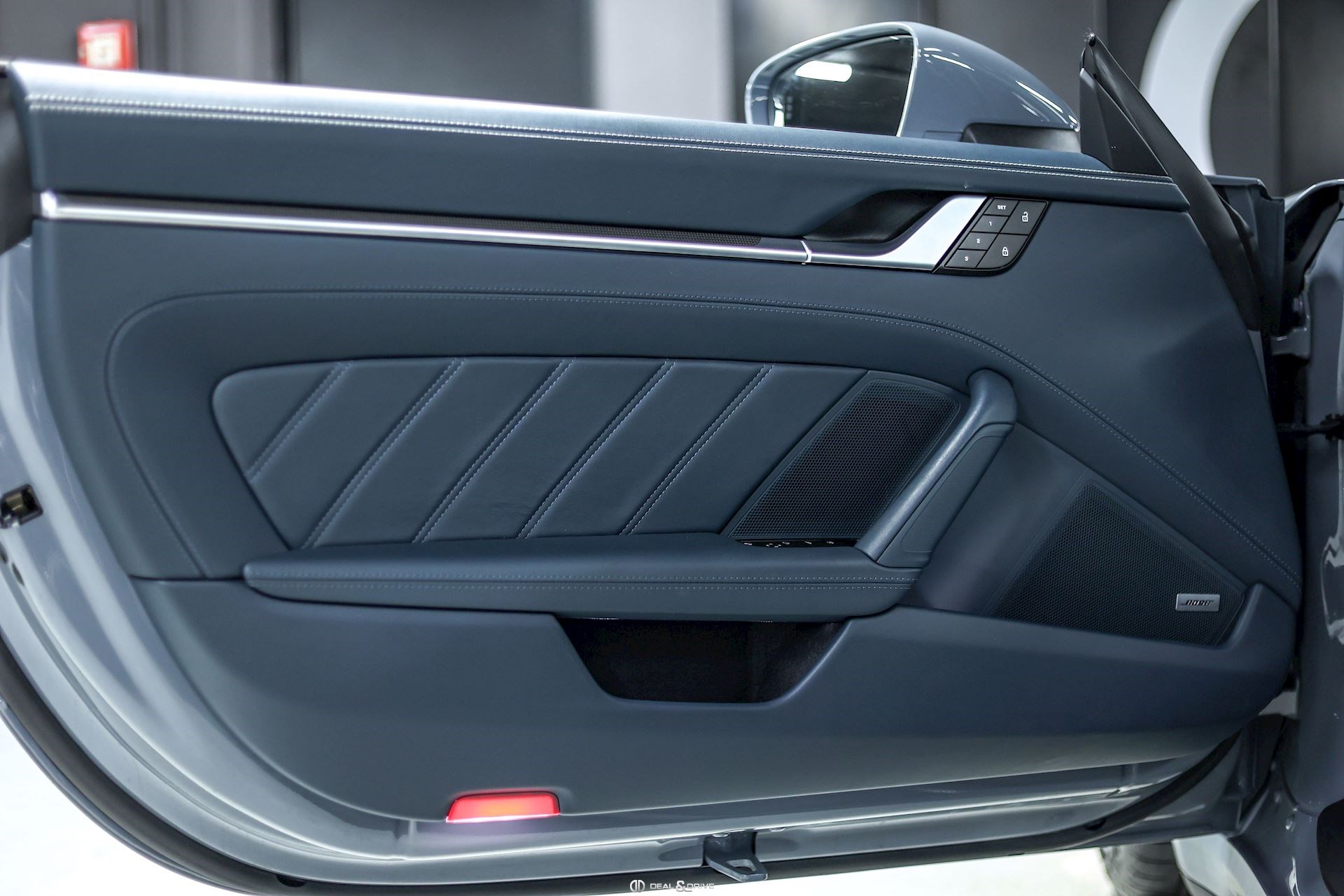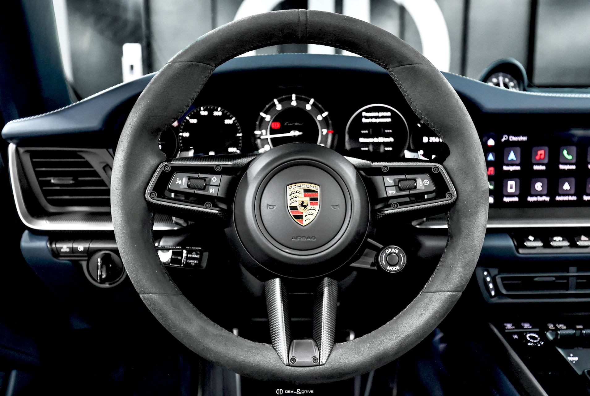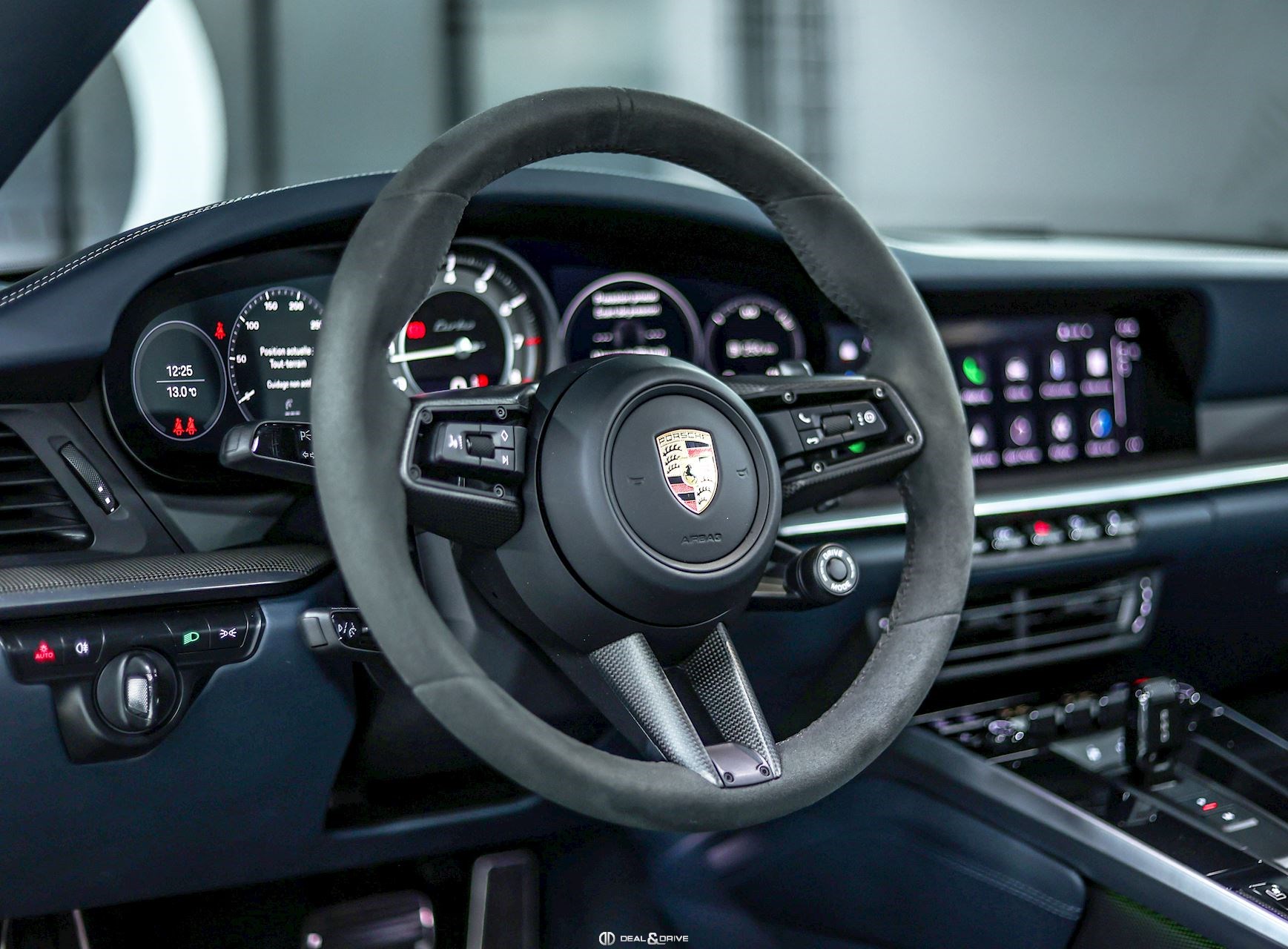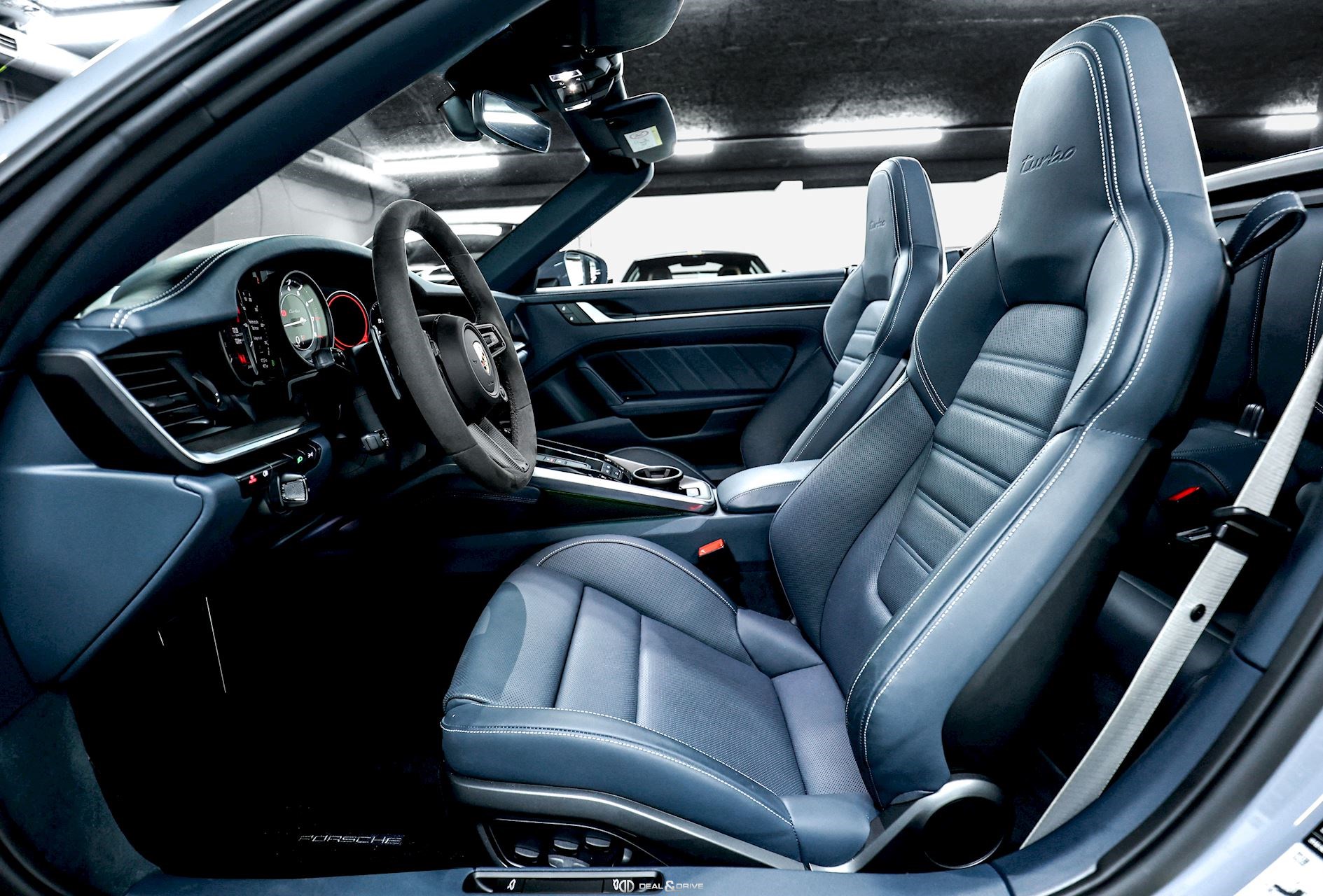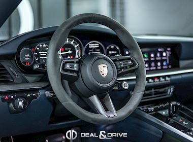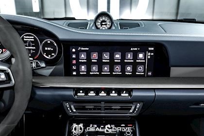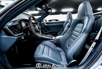 INTÉRIEUR Intérieur tout cuir Bleu Graphite avec coutures décoratives en Craie Volant Sport GT en Race-Tex avec incrustations en Carbone satiné, multifonctions Volant chauffant Volant réglable électriquement Sièges Sport Plus adaptatifs en 18 positions Siège conducteur avec fonction mémoire Sièges avant chauffants Sièges avant ventilés Appuie-lombaires électriques Climatisation automatique 2 zones Isofix sur siège passager Seuils de porte en Carbone avec désignation du modèle, éclairés Tapis de sol Porsche Pare-soleils en cuir