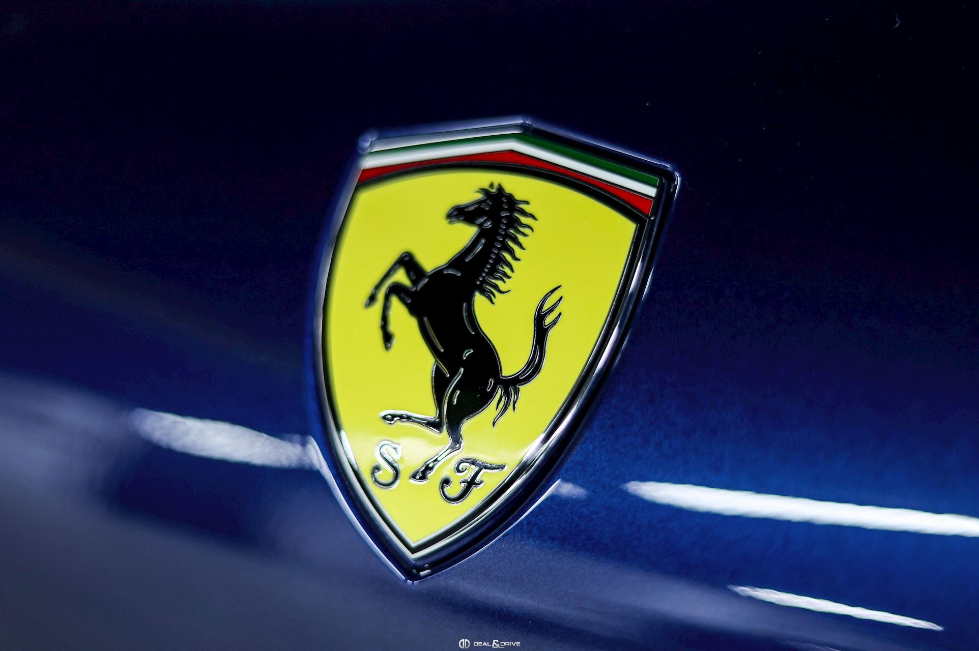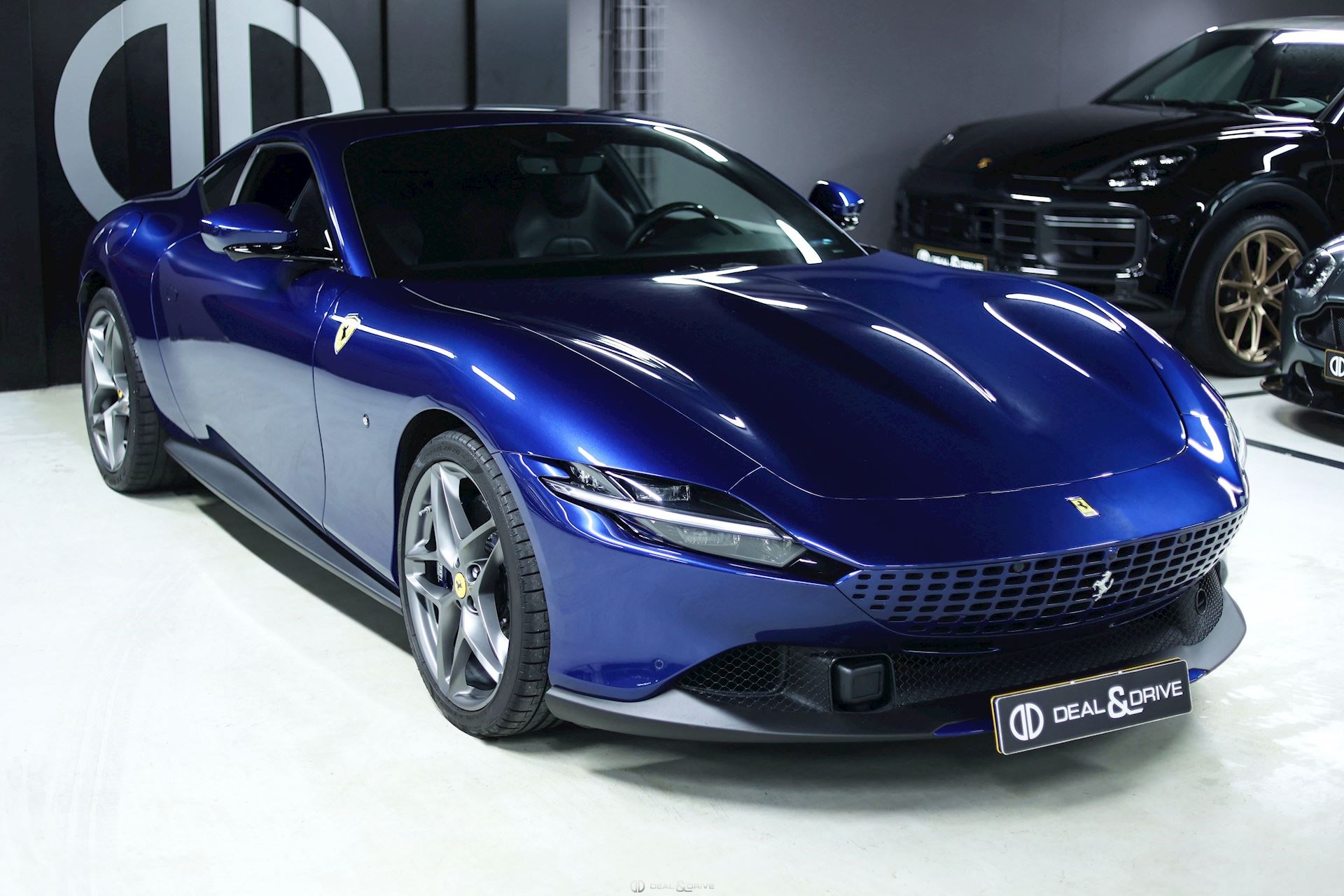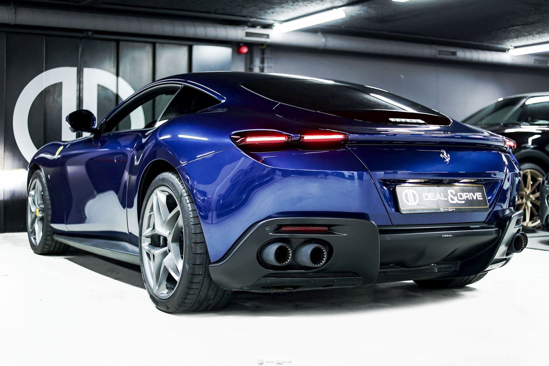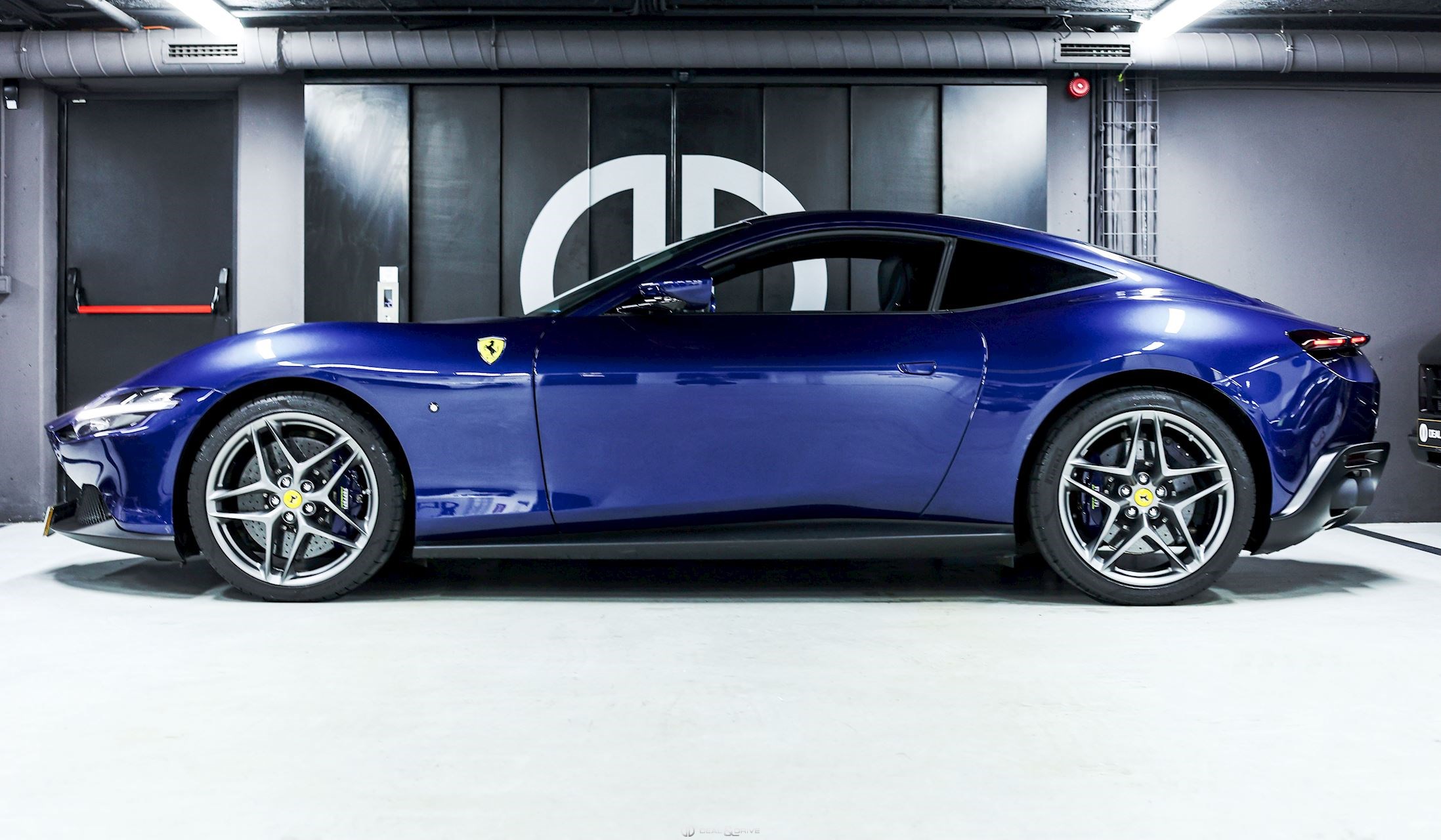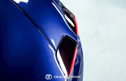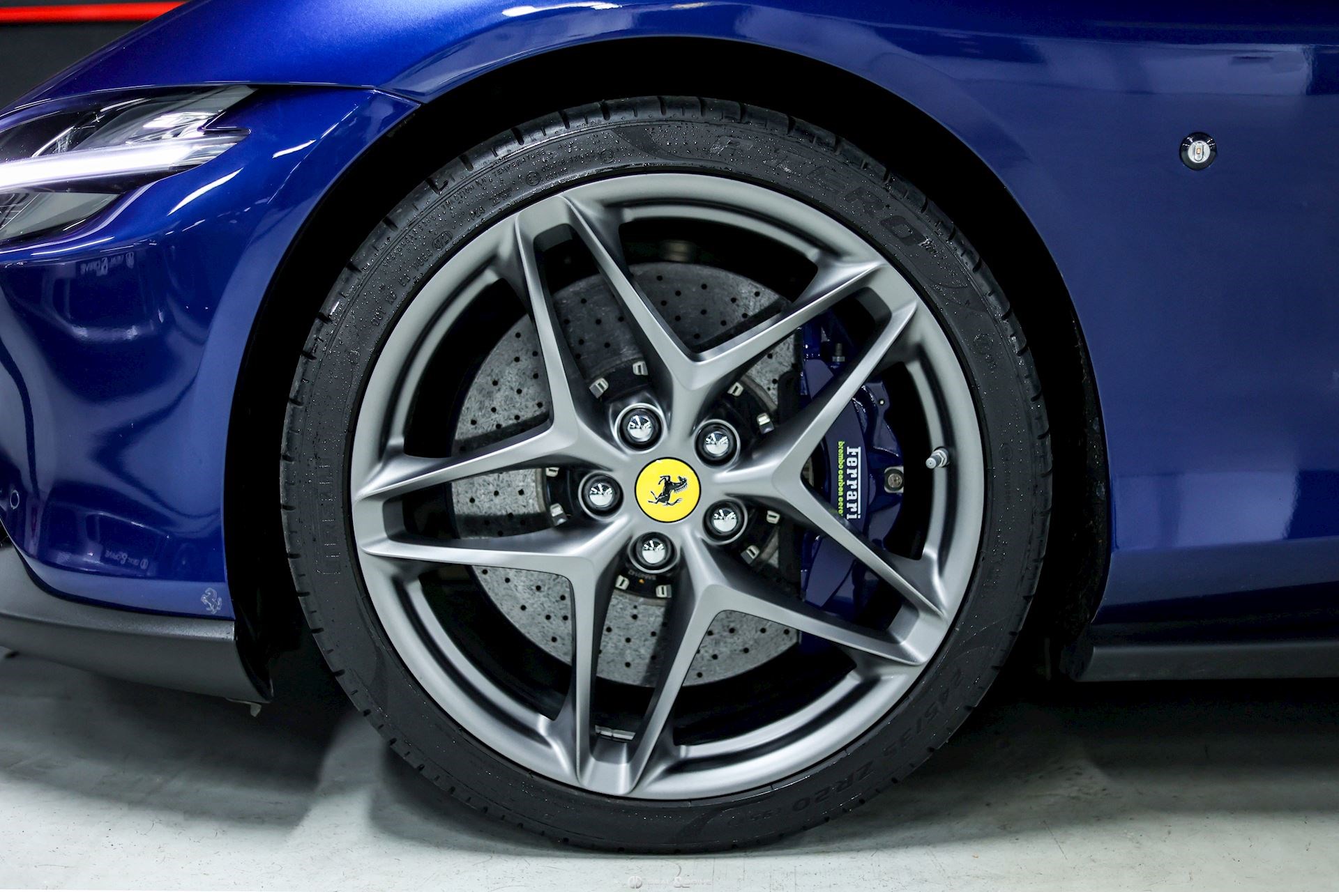EXTÉRIEUR CALC Étriers de frein en Bleu LOGO Écusson « SCUDERIA FERRARI » sur les ailes avant PRG1 Vitrage arrière surteinté RMSC Jantes 20’’ en Gris Matte