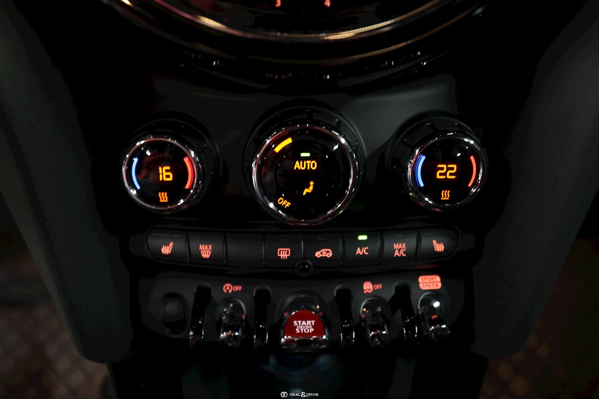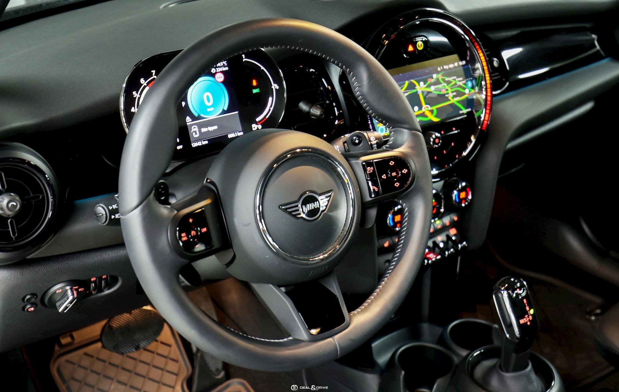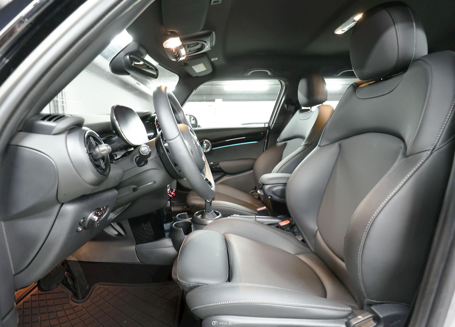 INTÉRIEUR Sellerie en simili cuir Noir Volant en cuir, multifonctions avec palettes Accoudoir central avant Climatisation automatique 2 zones Inserts intérieur Piano Black Isofix sur siège passager Tapis de sol Seuils de porte en Aluminium avec inscription « Mini Cooper S » Plafonnier en Noir
