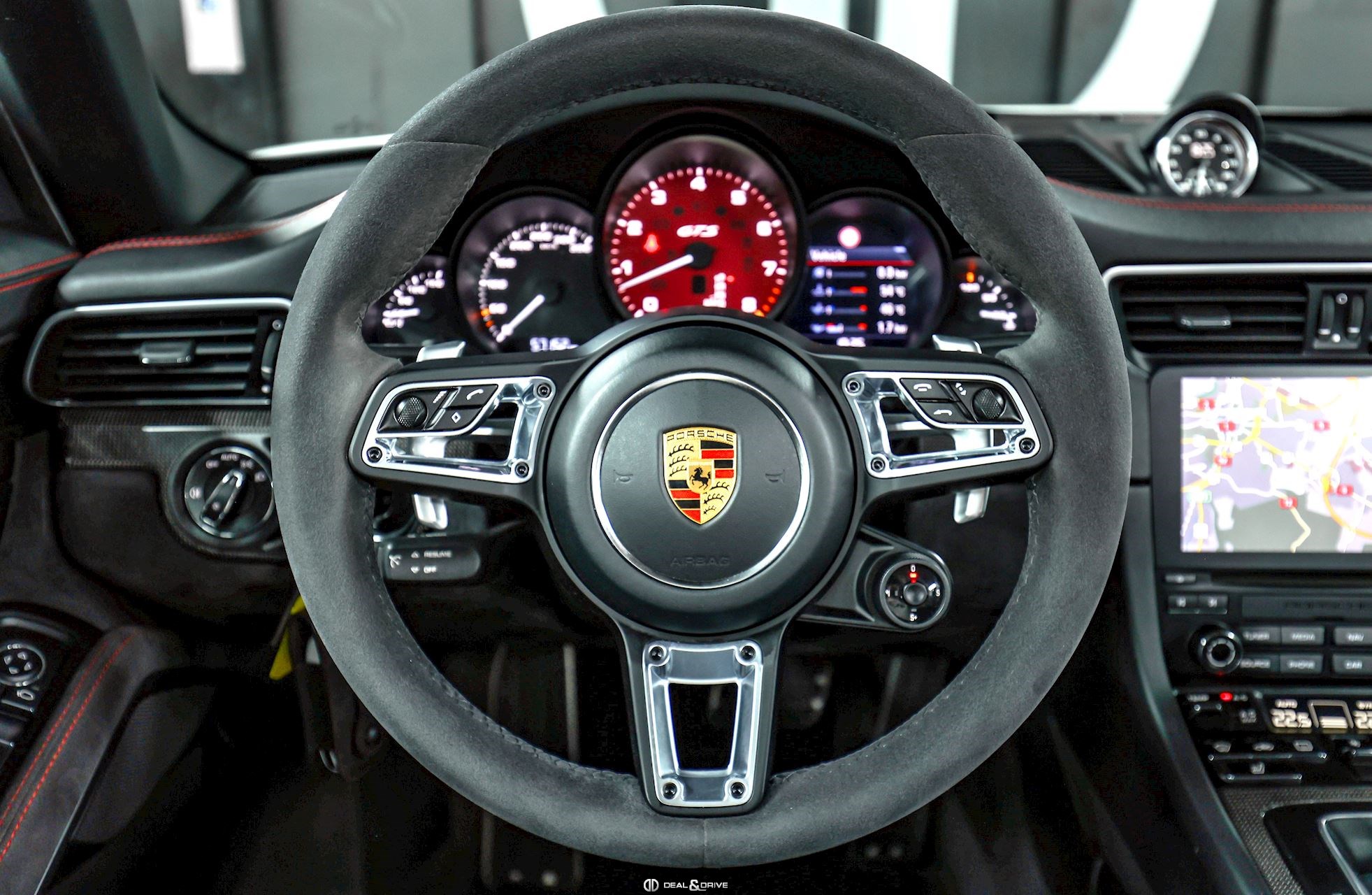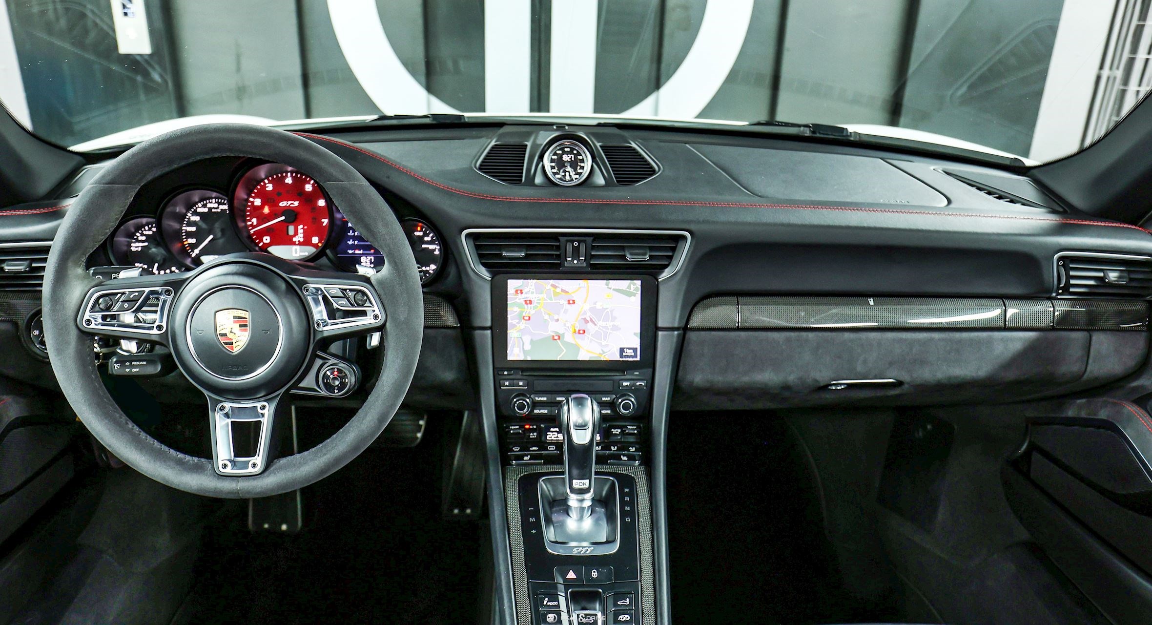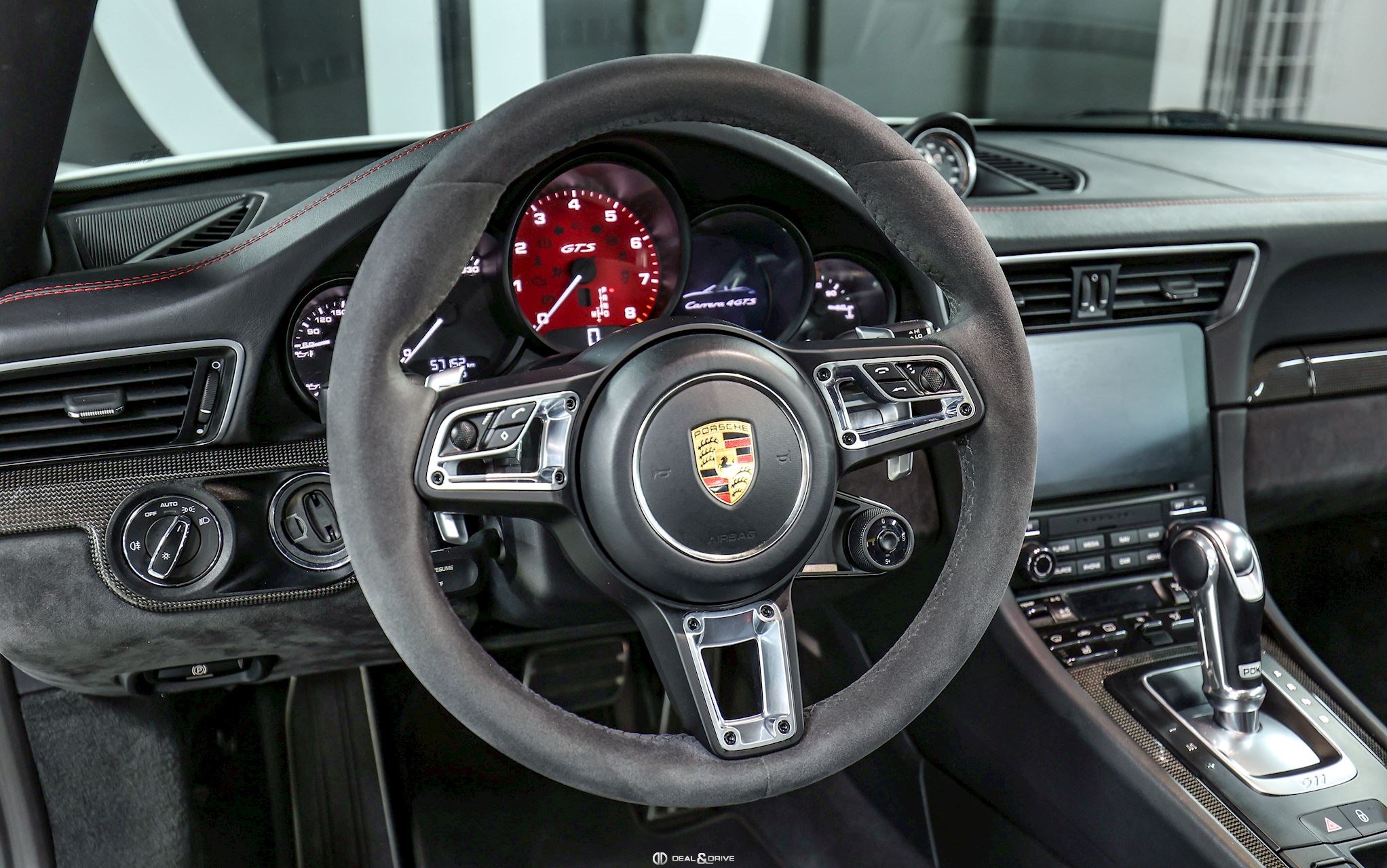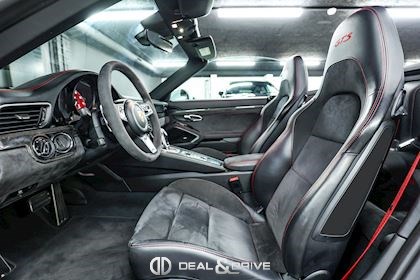 INTÉRIEUR Inserts en Carbone Sellerie en cuir et Alcantara Sièges avant Sport Plus, adaptatifs, 18 voies Sièges avant chauffants Siège conducteur avec fonction mémoire Volant en Race-Tex multifonctions Volant chauffant Volant réglable électriquement Filet de rangement dans la console centrale Levier de vitesse en Aluminium Tapis de sol Ceintures de sécurité en Rouge Seuils de porte en Aluminium avec désignation du modèle « Carrera 4 GTS »