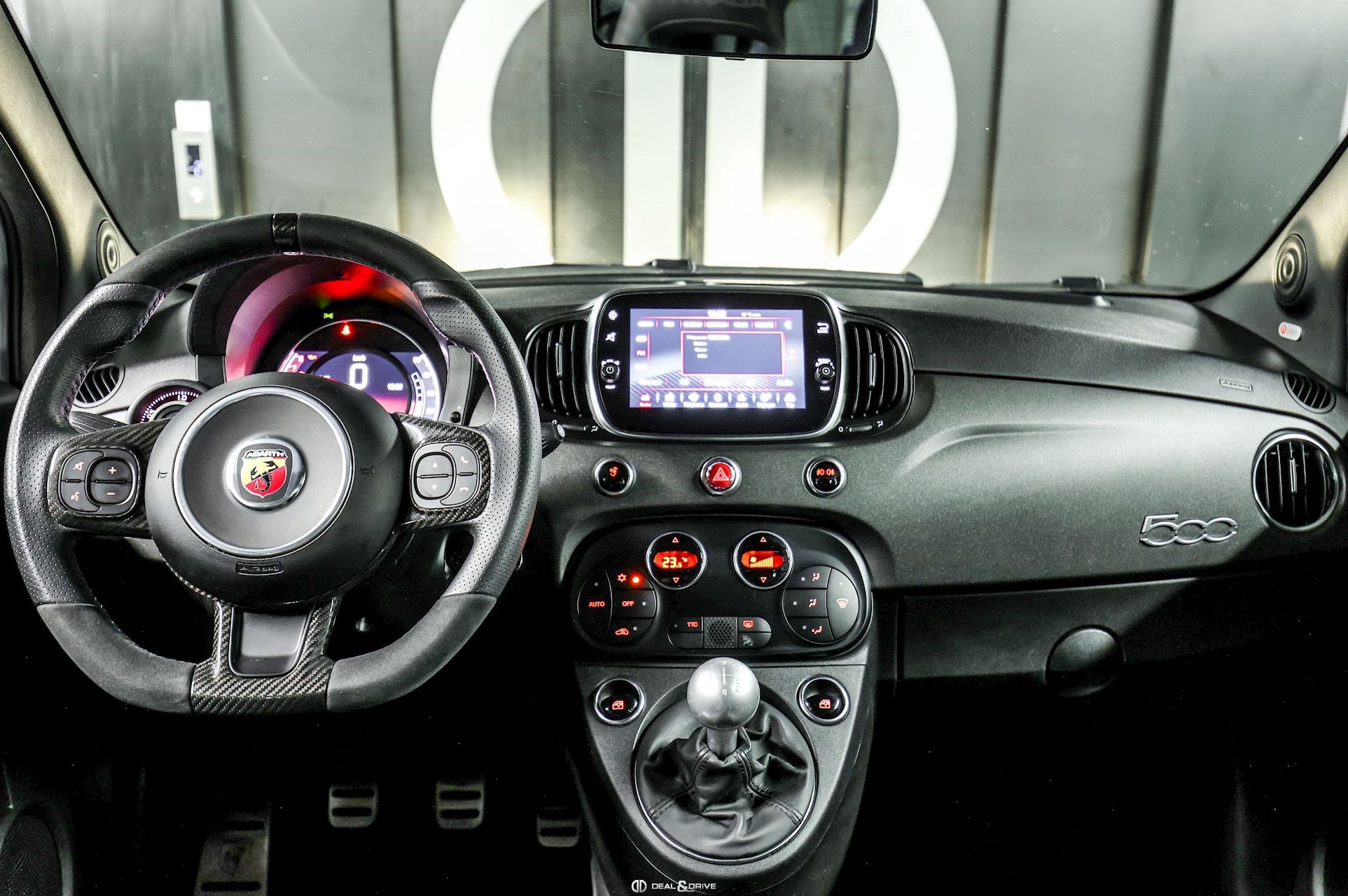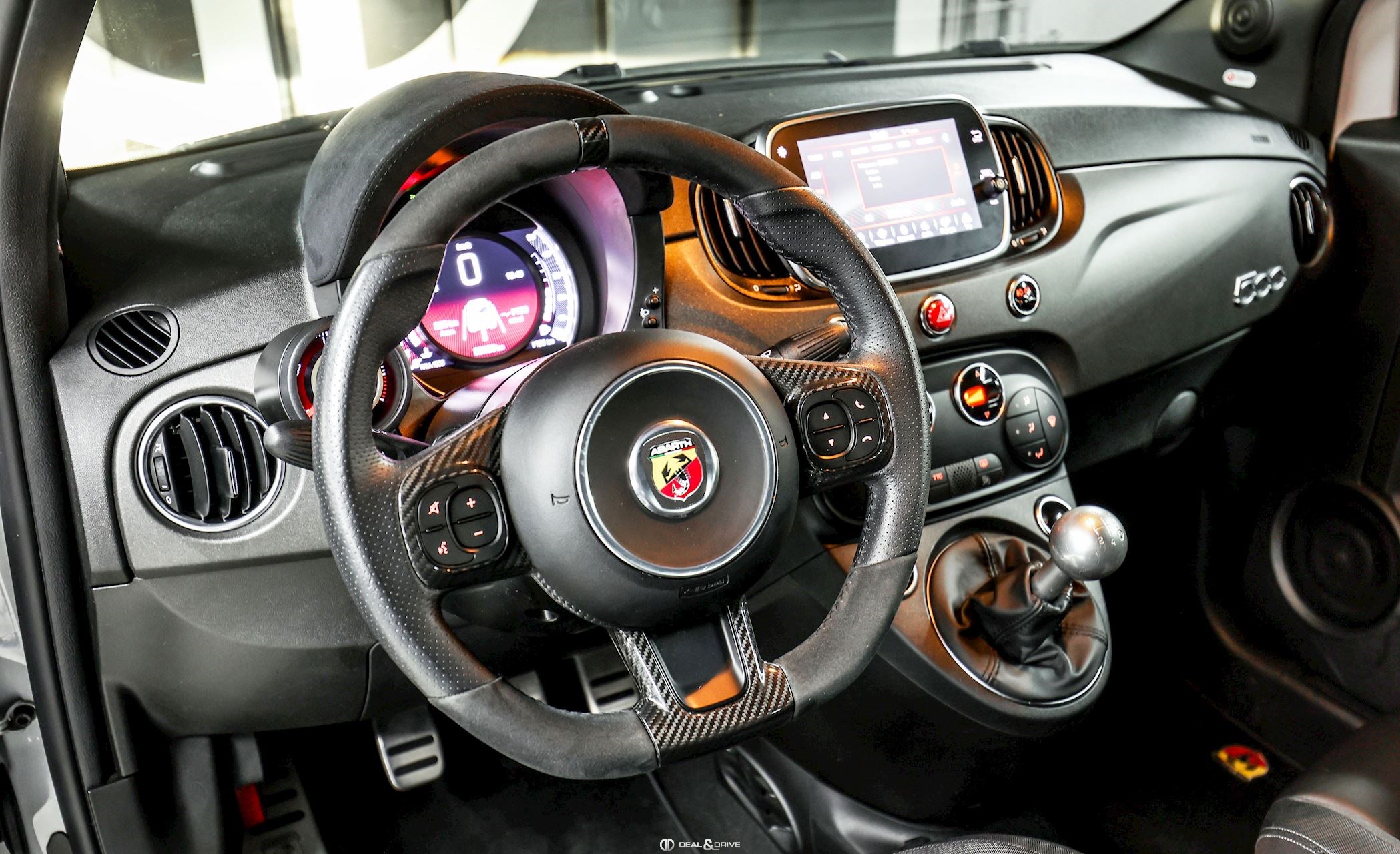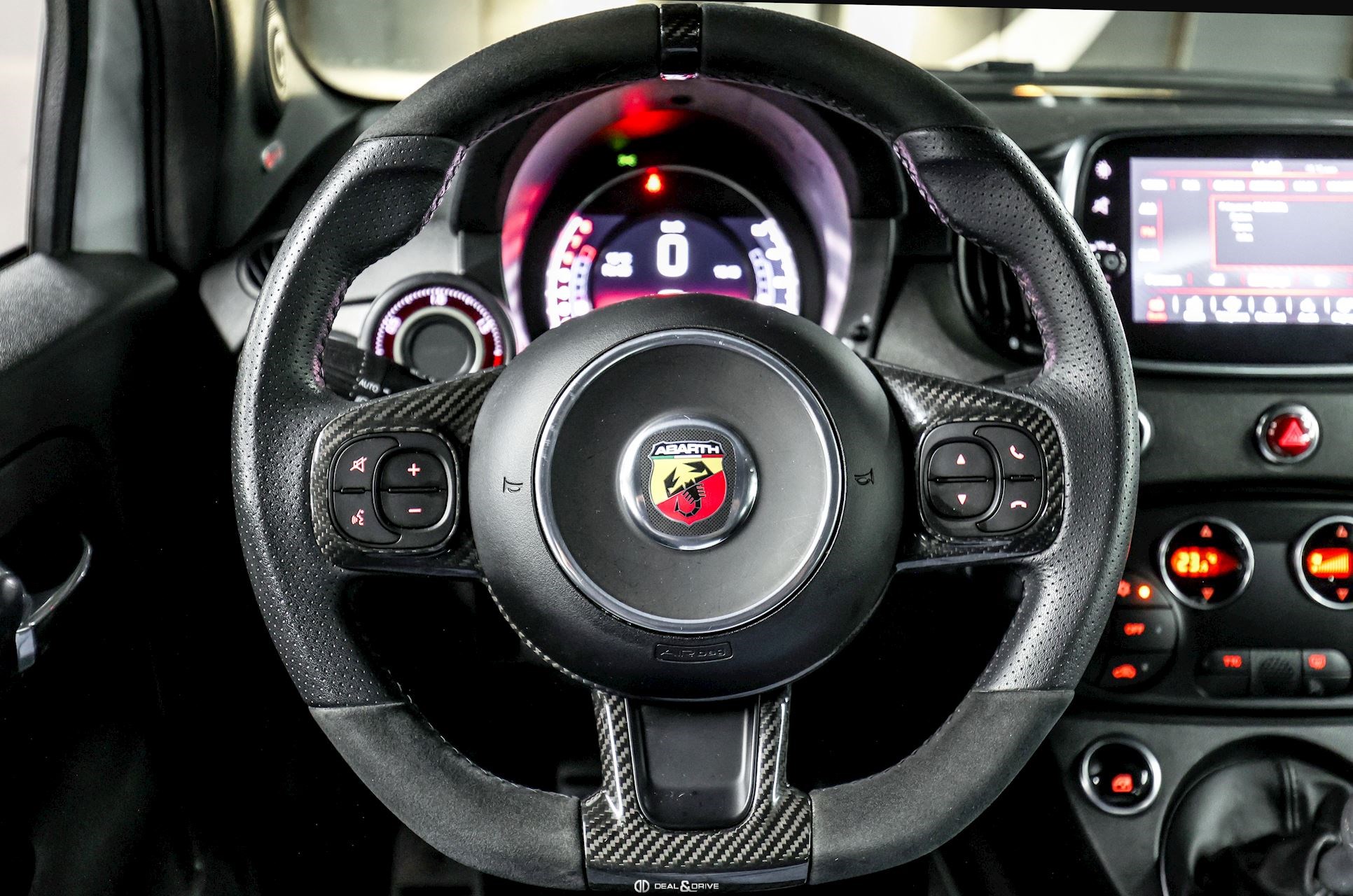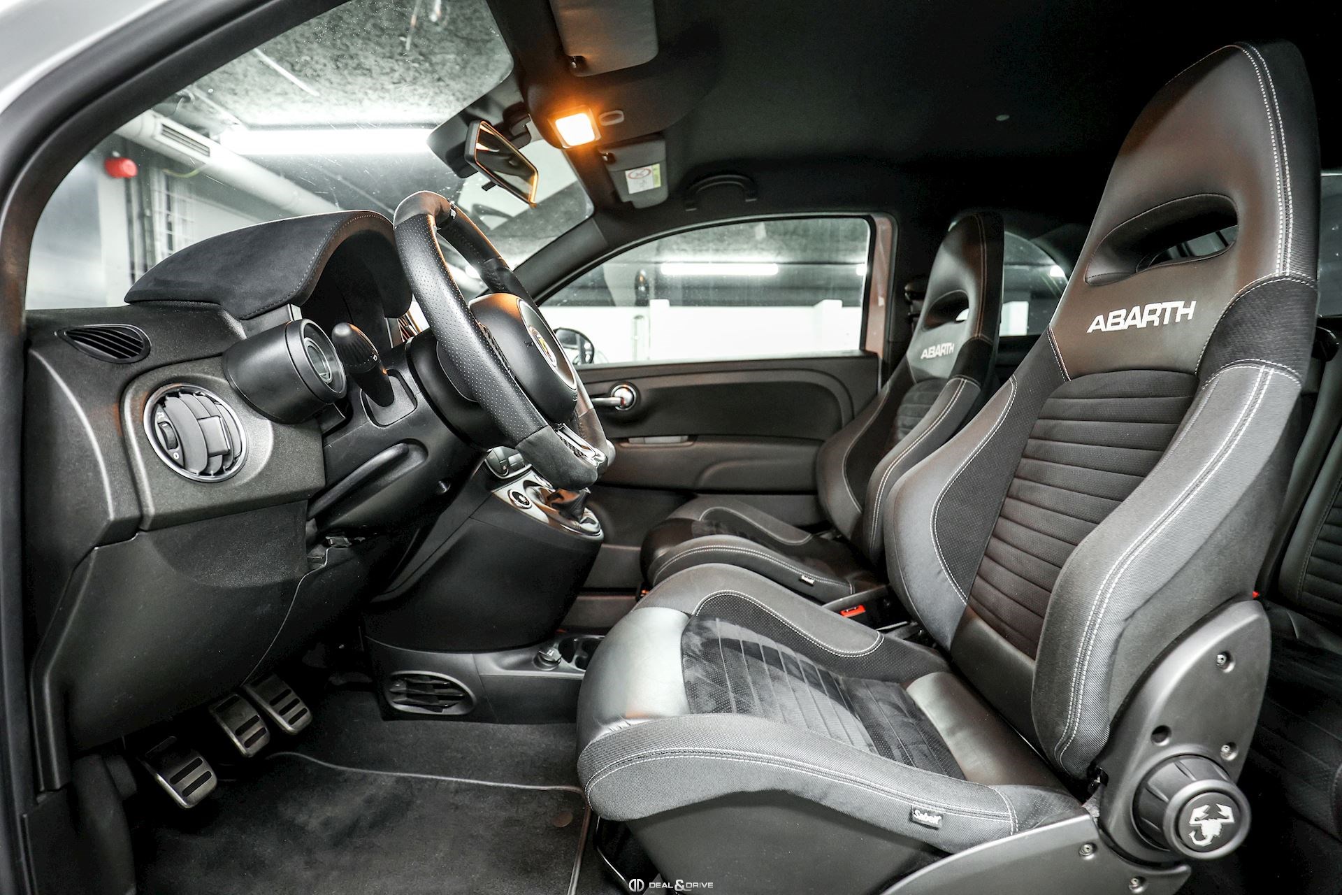 INTÉRIEUR Volant en cuir et Alcantara, multifonctions avec inserts en Carbone Sièges avant Sabelt GT en cuir Plafonnier Noir Climatisation automatique Tapis de sol Abarth
