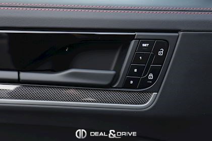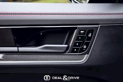 EXTÉRIEUR Toit panoramique Jantes 22’’ Sport Exclusive Design en Noir Étriers de frein en Rouge Rétroviseurs extérieurs peints en couleur carrosserie Suppression de la désignation du modèle et lettering 'PORSCHE' peint en Noir brillant Système d'échappement sport avec sorties d'échappement en Bronze Foncé Vitrage arrière fumé Hayon électrique Rétroviseurs extérieurs électriques Rétroviseurs extérieurs rabattables électriquement Contours des vitres latérales en Noir brillant