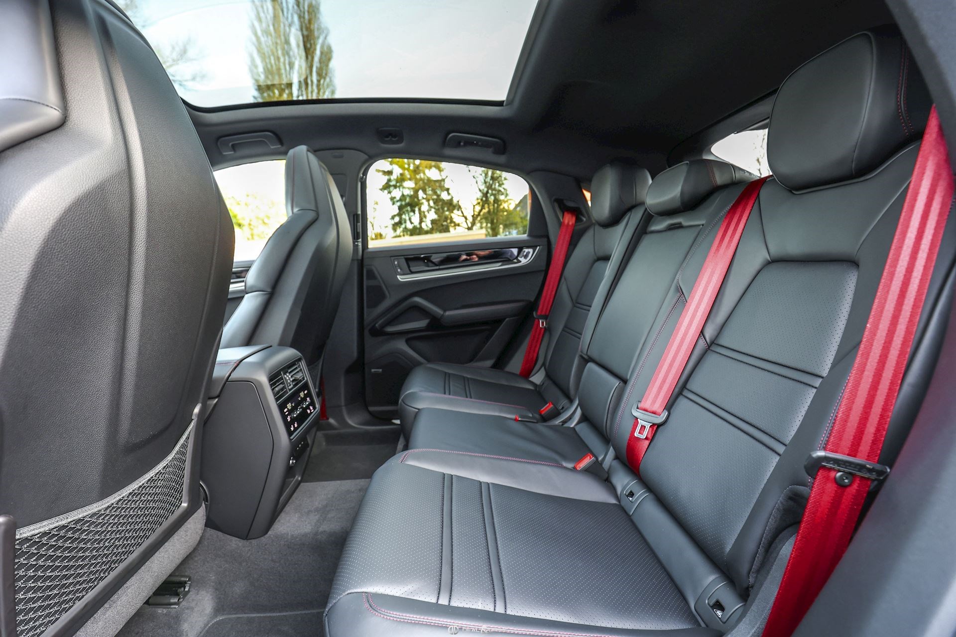 INTÉRIEUR Volant Sport GT chauffant en cuir avec incrustation en Carbone Sièges avant Sport adaptatifs réglables électriquement en 18 positions Sièges avant avec fonction mémoire Appuie-lombaires électriques Sièges avant chauffants Sièges avant ventilés Sièges arrière chauffants Sièges Confort à l'arrière 2+1 Surpiqûres contrastantes en Rouge Bordeaux Ceintures de sécurité Rouge Bordeaux Fond du chronomètre Sport Chrono Boussole en Rouge Bordeaux Écussons Porsche embossés sur les appuie-têtes Système de qualité de l'air Climatisation automatique 4 zones Plafonnier Noir