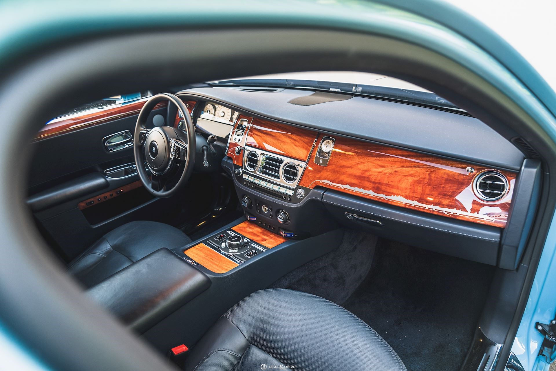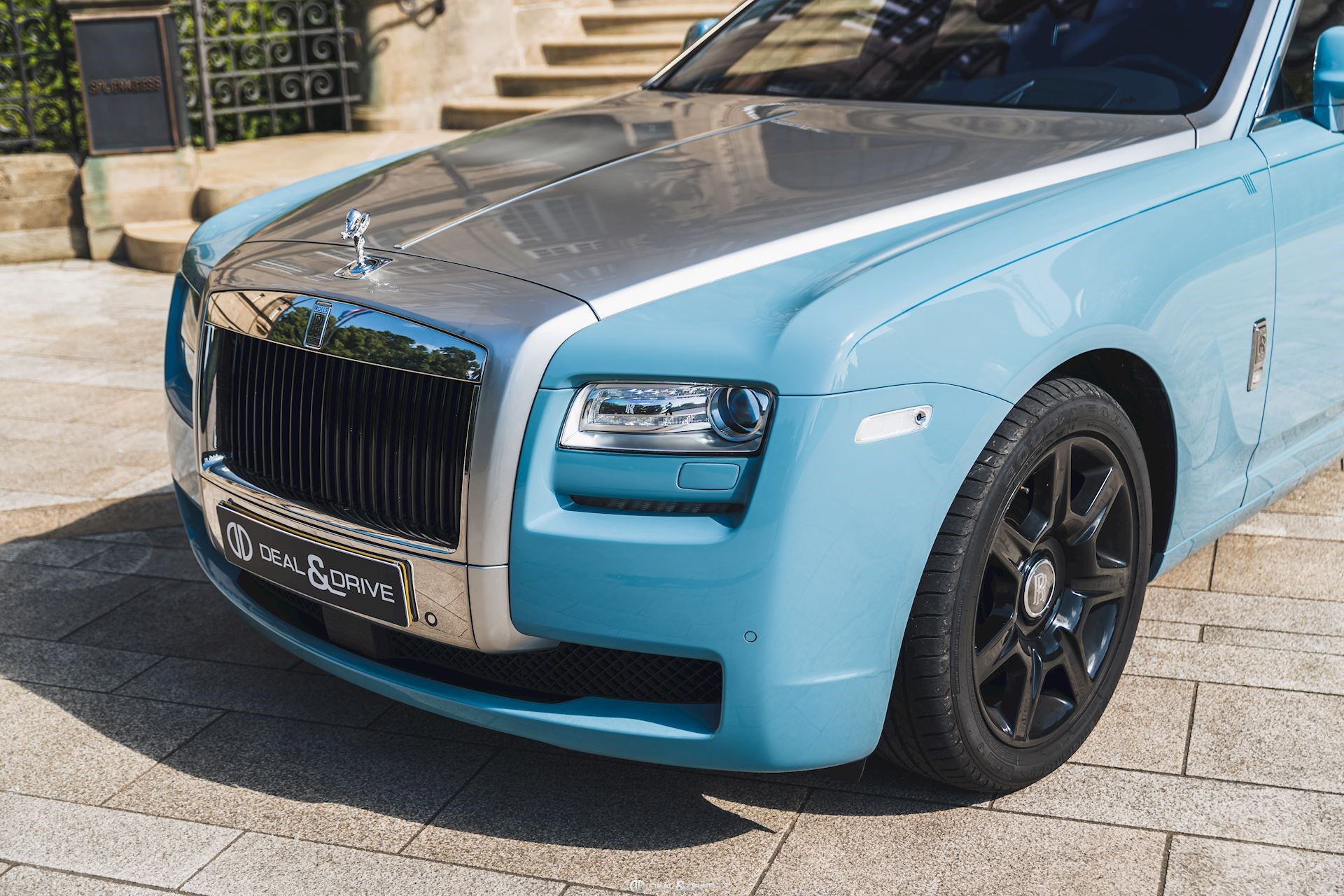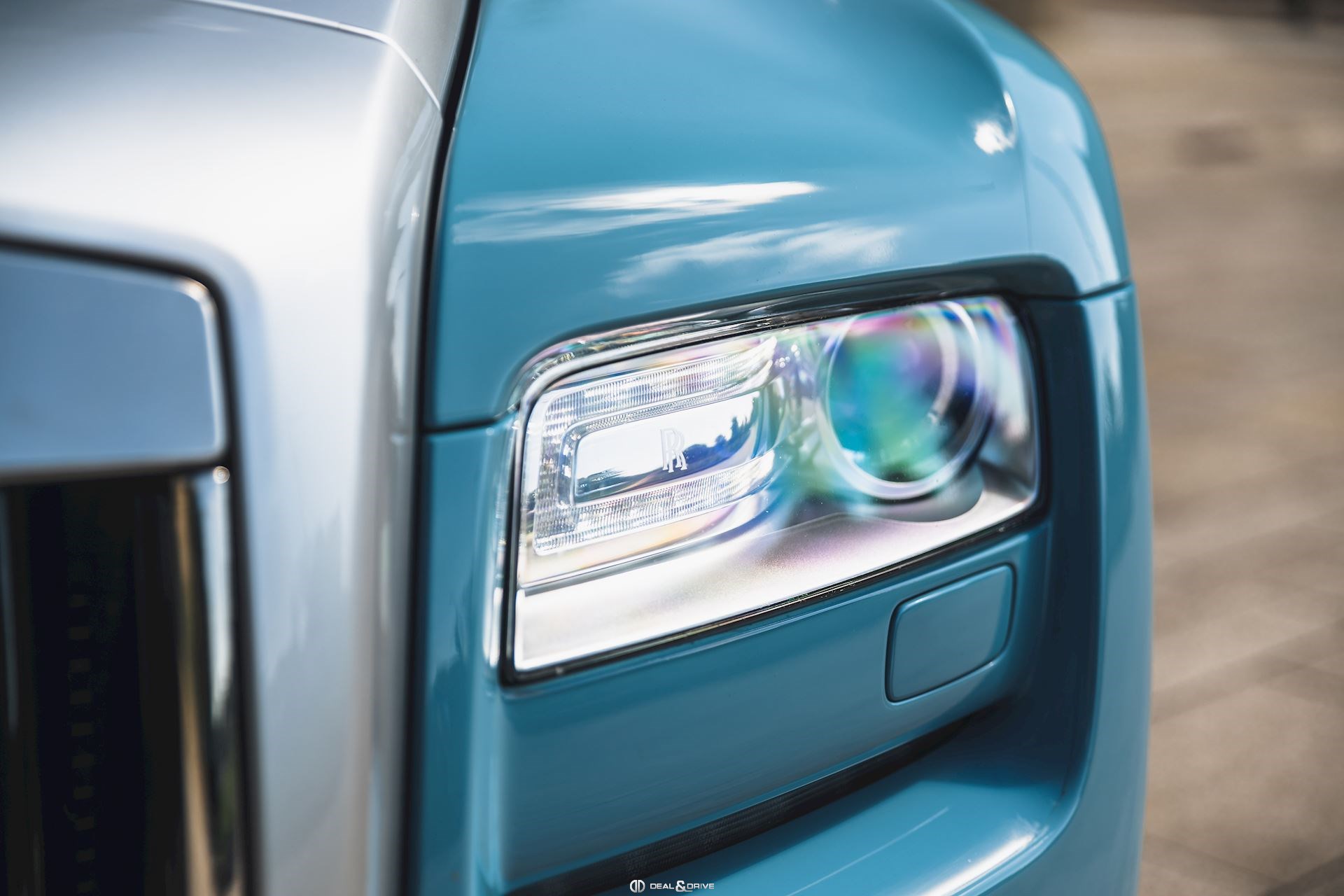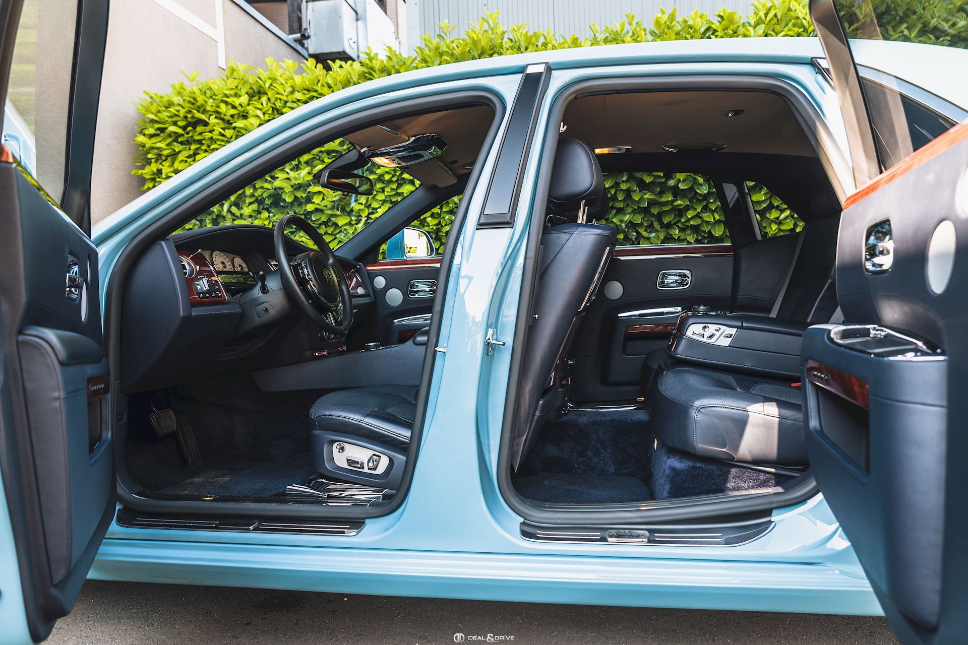 Couleur extérieure : Light Blue Greyish – Bespoke exterior colour Intérieur : Sellerie en cuir Navy Blue