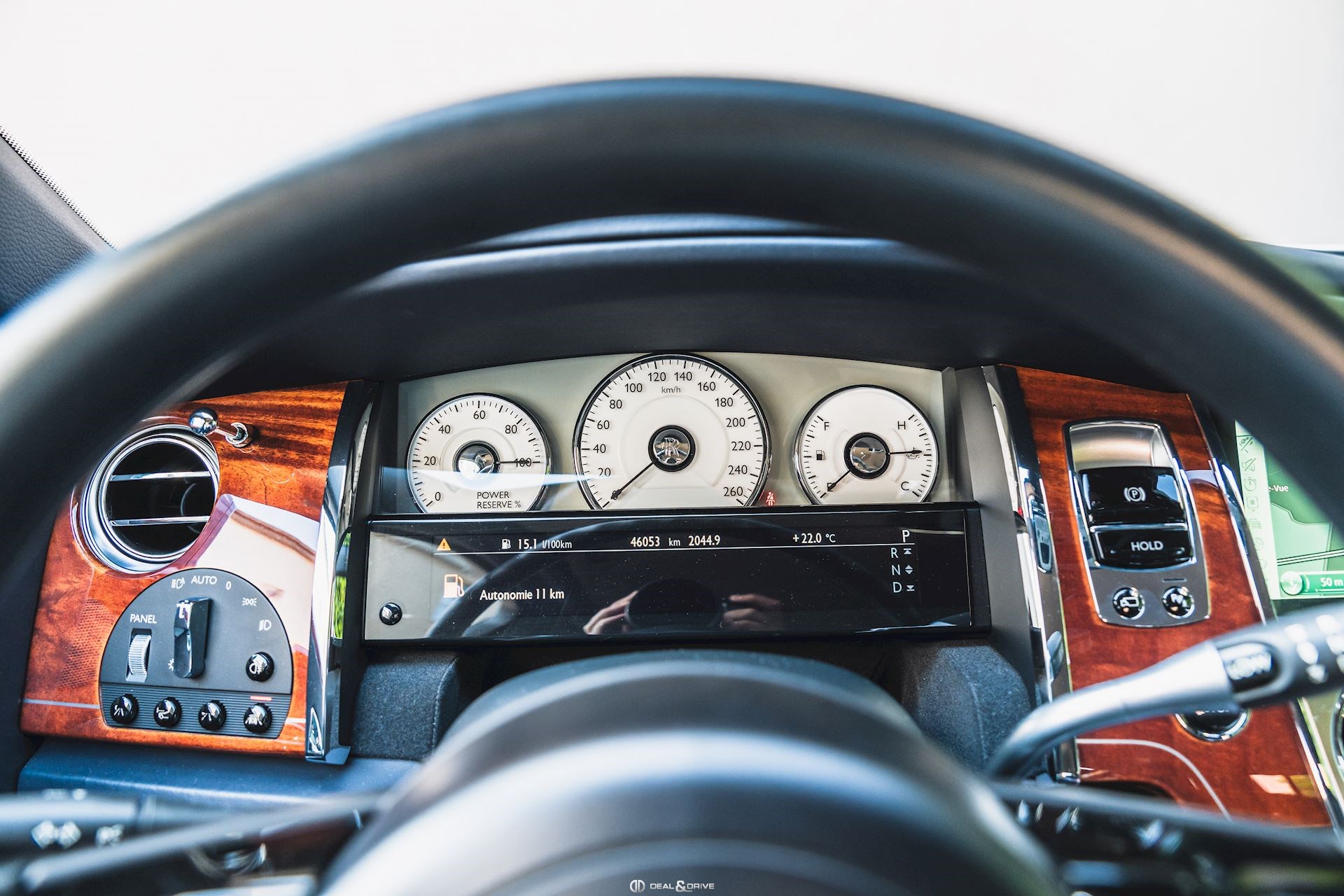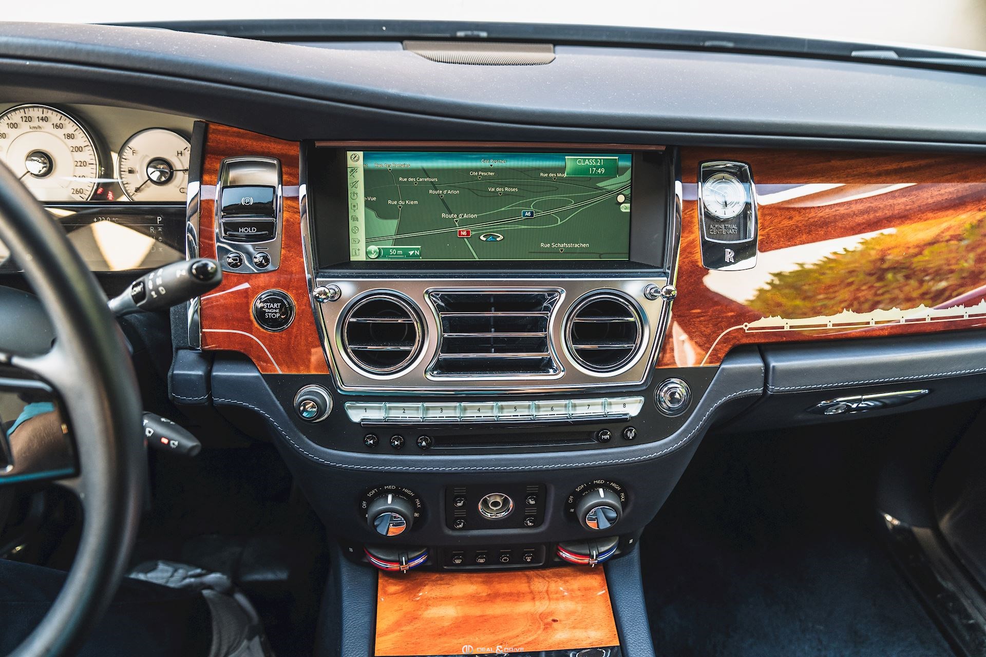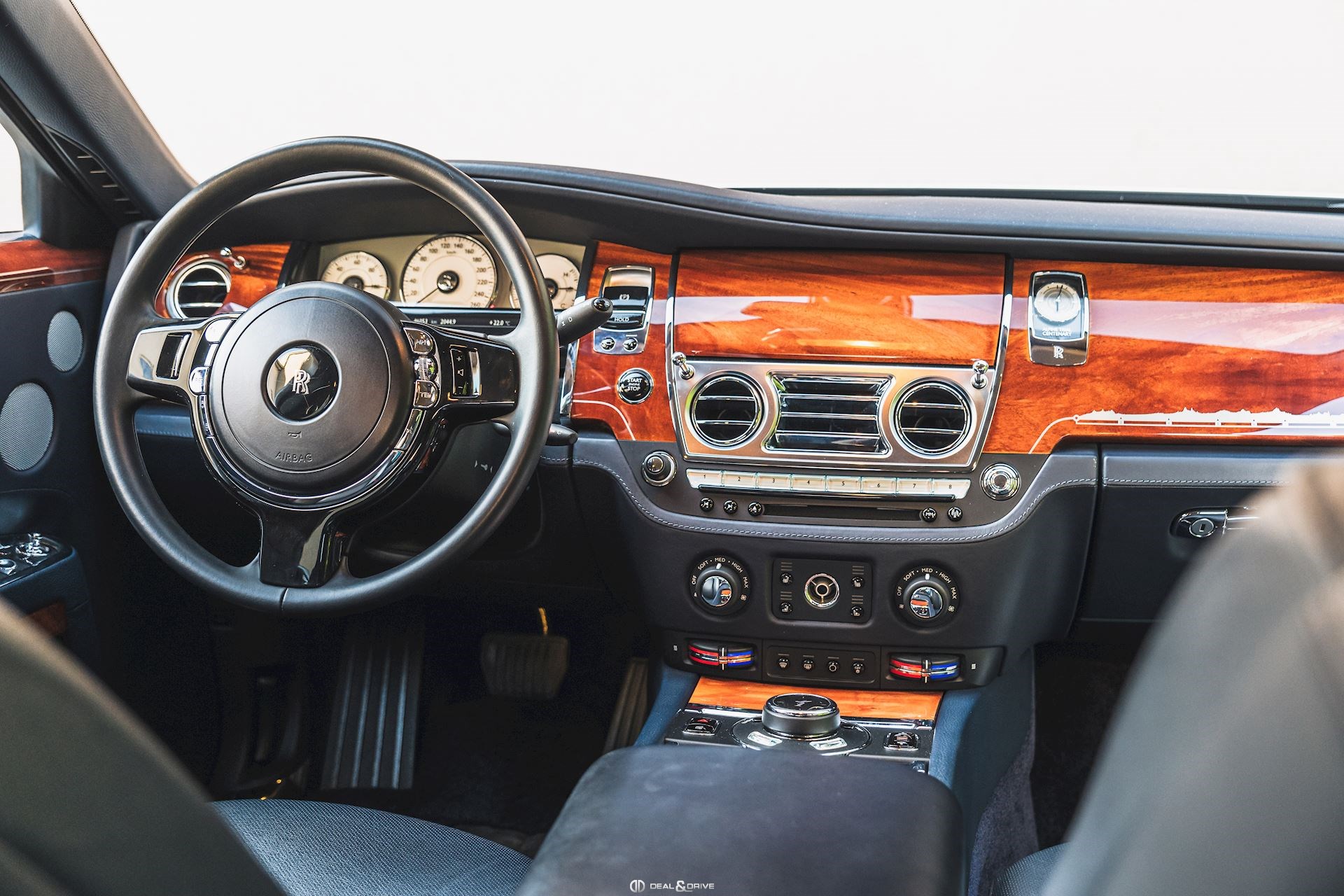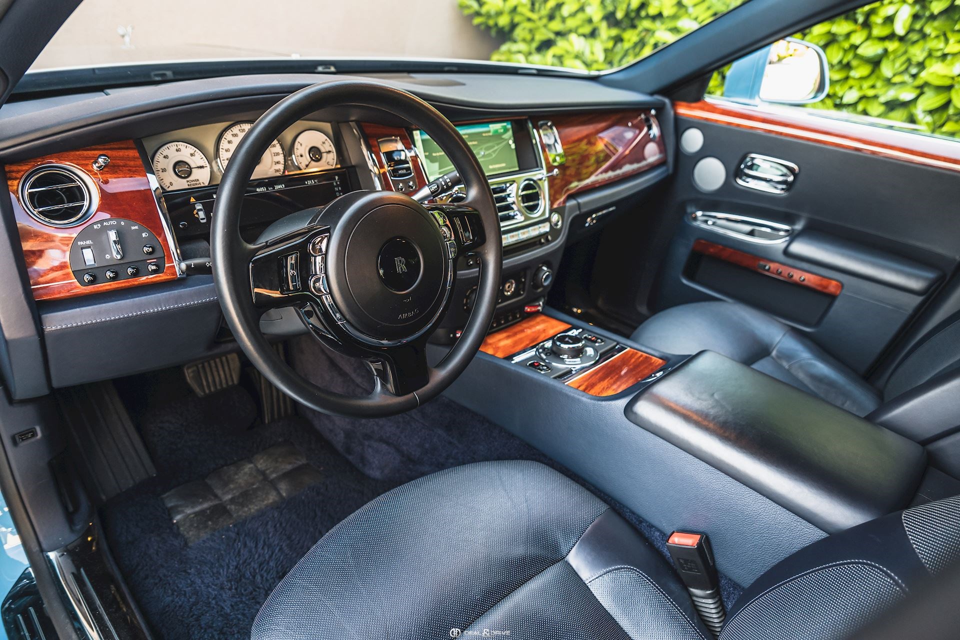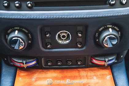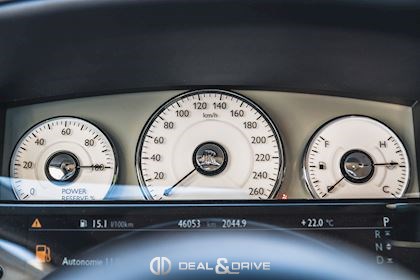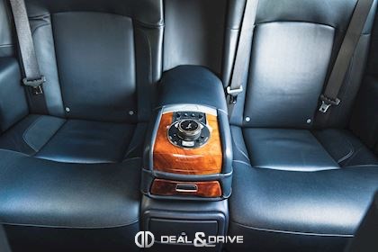 INTÉRIEUR Sellerie en cuir Grain naturel Configuration arrière-Théâtre Tablettes vernies à l’arrière Placage en Acajou Tapis de sol en laine d'agneau en couleur Navy Blue Plafonnier en cuir Seuils de porte en acier inoxydable Climatisation automatique 4 zones Volant en cuir, multifonctions Volant réglable électriquement