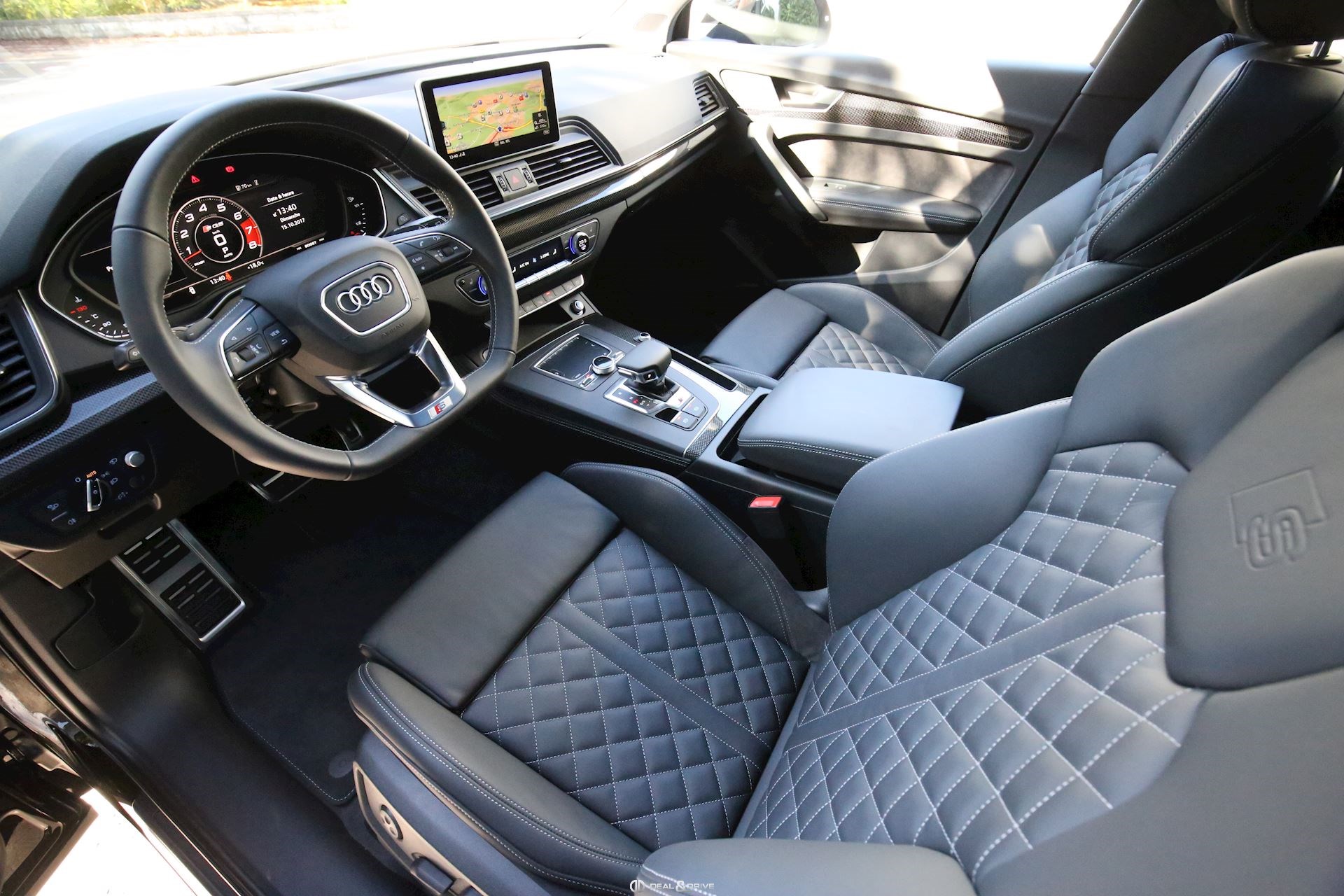 Sellerie : Cuir Nappa fin, piqûres en losange avec logo en relief dans accoudoirs sièges AV