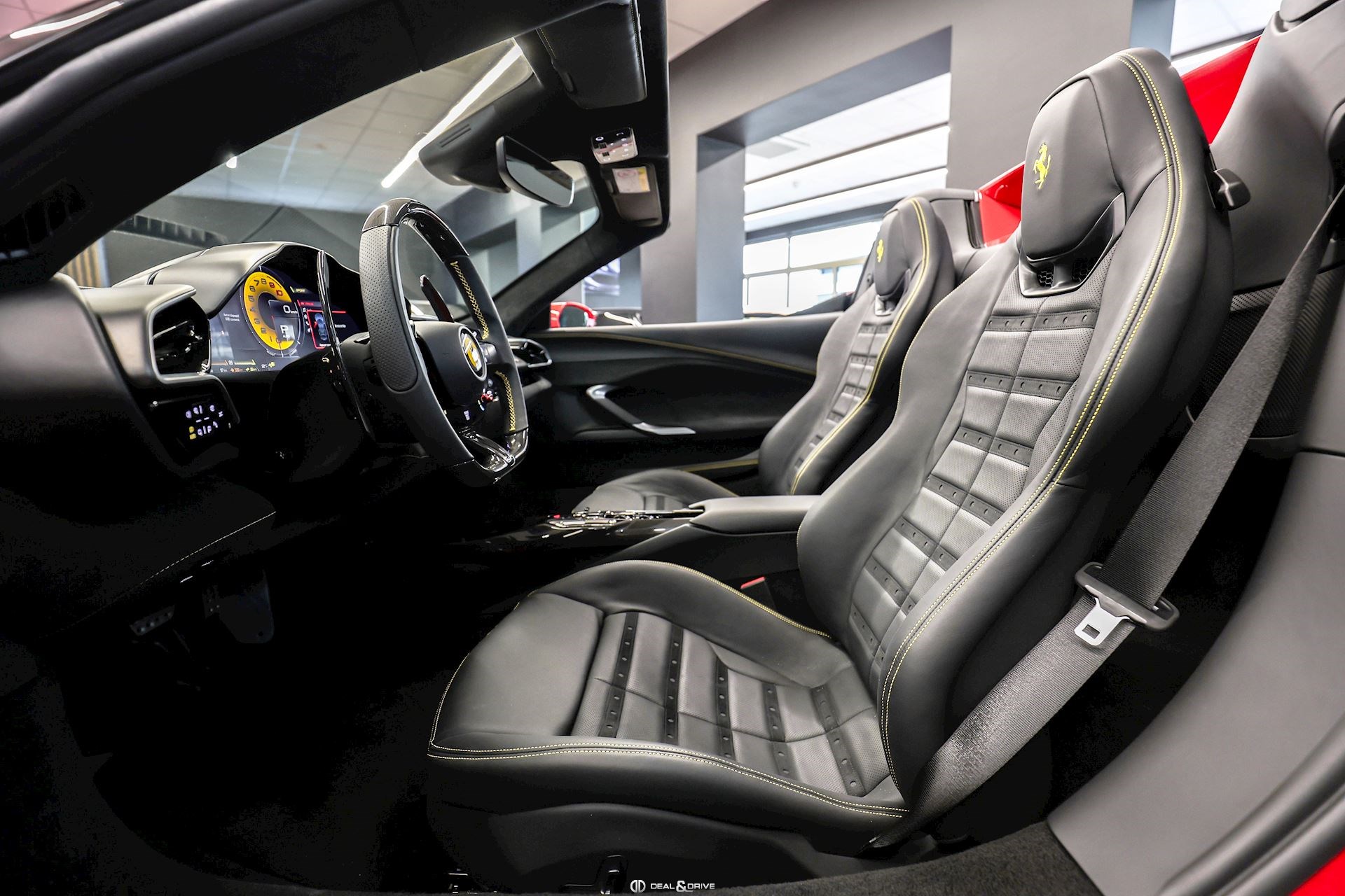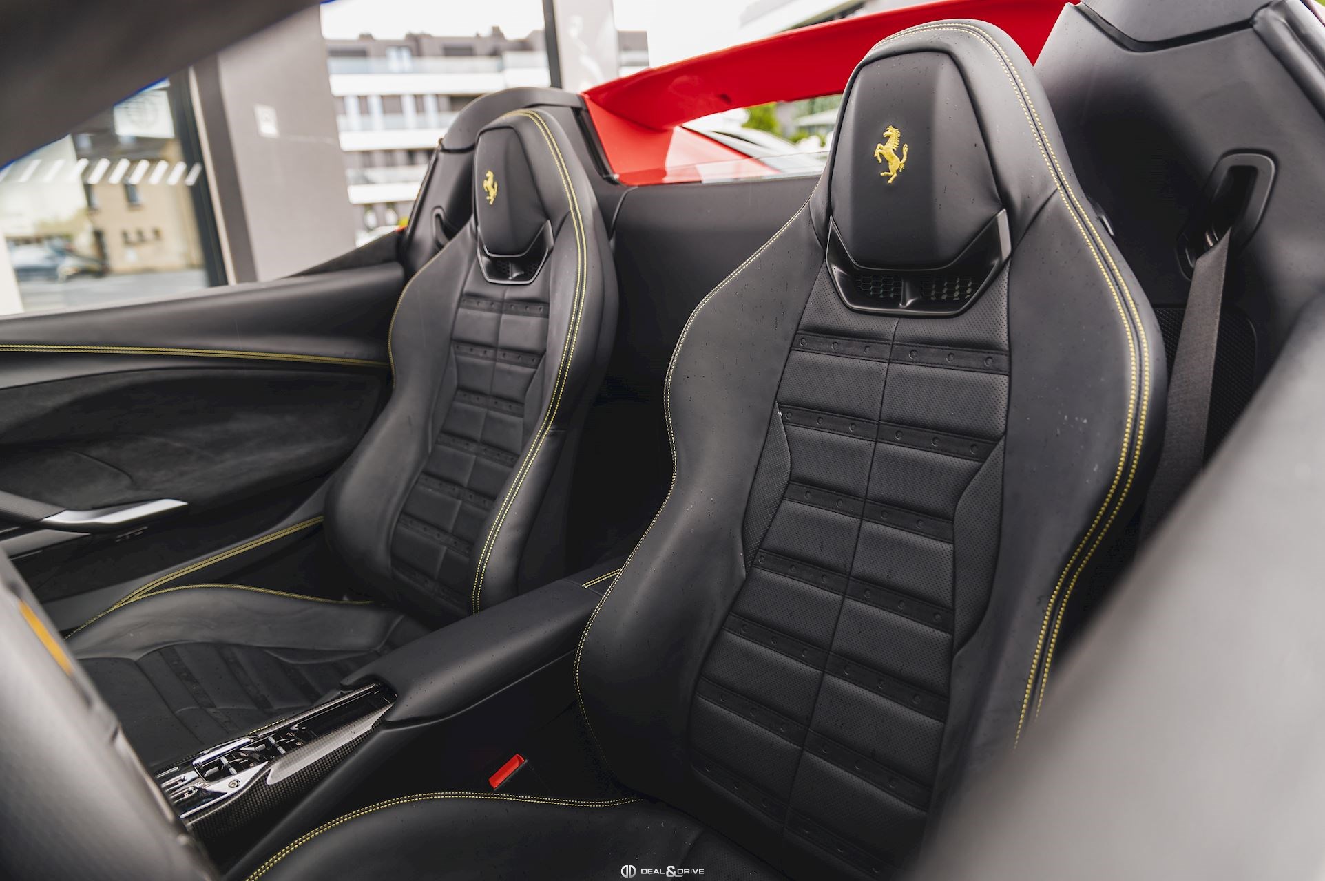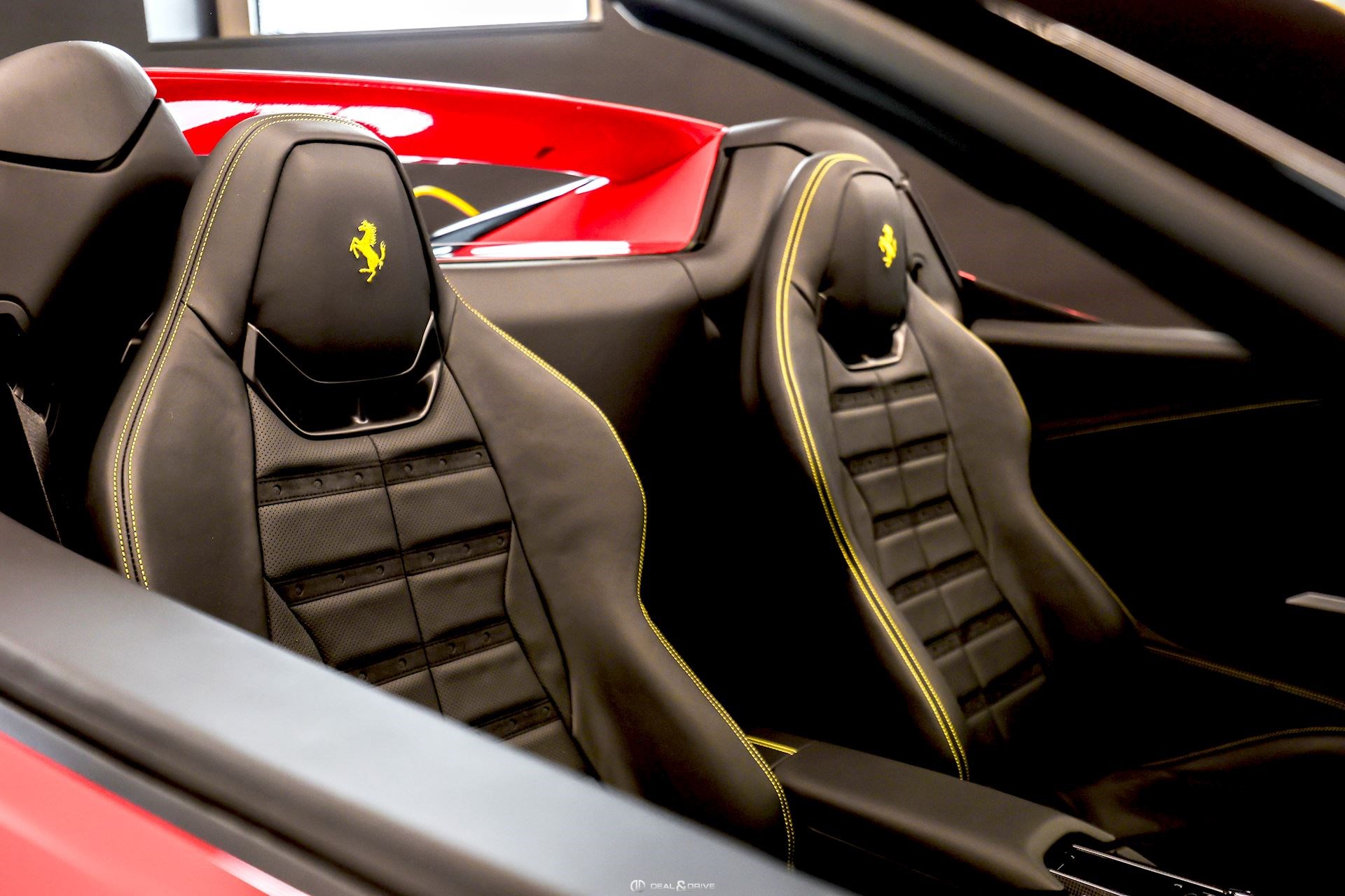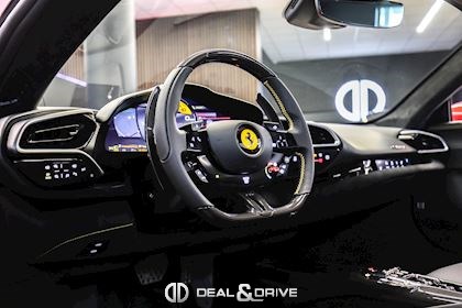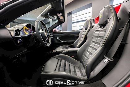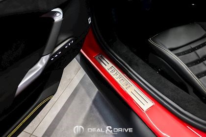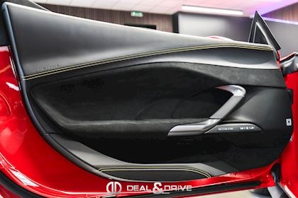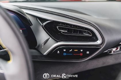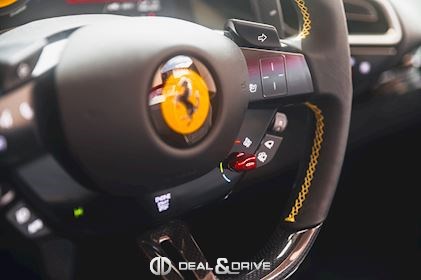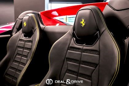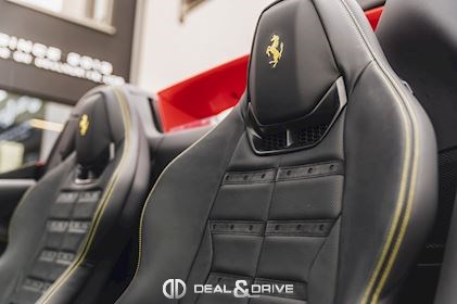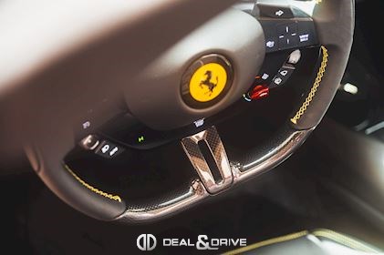 INTÉRIEUR MATS Nero 152 EMPH Cavallino brodé sur les appuie-têtes en couleur Giallo 0113 RSFV Sièges électriques et ventilés STC2 Surpiqûres spéciales en couleur Giallo 0113 CITZ Partie supérieure de la console centrale en Carbone DAYT Sièges style Daytona STP2 Inserts perforés en Alcantara Nero 9440 LEDS Volant en Carbone, multifonctions + LED