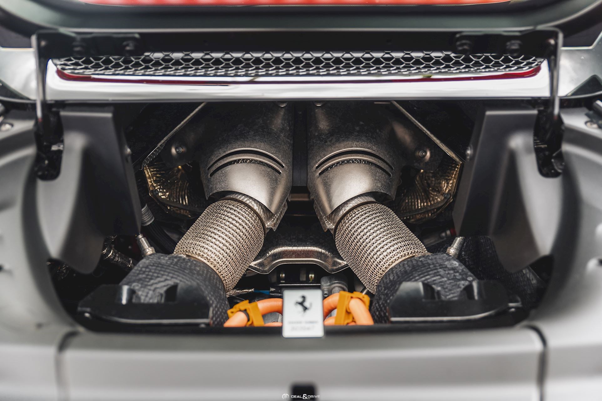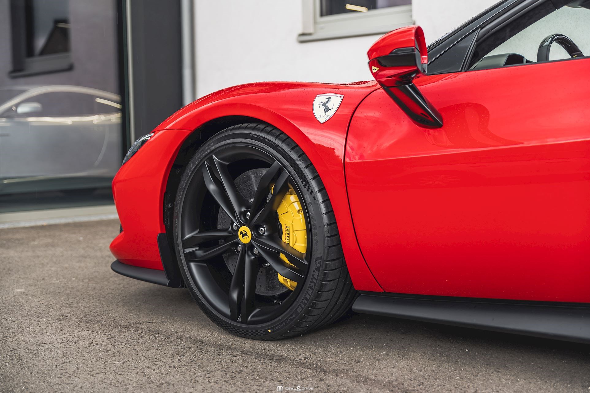 EXTÉRIEUR CALY Étriers de frein en Jaune LOGO Logo « SCUDERIA FERRARI » sur les ailes avant RIMM Jantes 20’’ en Noir mat BIC2 Carrosserie bicolore Nero DS 1250 EXAB Sortie d’échappement en Noir