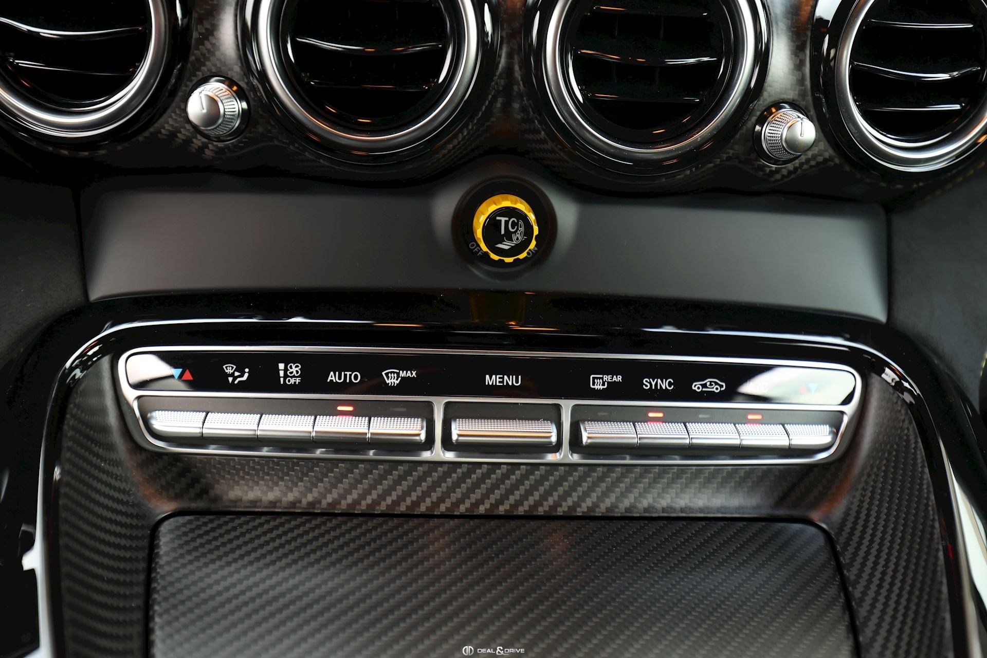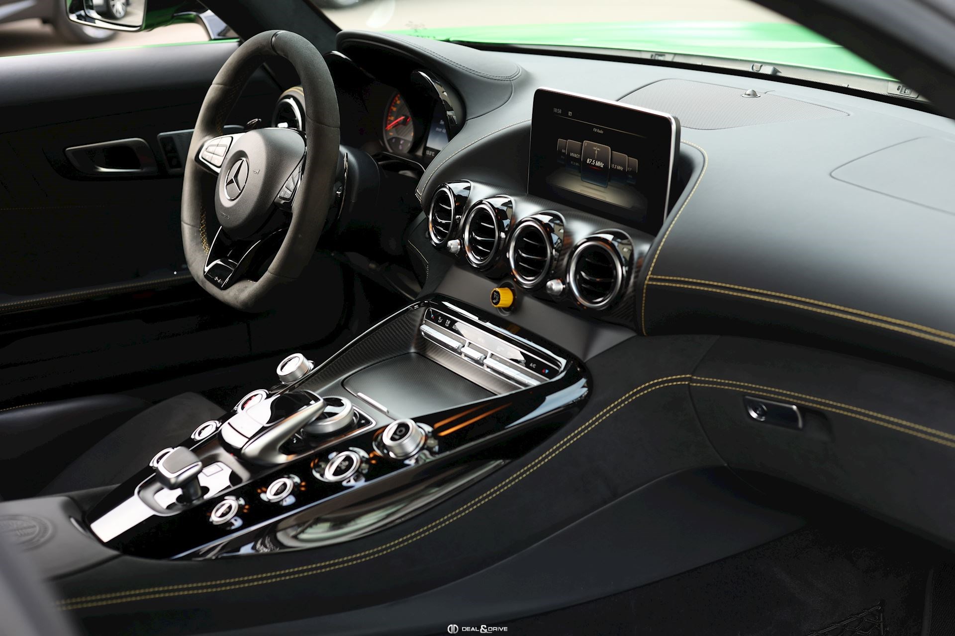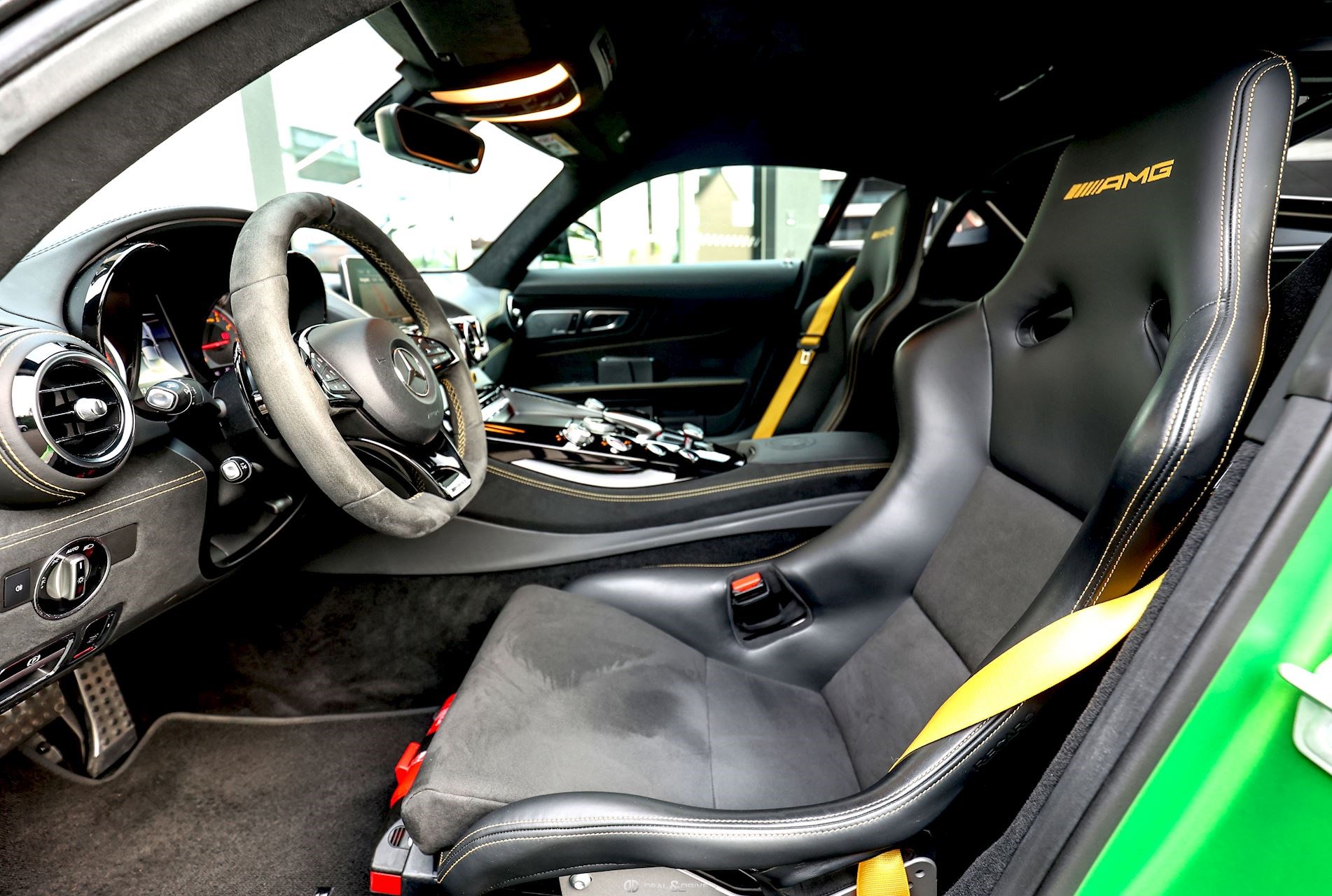 INTÉRIEUR Inserts en Carbone Matte Ceintures de sécurité en couleur Jaune Touchpad sur la console centrale Plafonnier en Alcantara Noir Volant AMG Performance en Dinamica, multifonctions Climatisation automatique Confort Thermotronic 2 zones Extincteur Seuils de porte en Carbone Tapis de sol AMG