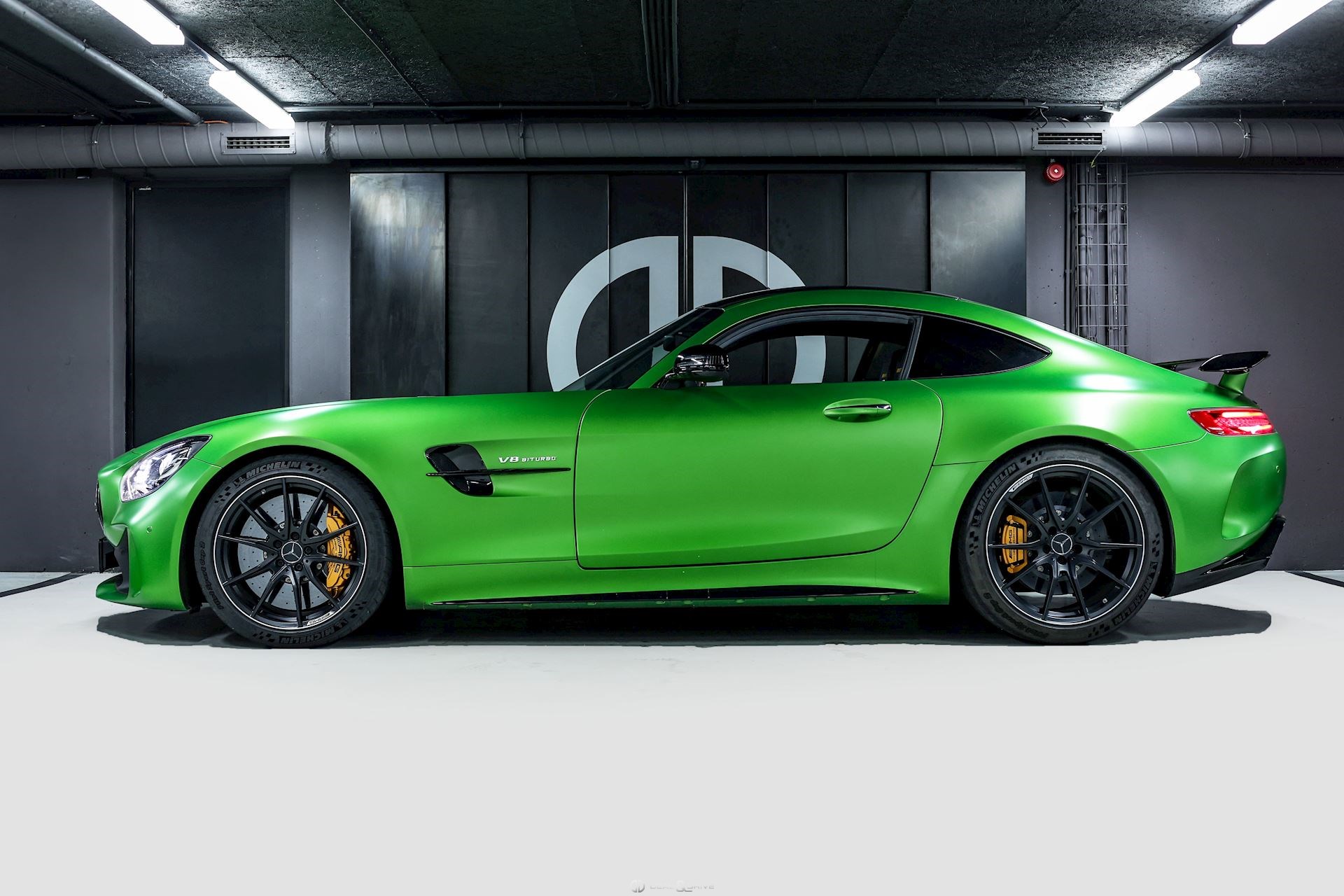 Couleur extérieure : AMG GREEN HELL MAGNO Intérieur : Sellerie en cuir Exclusif Nappa et Dinamica avec surpiqûres en jaune